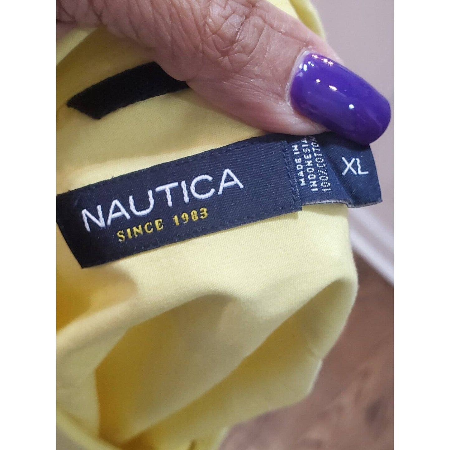Nautica Men Yellow Cotton Collared Long Sleeve Casual Button Down Shirt Size XL