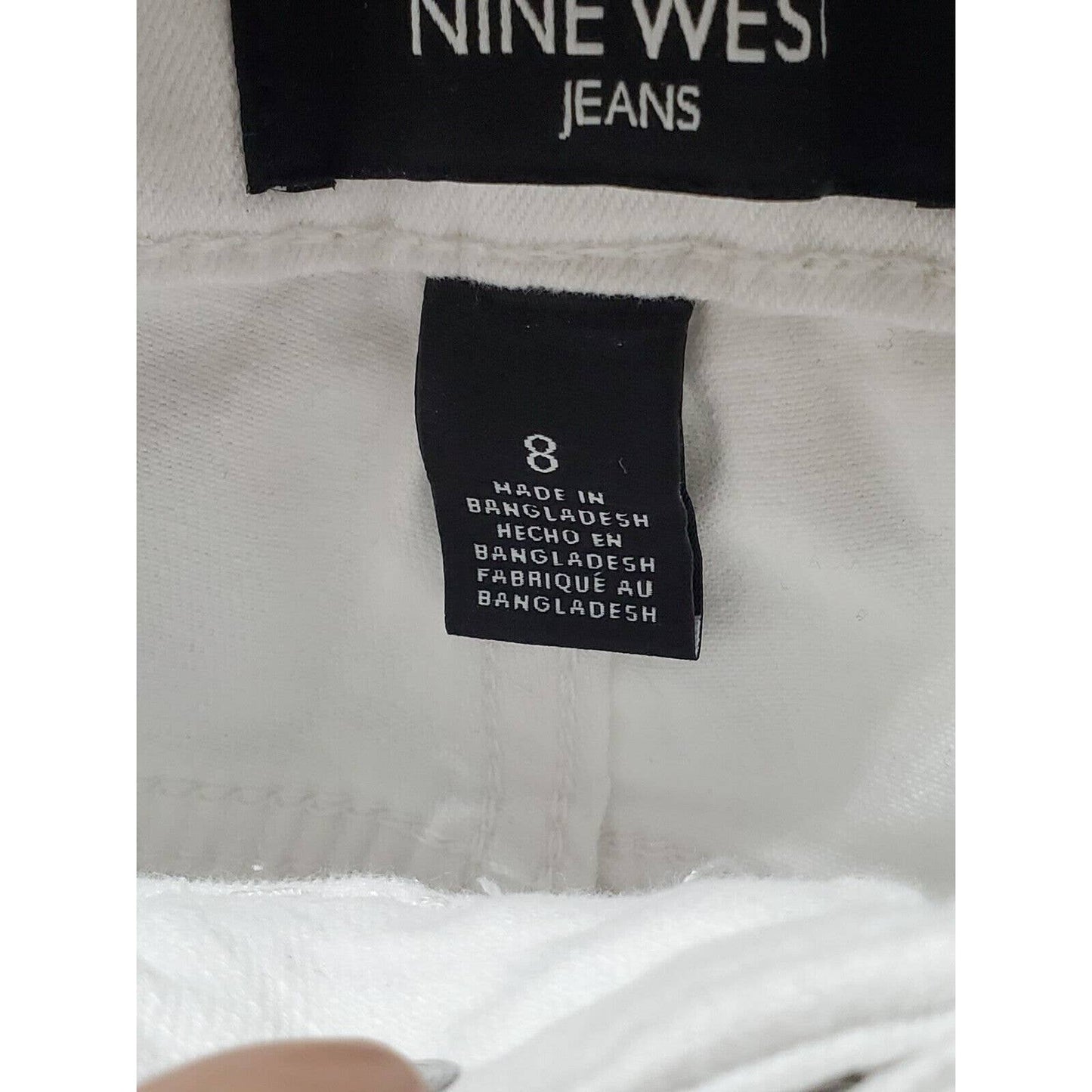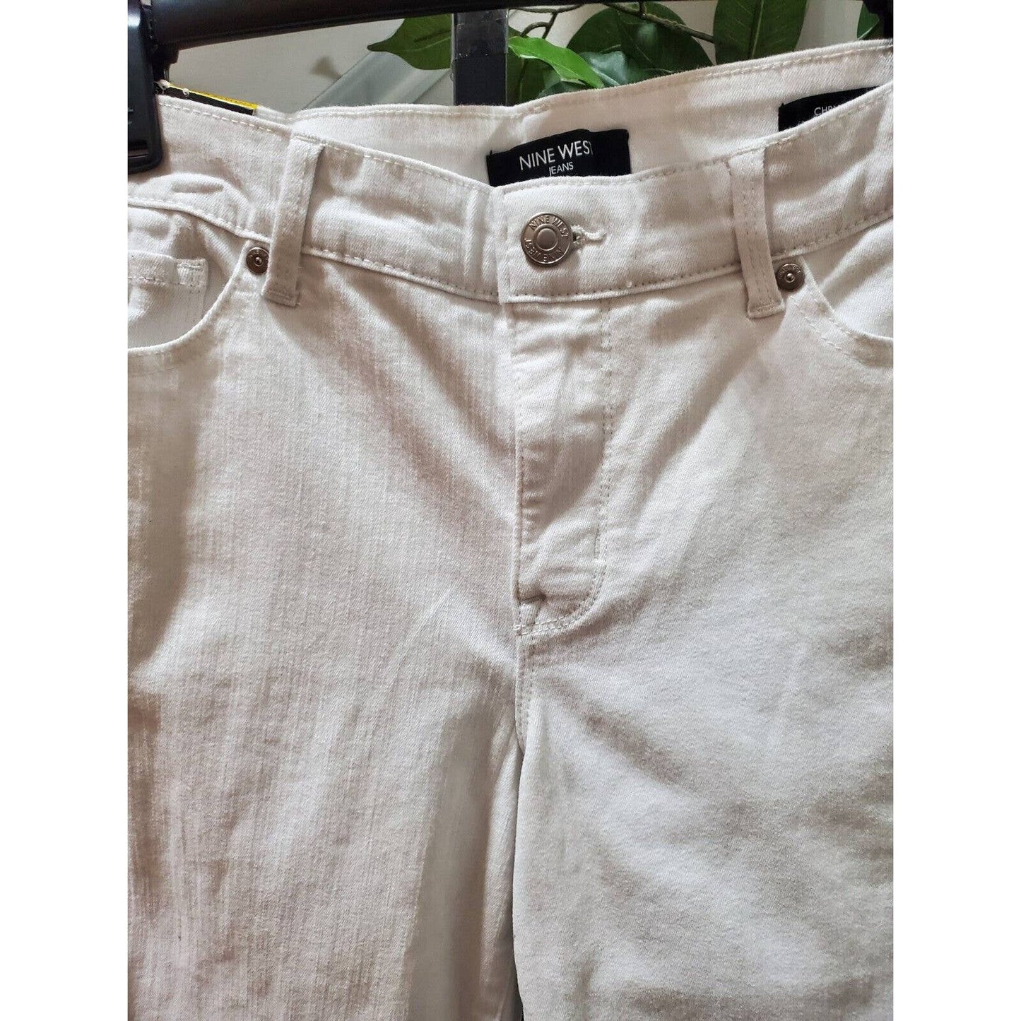Nine West Jeans White Cotton High Rise Zippered Straight Fit Capri Pant 8