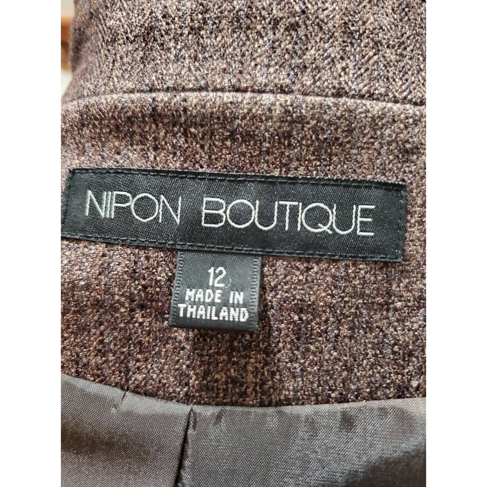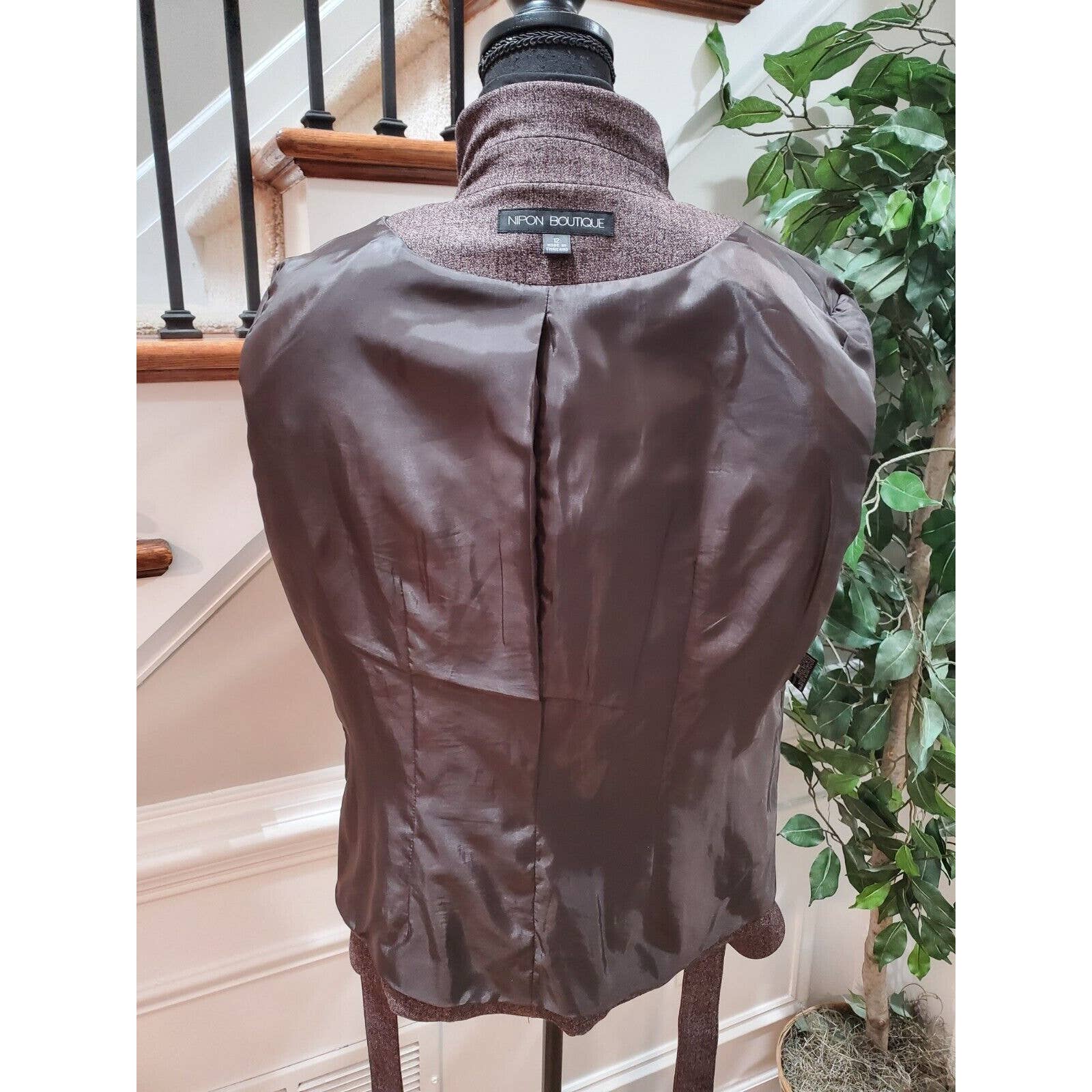 Nipon Boutique Brown Polyester Long Sleeve Single Breasted Jacket Blazer 12