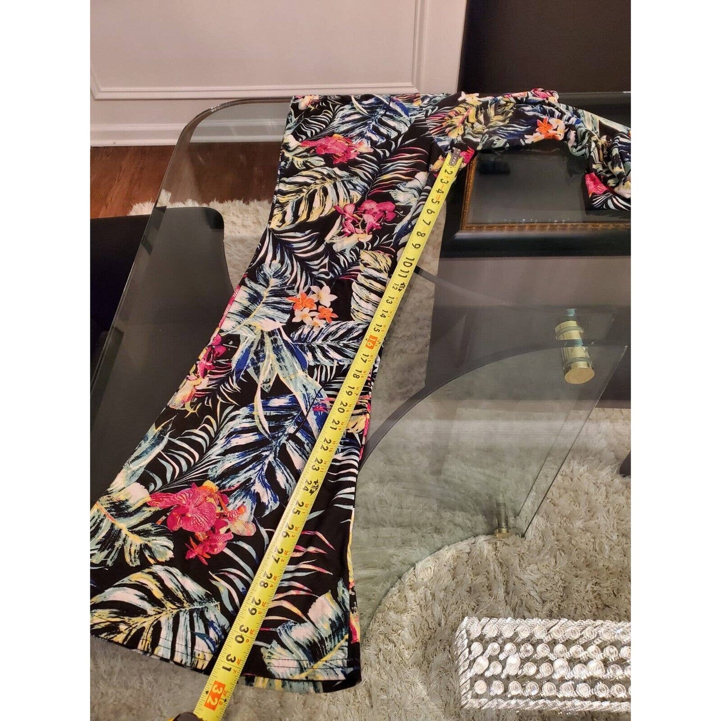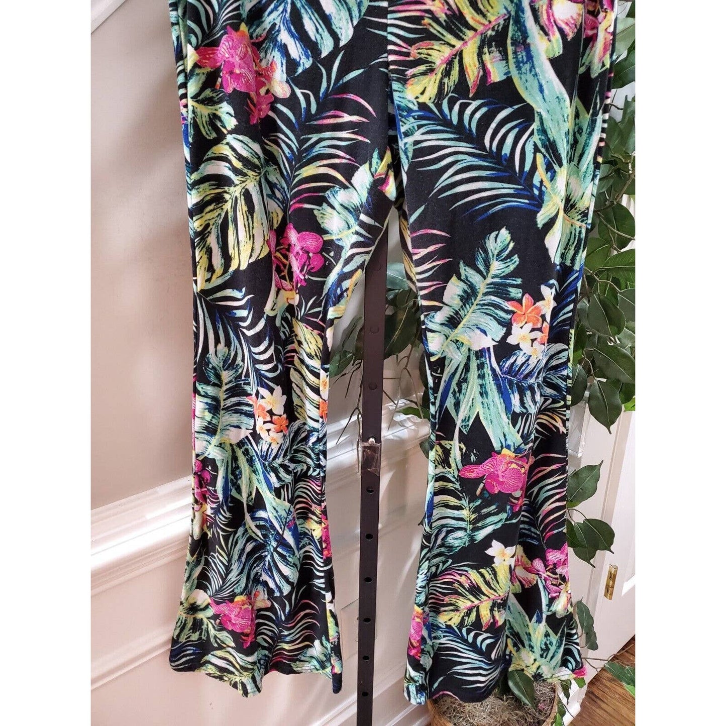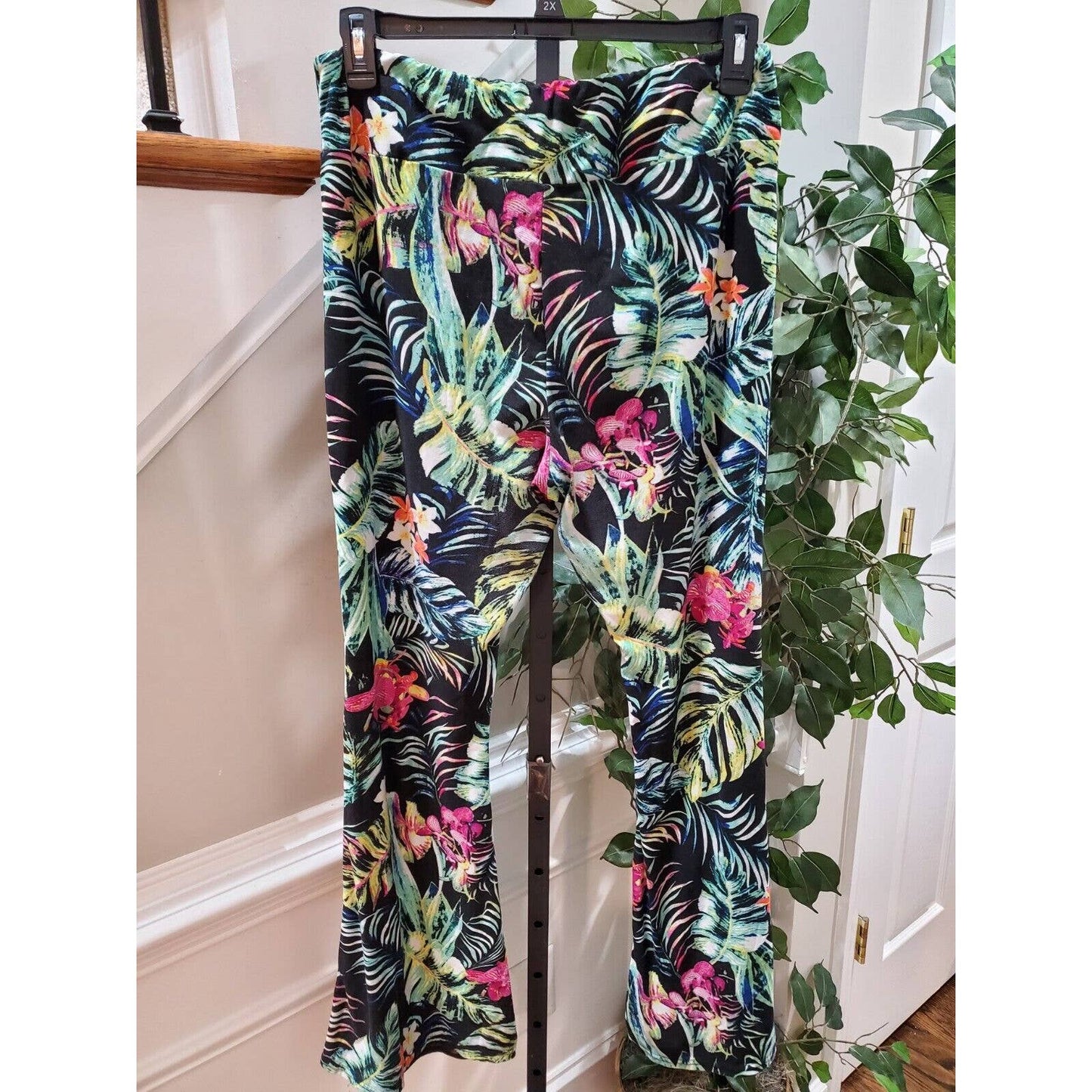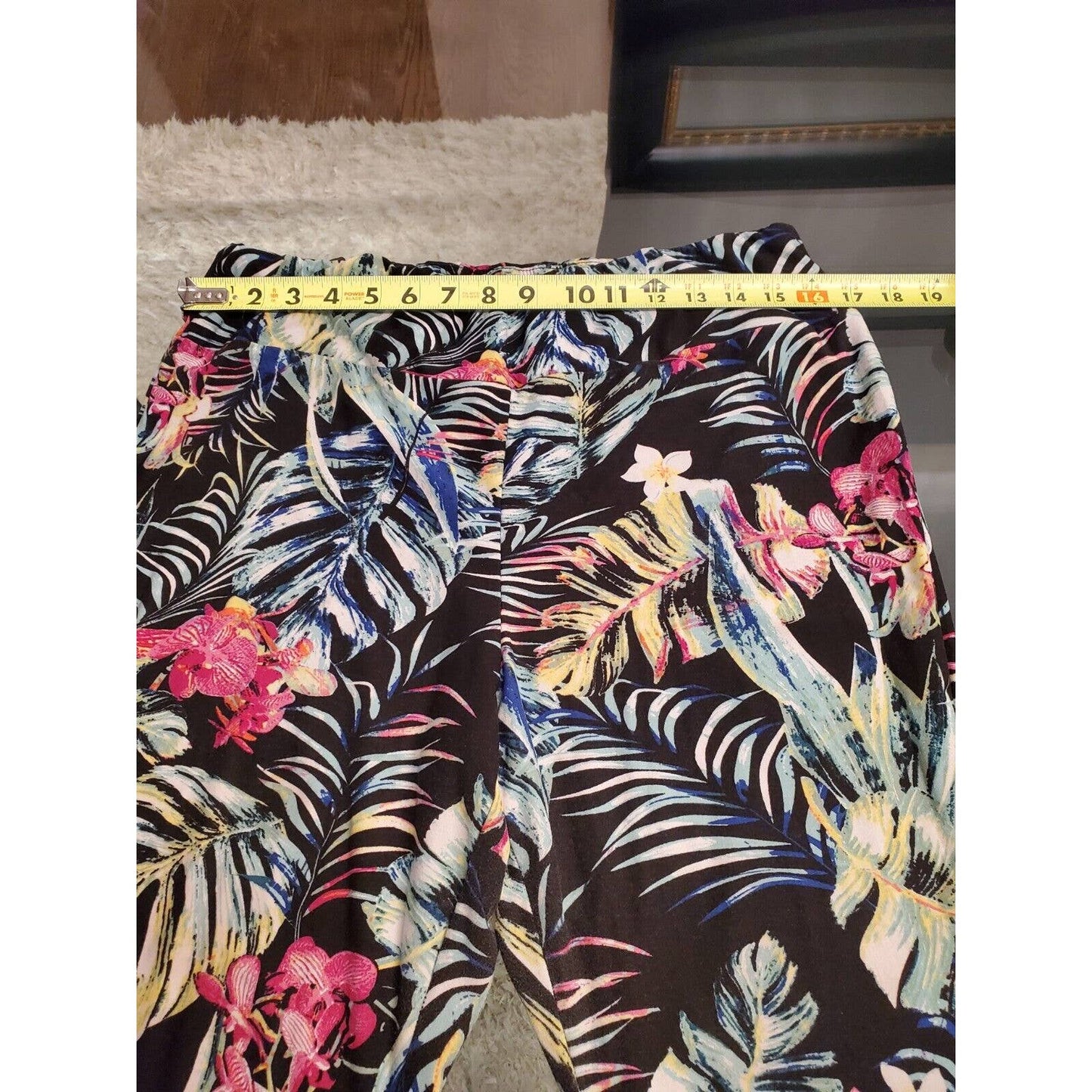 No Boundaries Women's Black Floral Polyester Pull On Comfort Waist Pant Size 2XL.