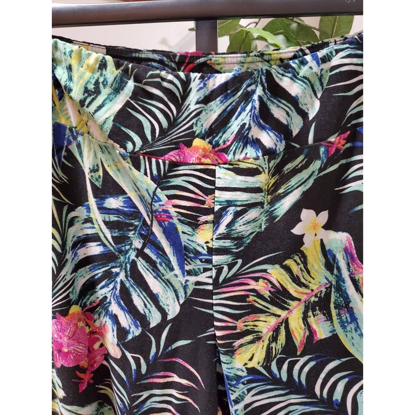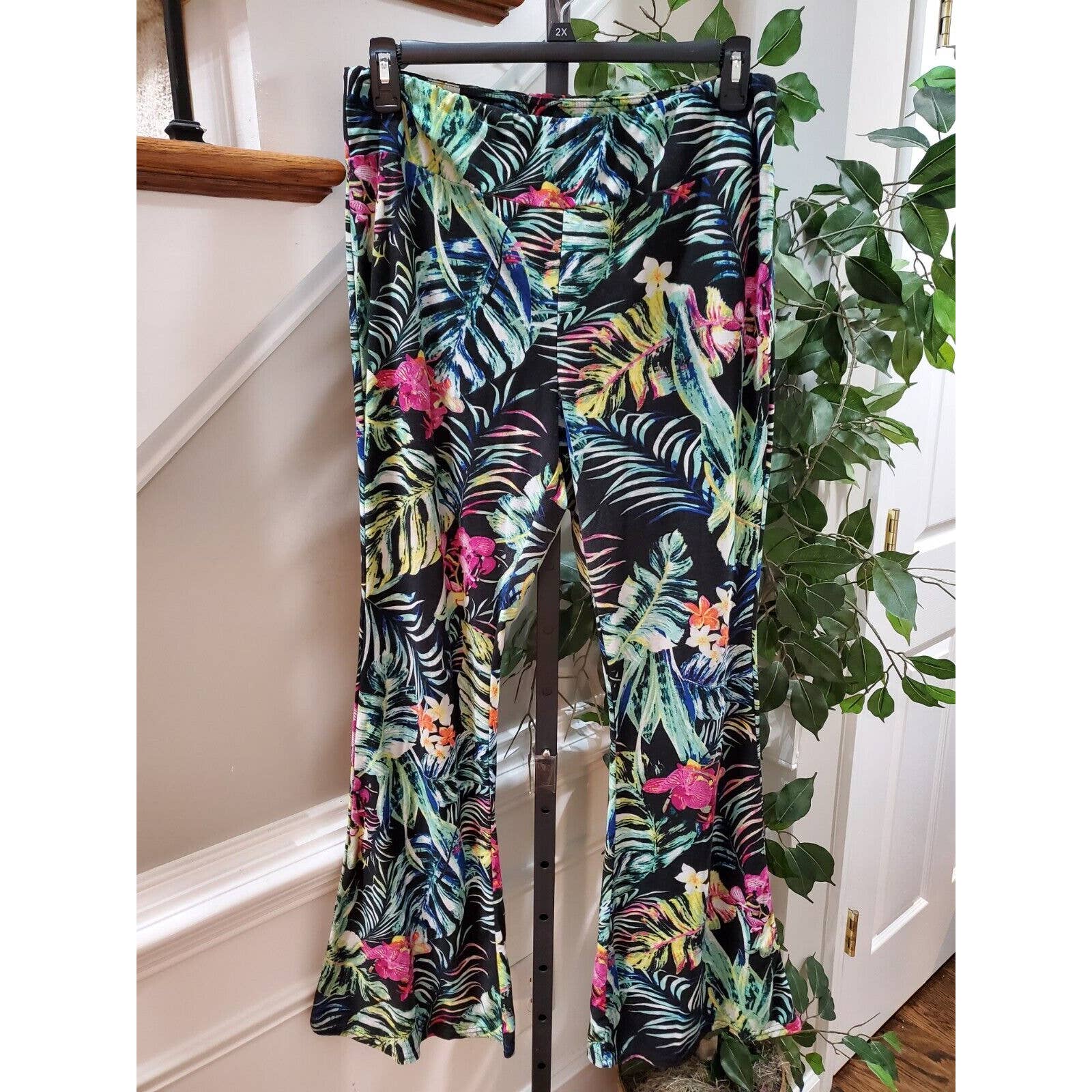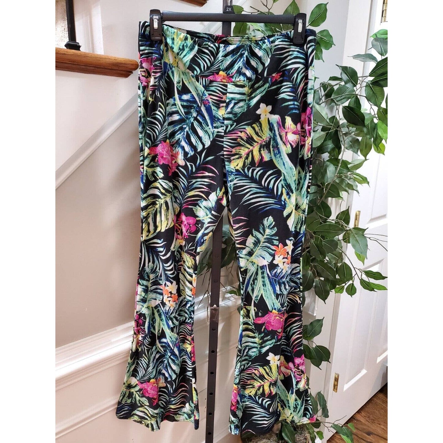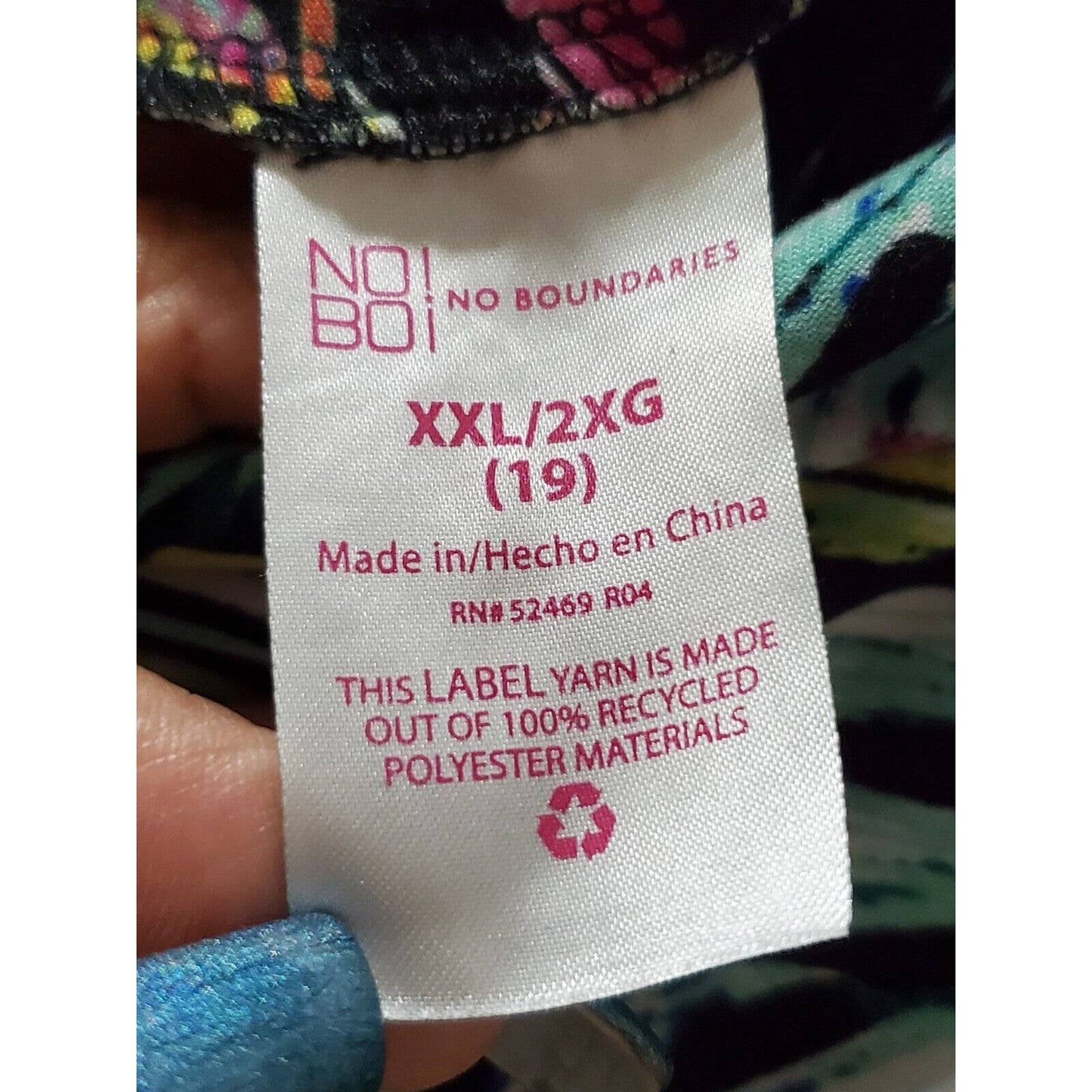 No Boundaries Women's Black Floral Polyester Pull On Comfort Waist Pant Size 2XL.