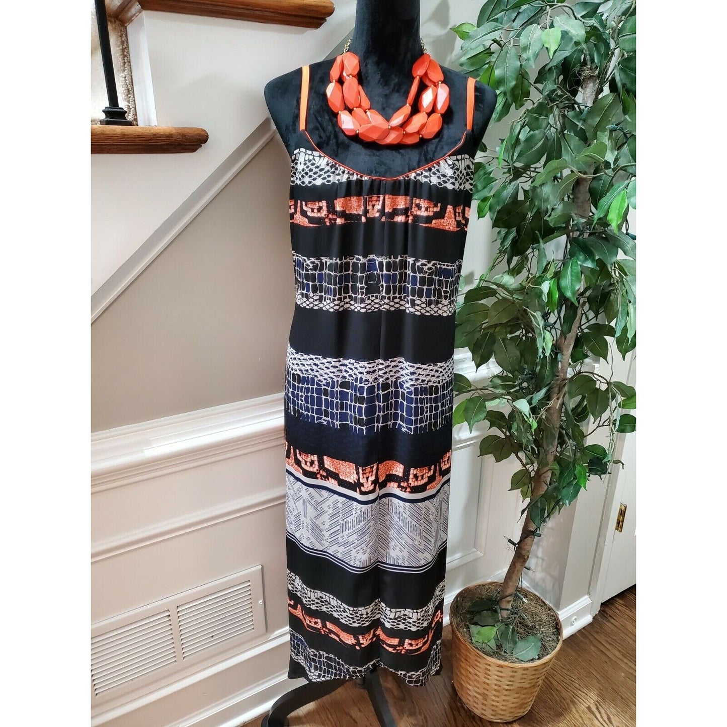 Ny Collections Women's Multicolor Polyester Scoop Neck Strappy Long Maxi Dress L