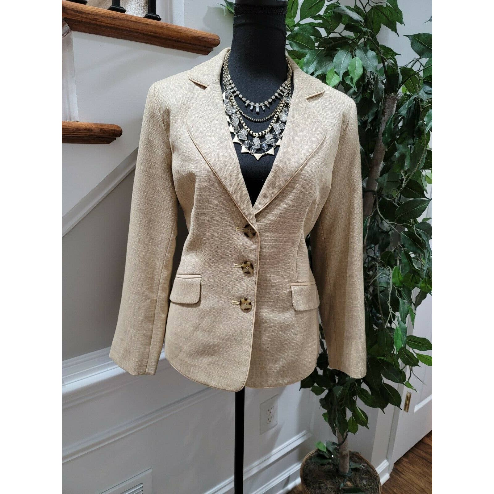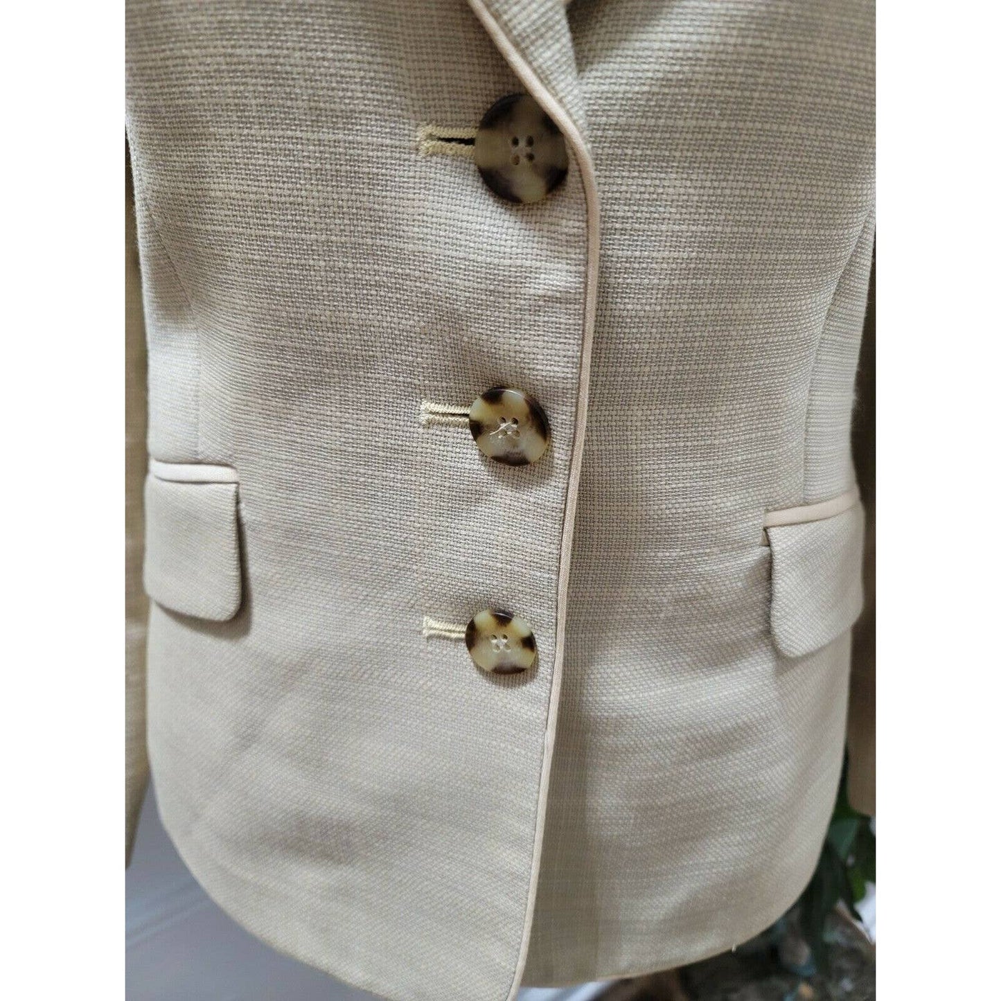 Pendleton Women's Beige Wool Single Breasted Three Buttons Fitted Blazer Size 10