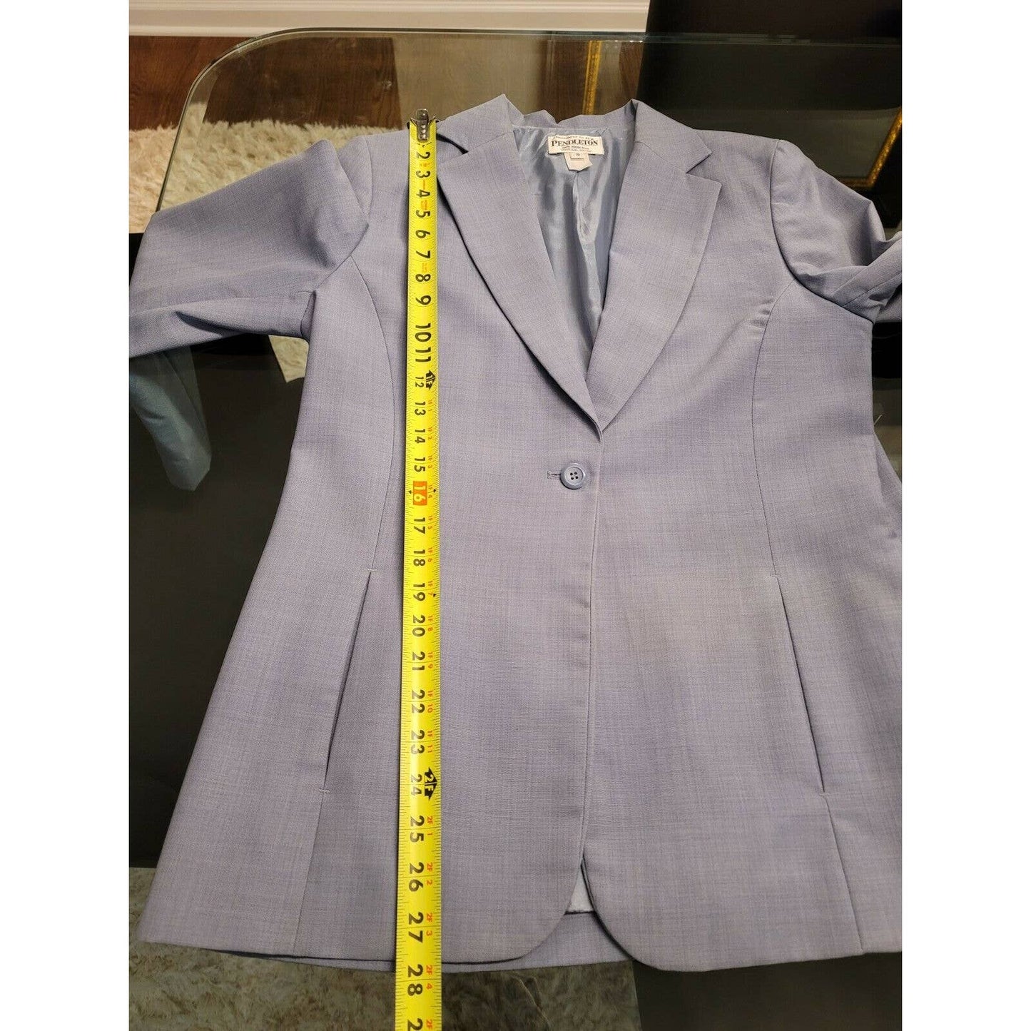 Pendleton Women's Sky Blue Wool Single Breasted One Button Fitted Blazer Size 10.