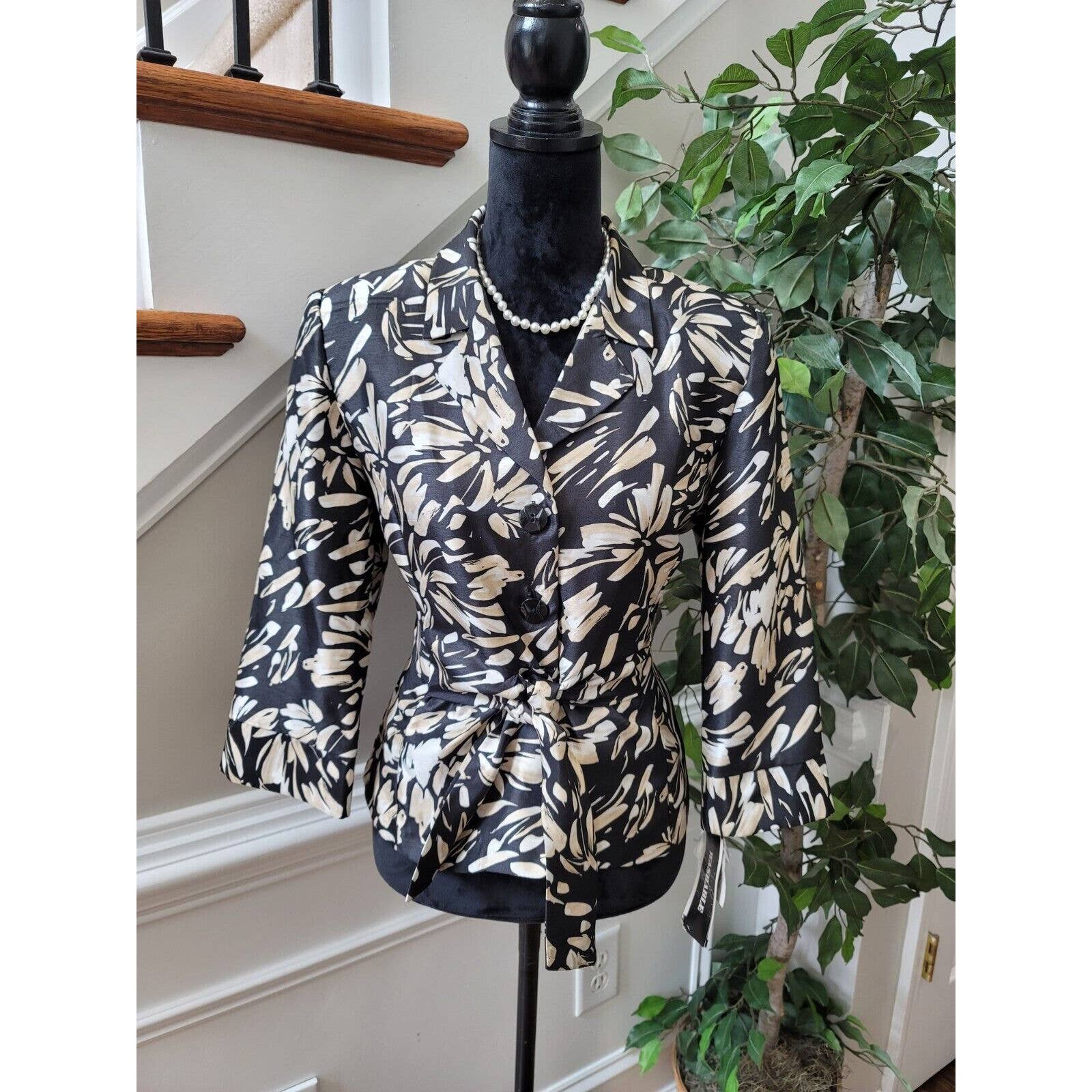 Perceptions Women Black Polyester Long Sleeve Single Breasted Fitted Blazer 14.