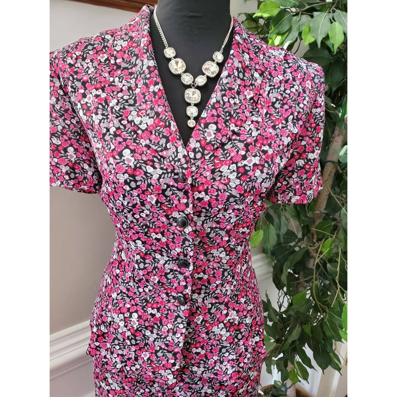 Petite Floral Women's 100% Polyeste Short Sleeve Blazer & Skirt 2 Piece Suits 12
