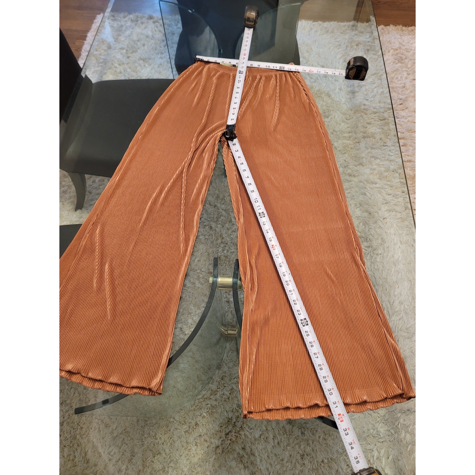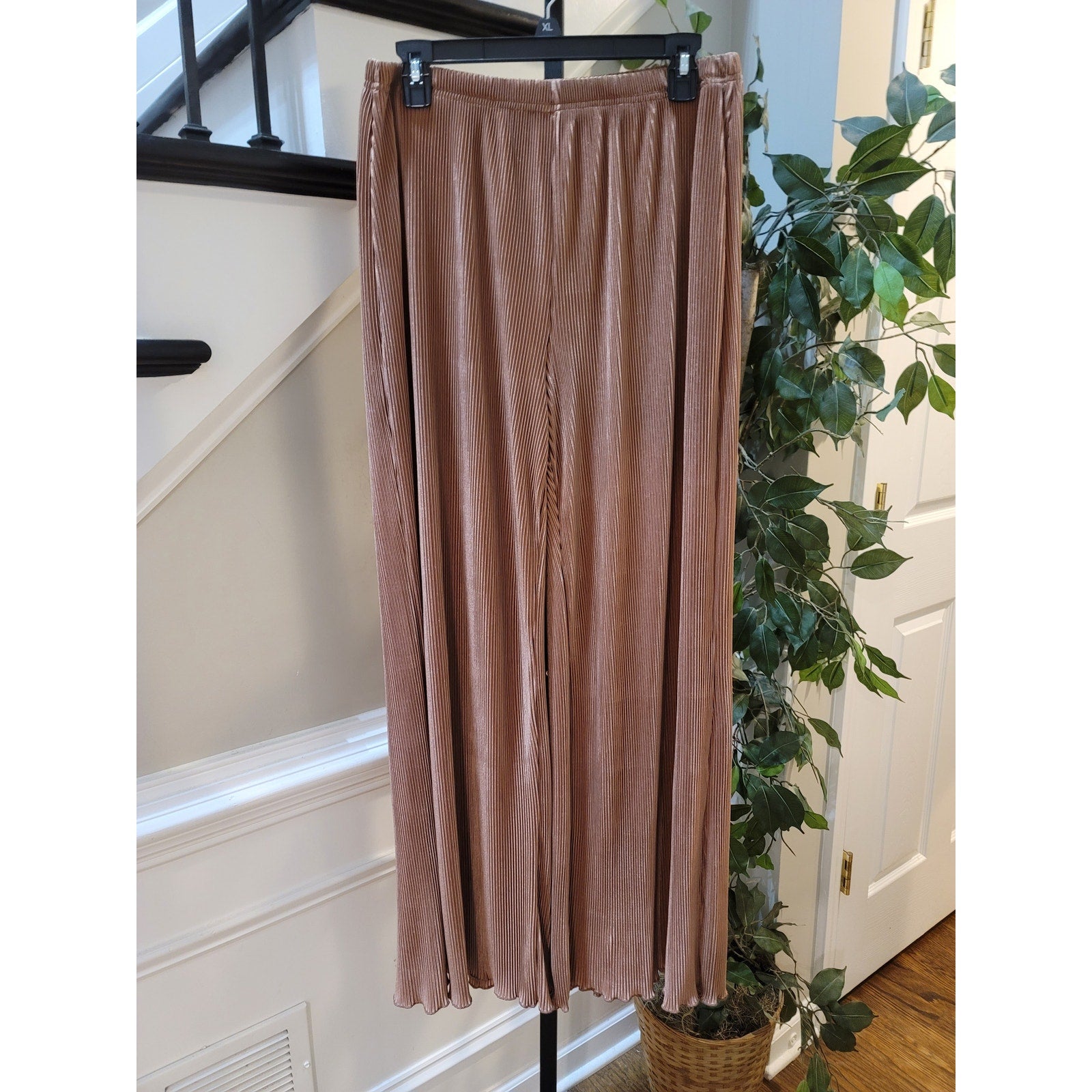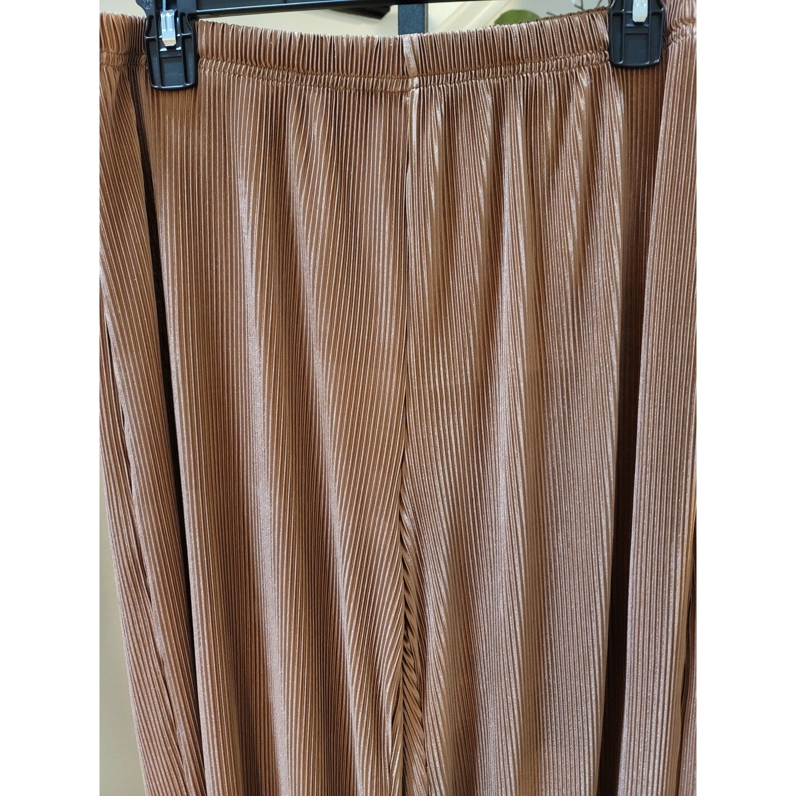Polyester Pants Women's Size XL Pleated Light Brown Stretch Elastic Waist Luxury