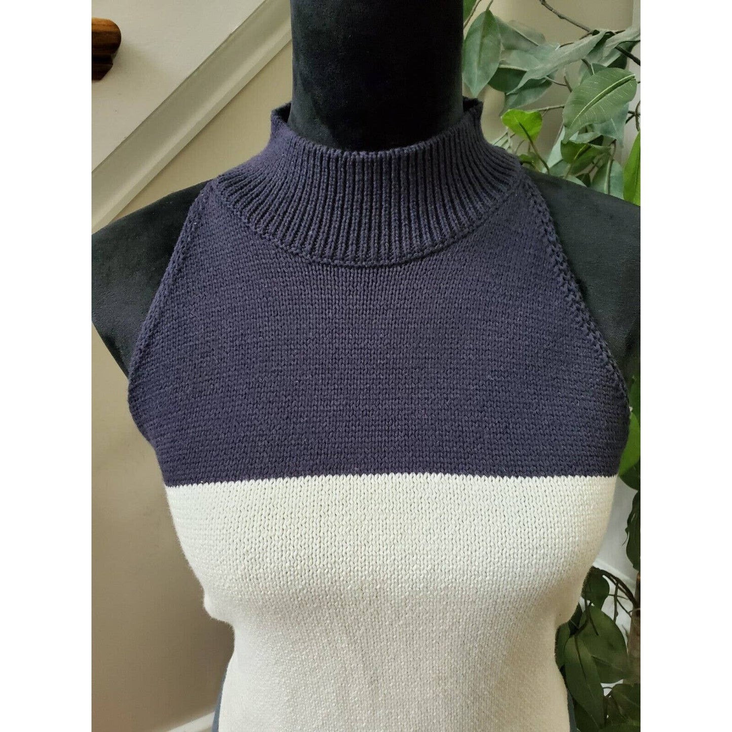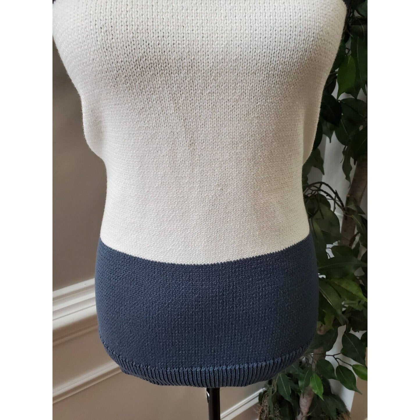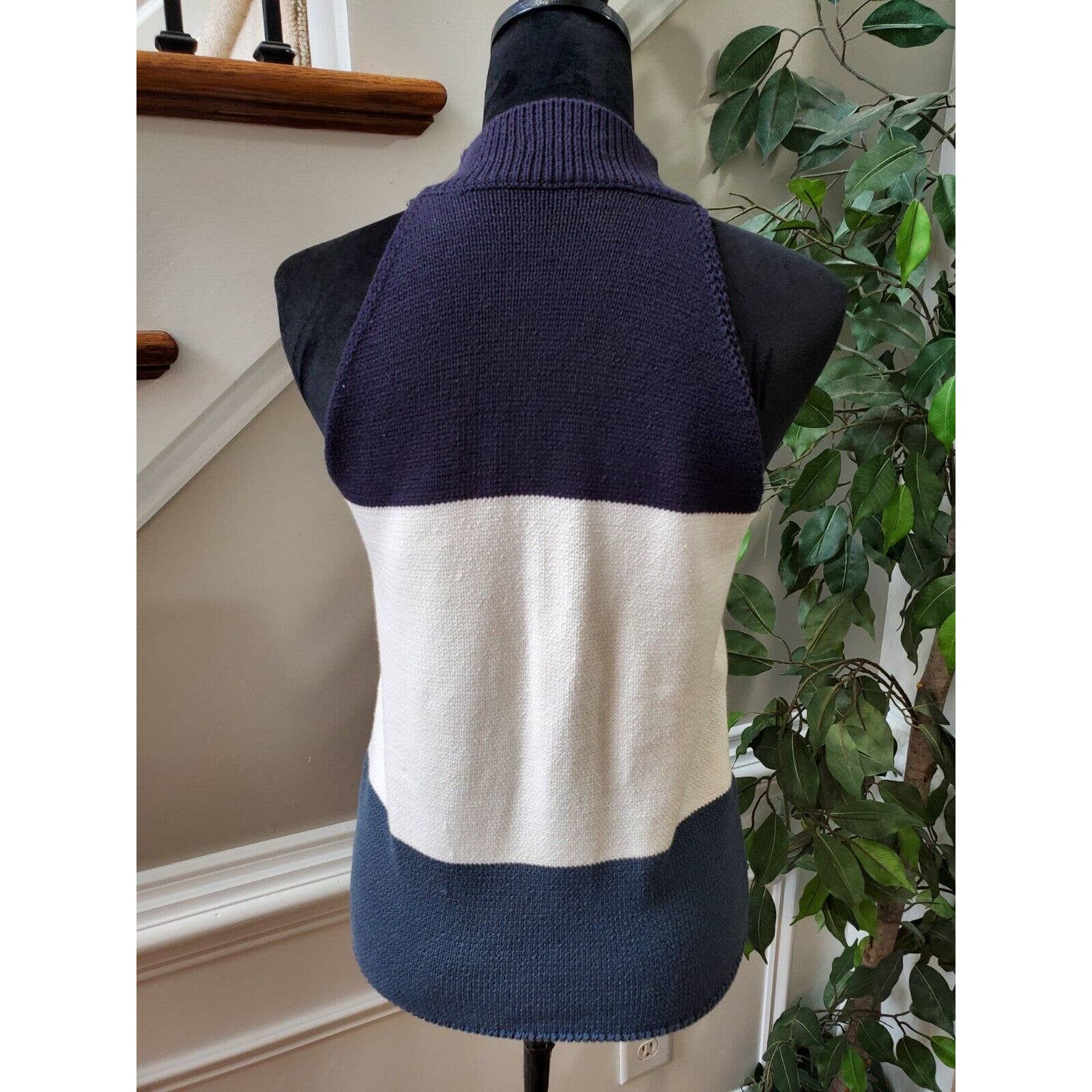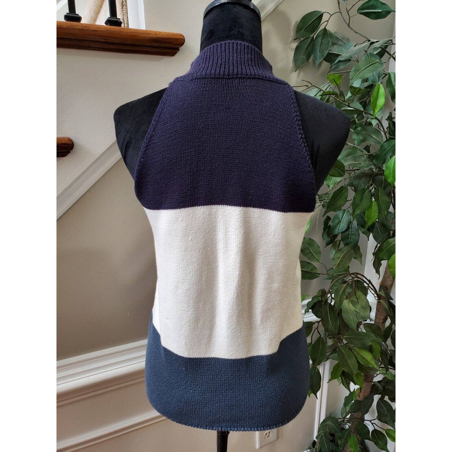 Premise Women's Blue & White Cotton Mock Neck Sleeveless Pullover Sweater Size M.