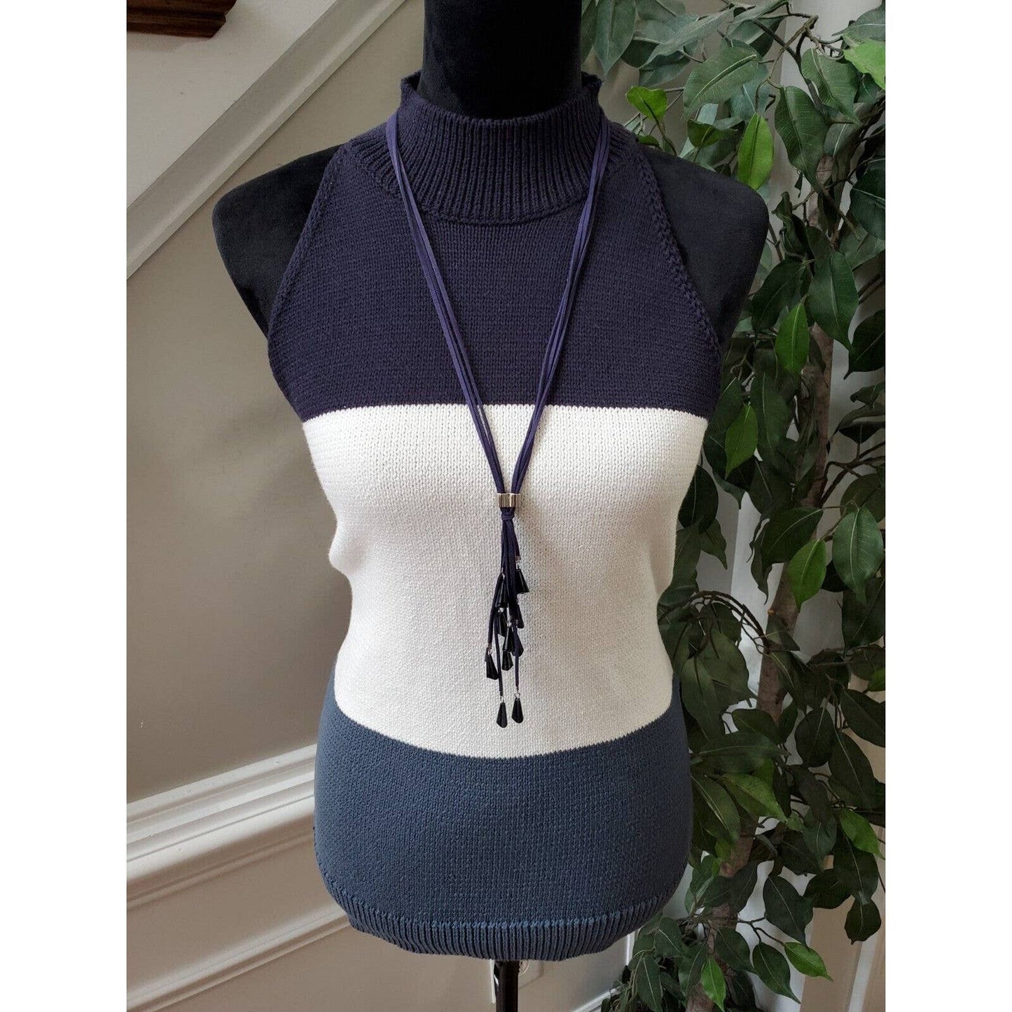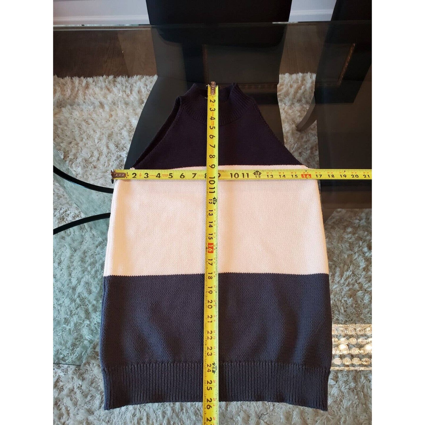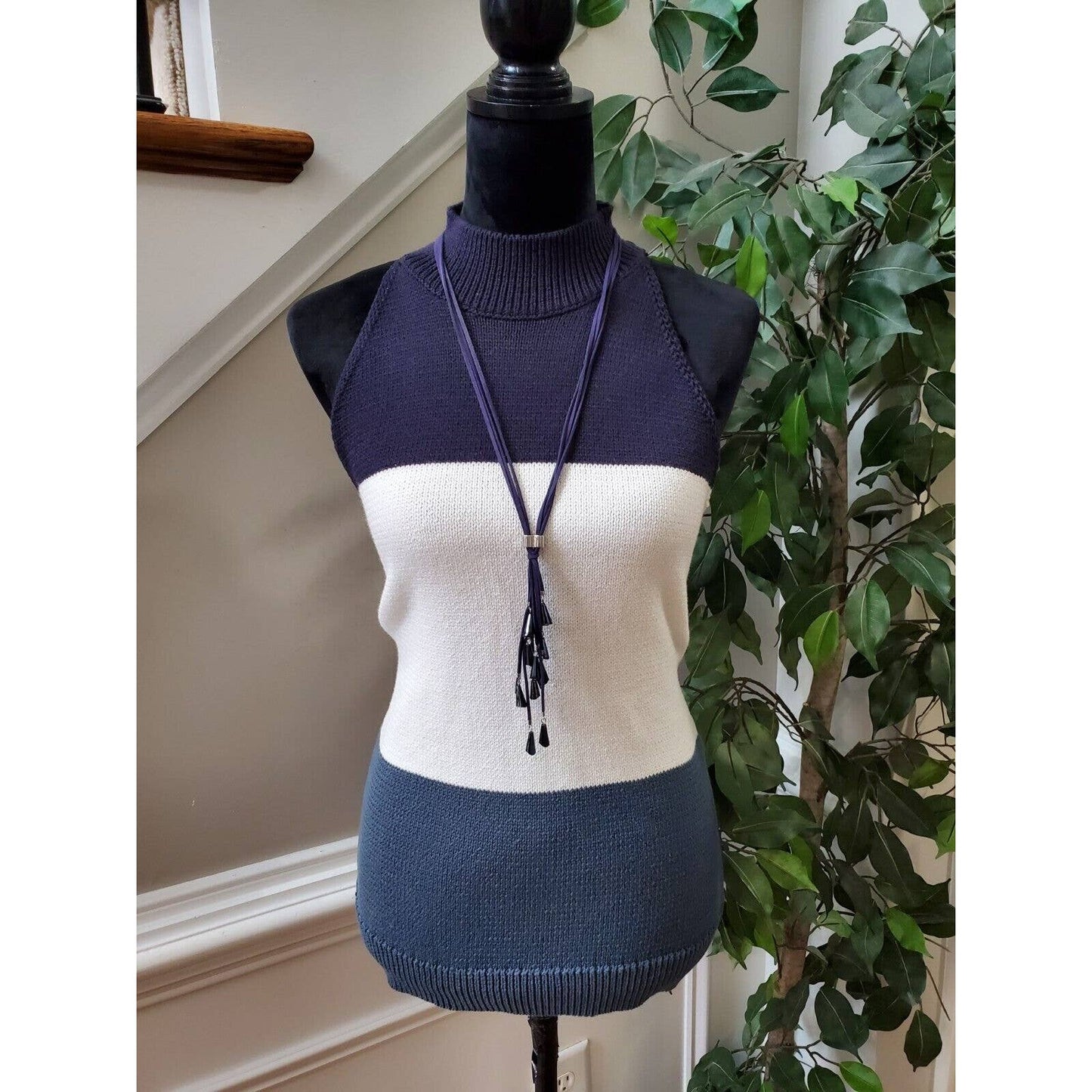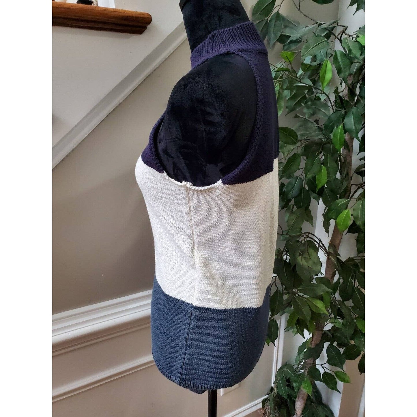 Premise Women's Blue & White Cotton Mock Neck Sleeveless Pullover Sweater Size M.