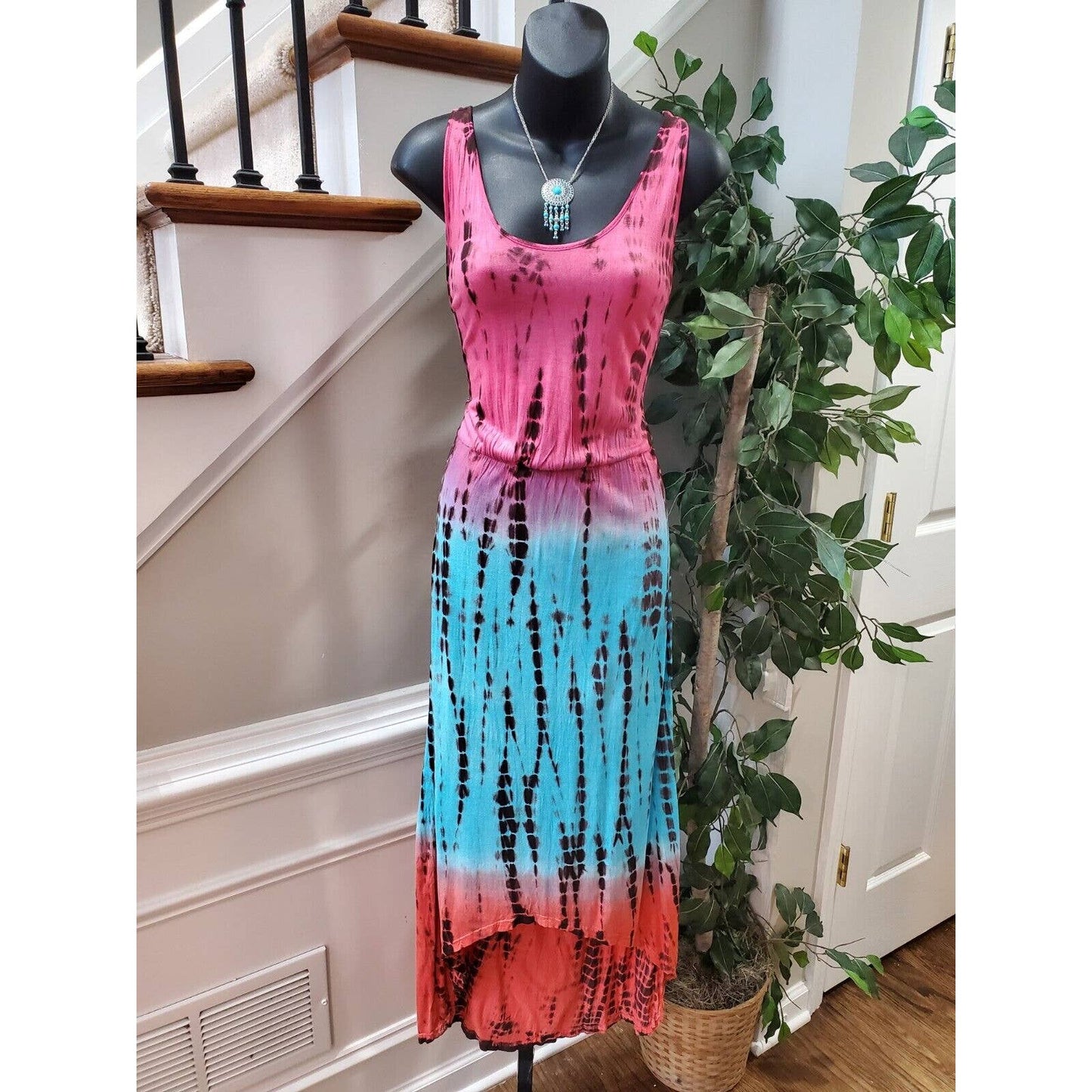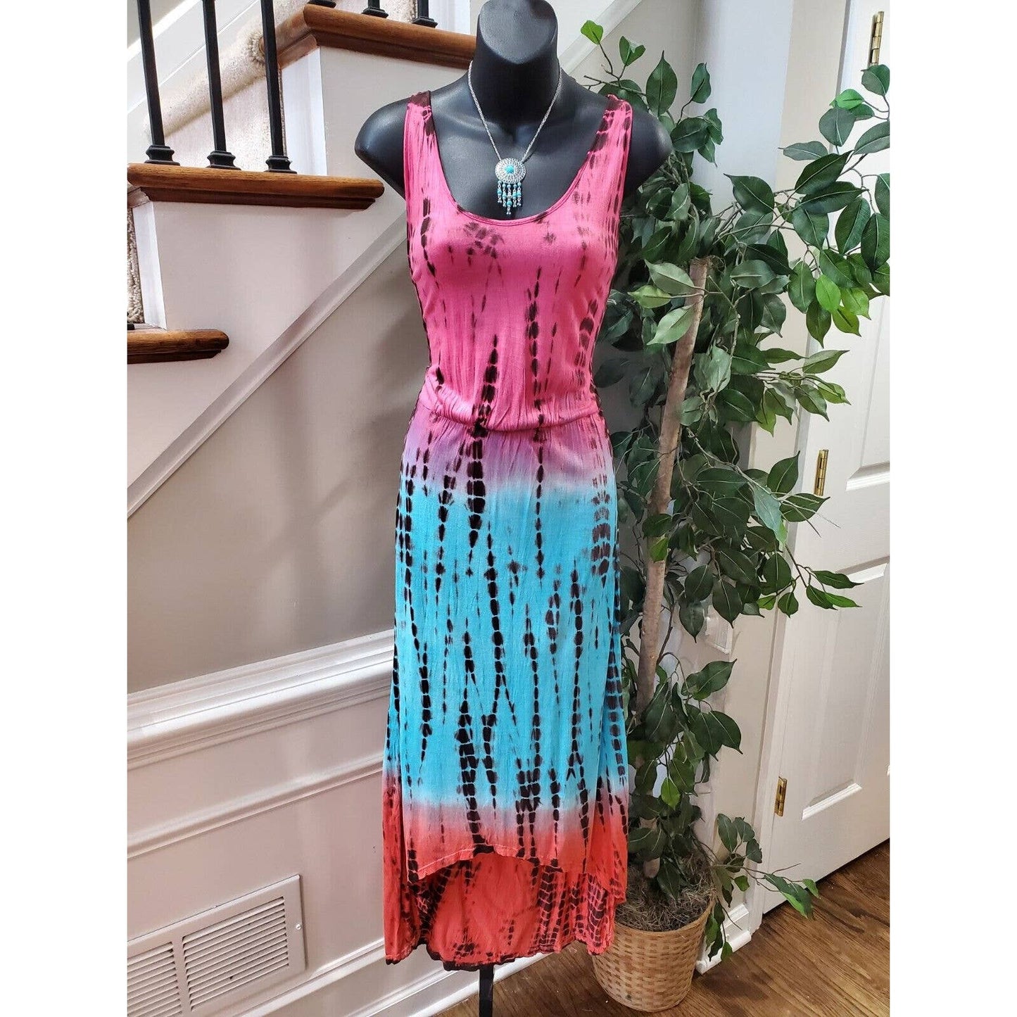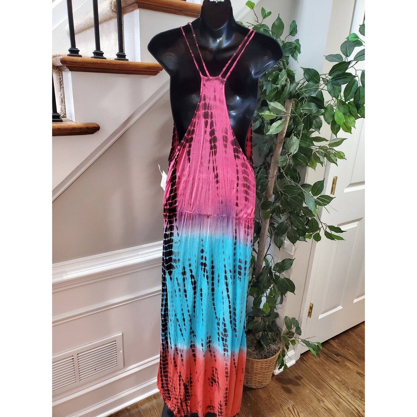 Raviya Women Multicolor Rayon Polyester Scoop Neck Sleeveless Maxi Dress Size L.