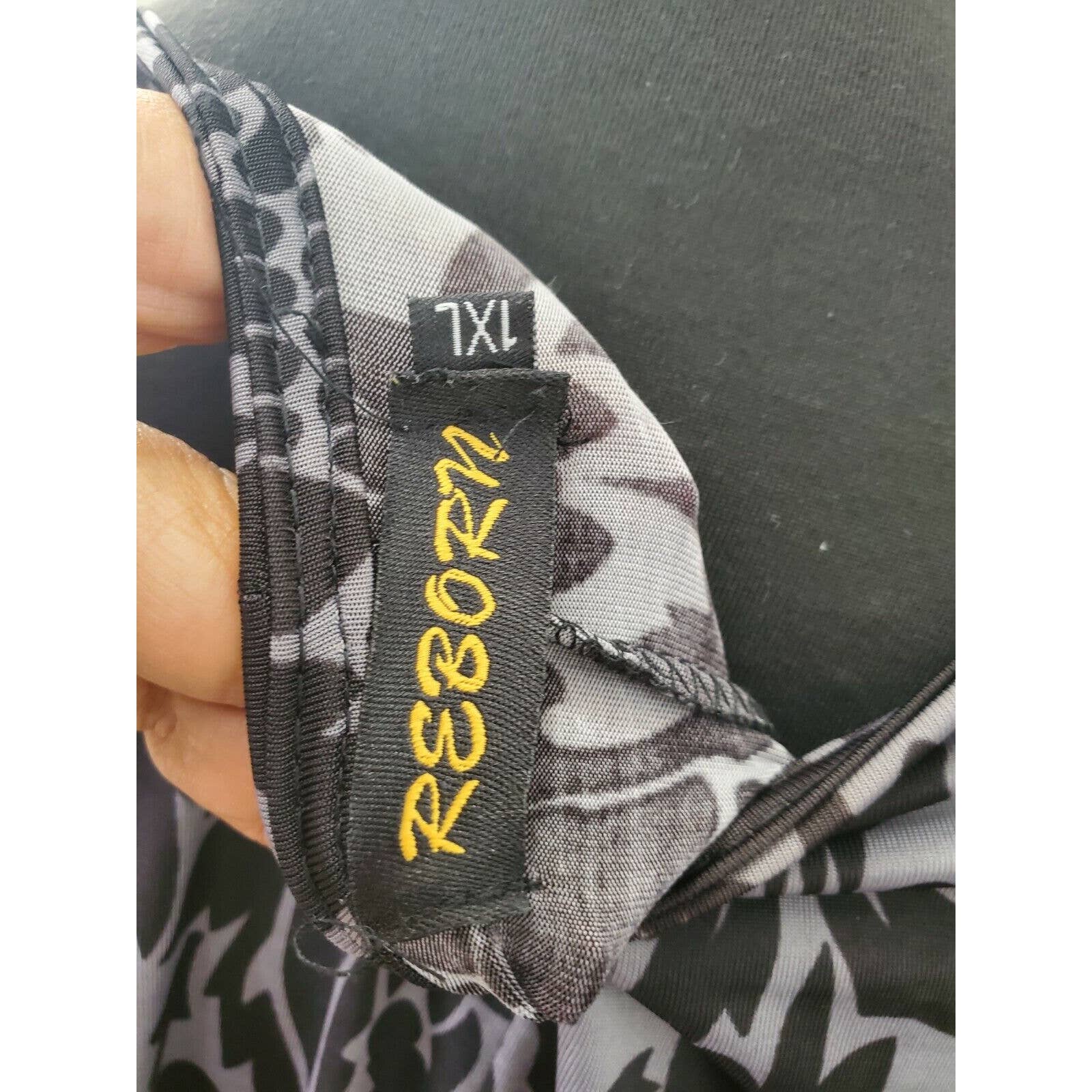 Reeborn Women Black Polyester Scoop Neck Long Sleeve Knee Length Dress Size 1XL