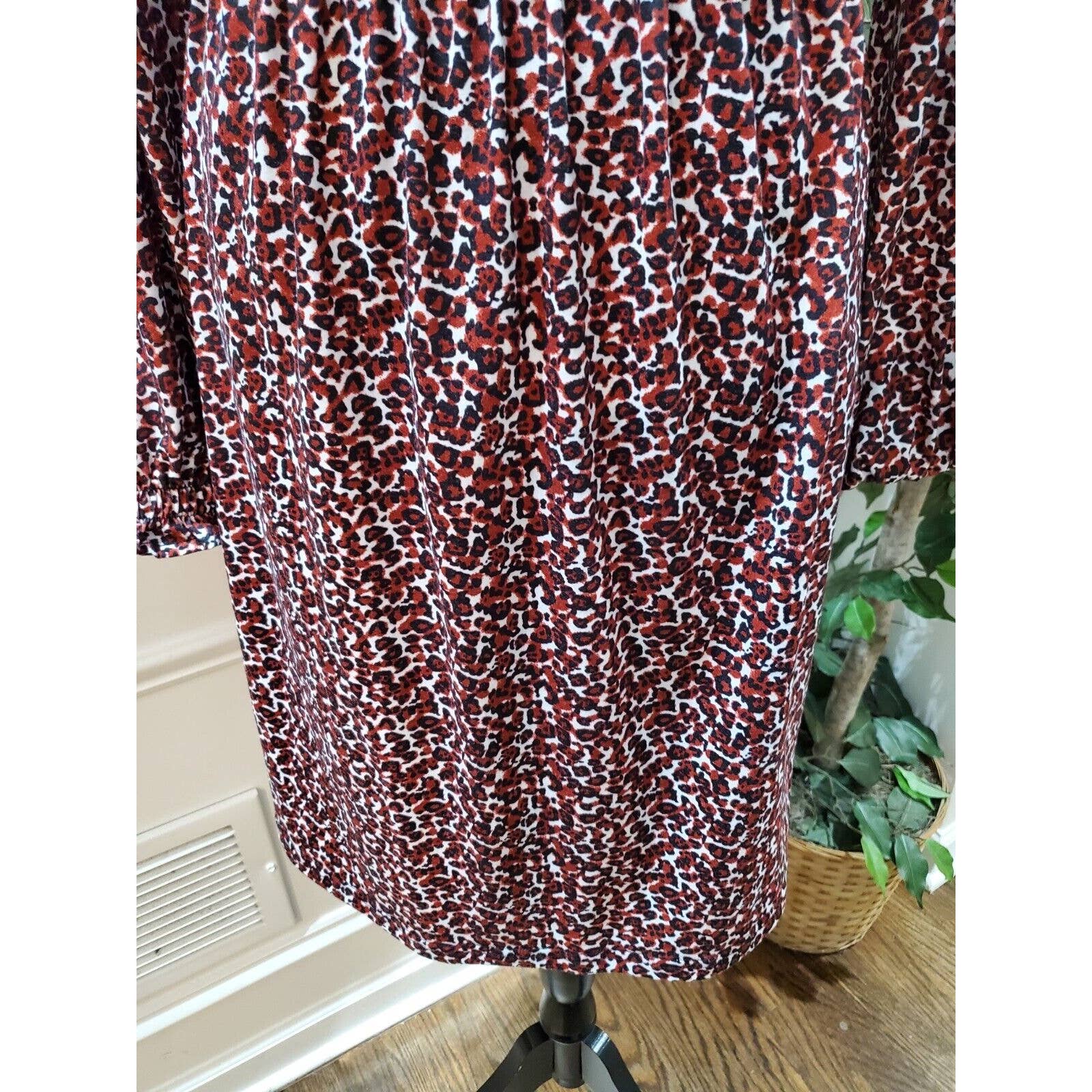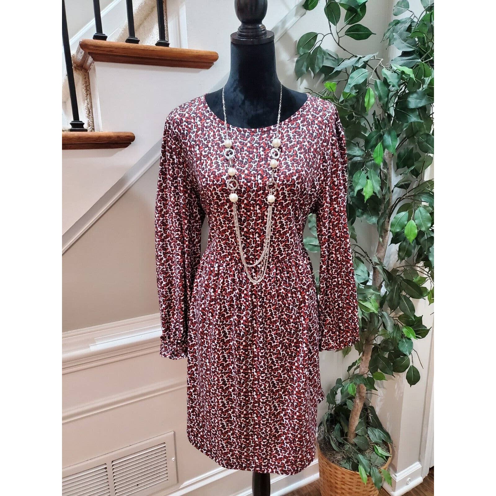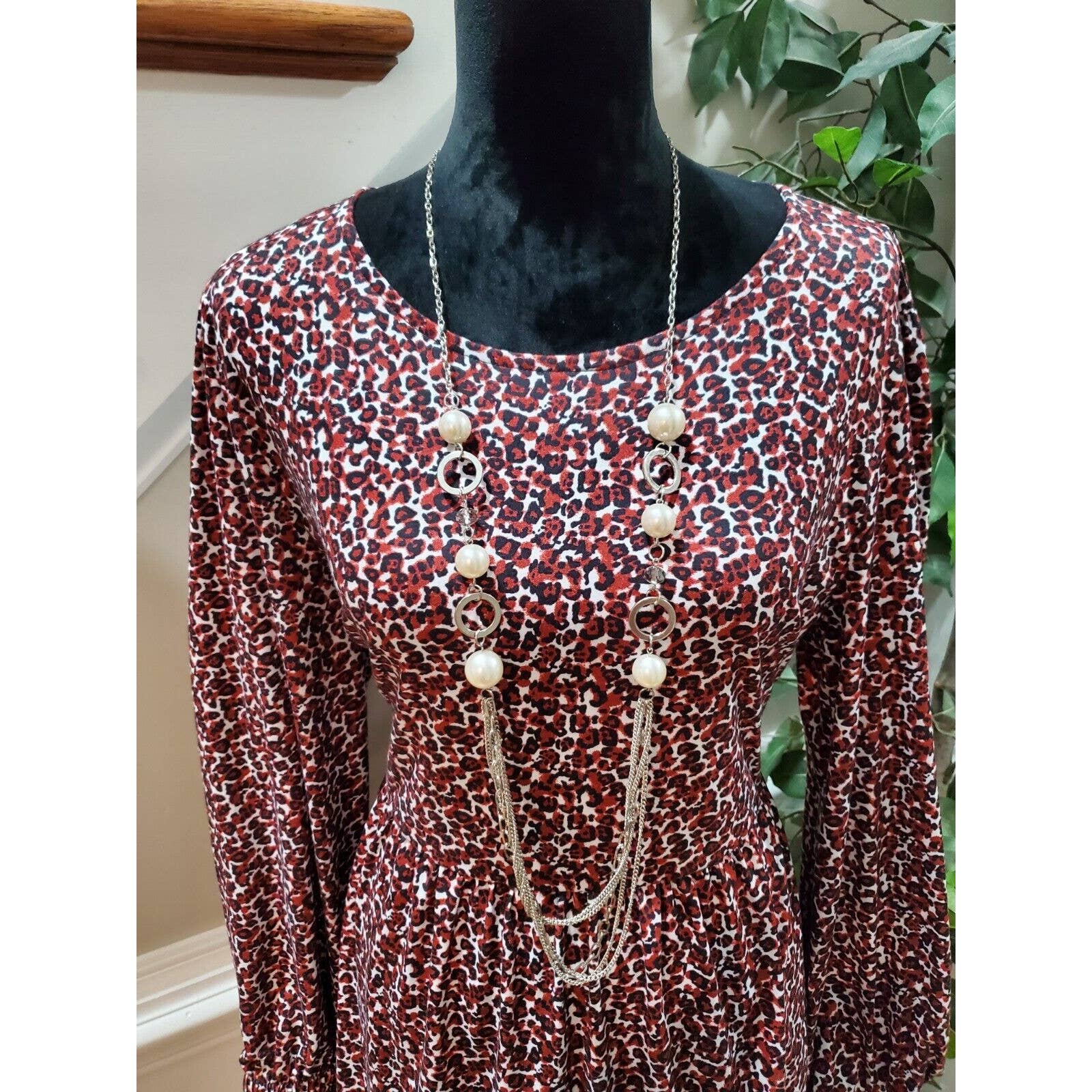 Reoria Women's Brown Polyester Round Neck Long Sleeves Knee Length Dress Size XL.