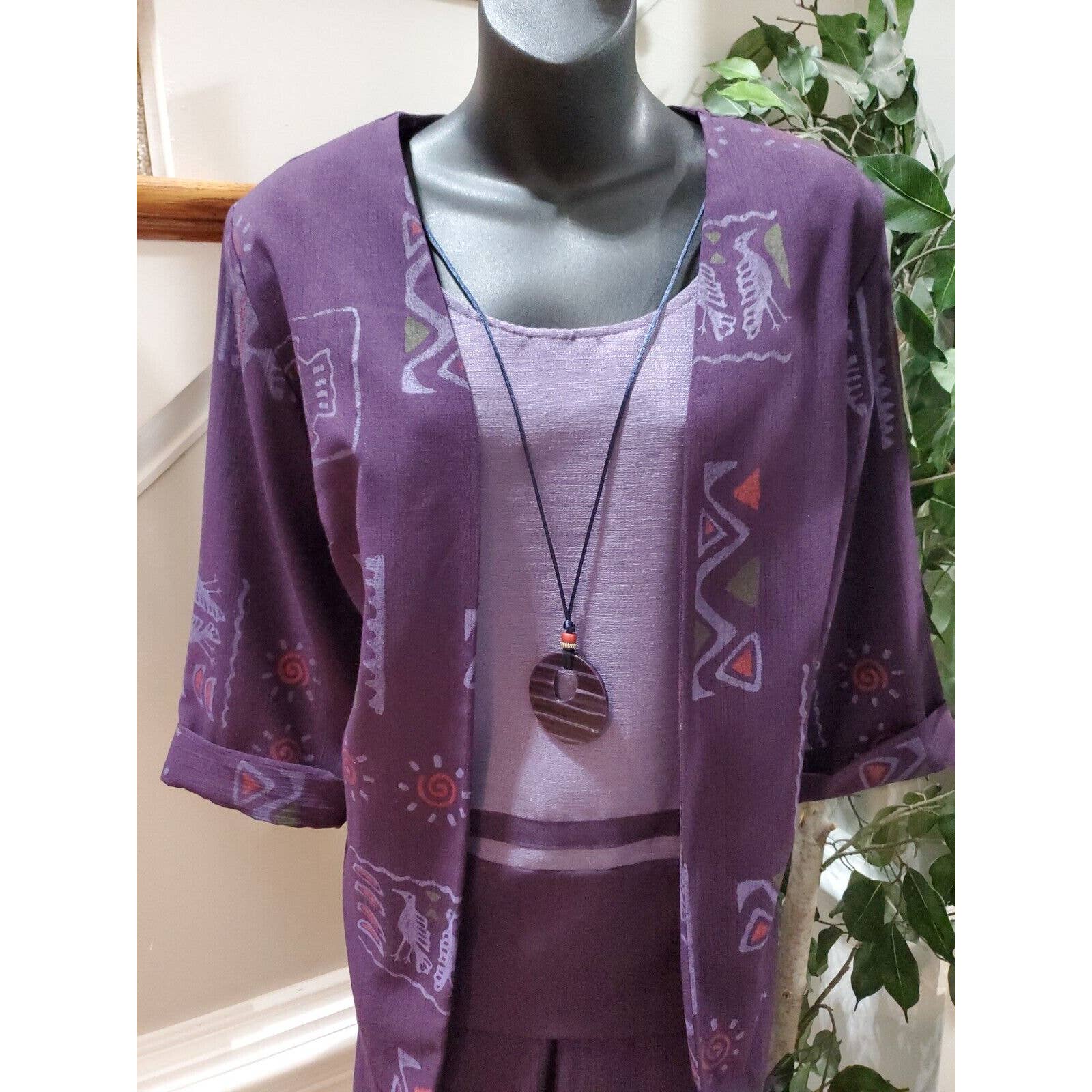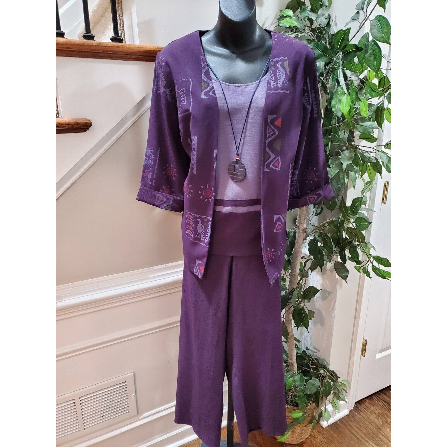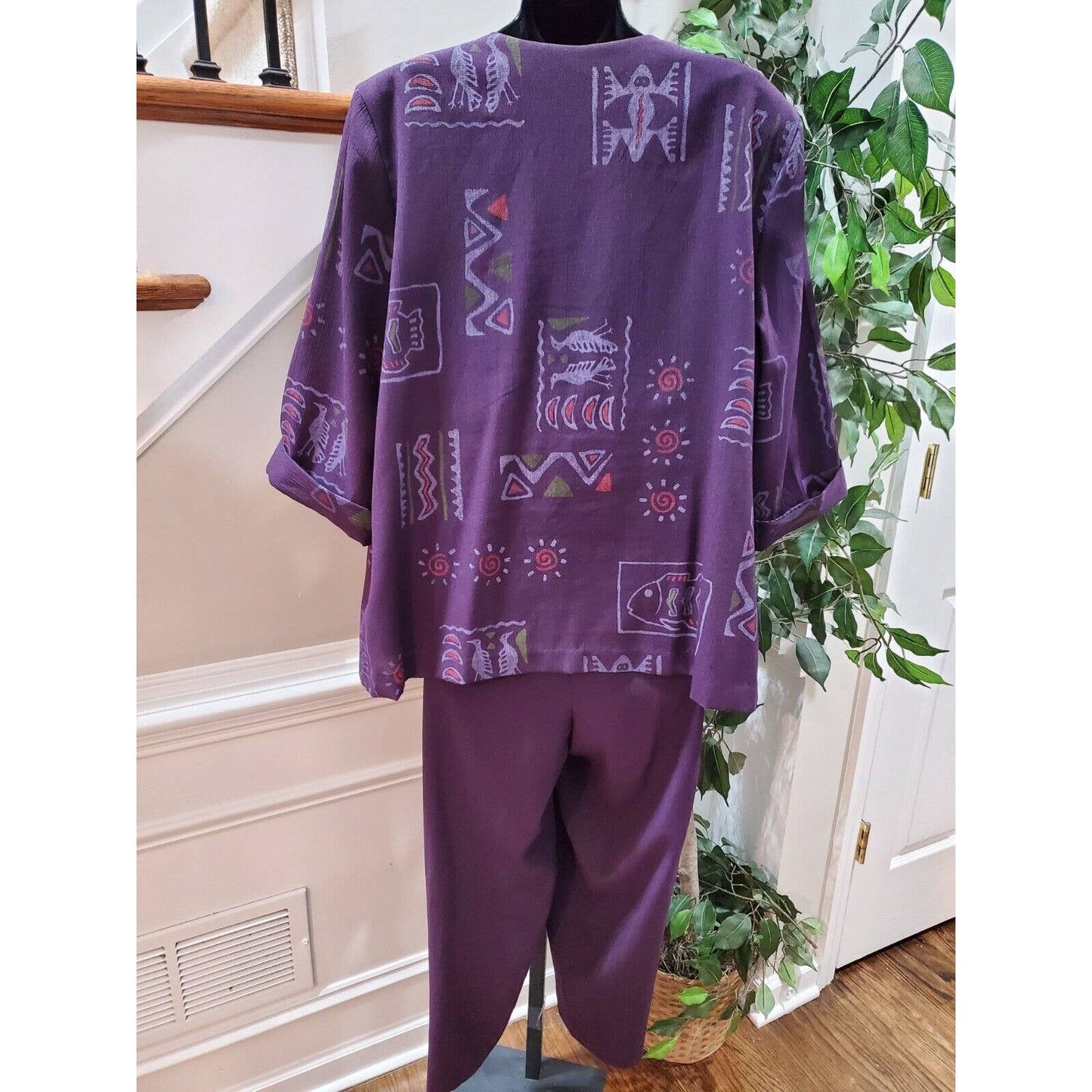 Sag Harbor Women's Purple Polyester Open Front Jacket & Pant 2 Piece Suit.