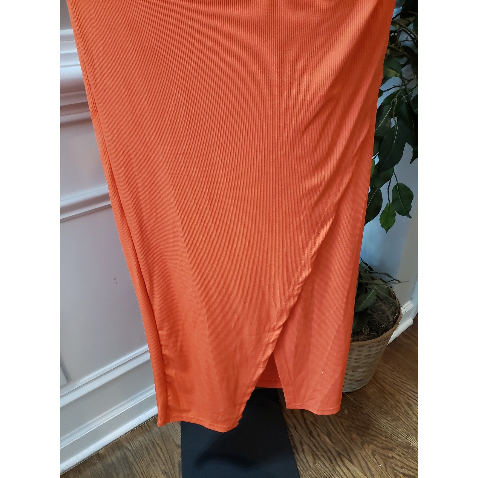 SHEIN Bodycon Dress Womens M Pink Orange Two Tone Ribbed Sleeveless Round Neck