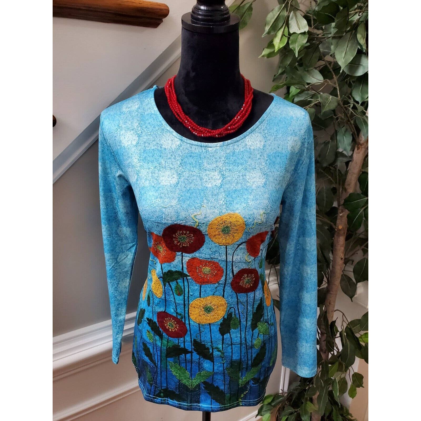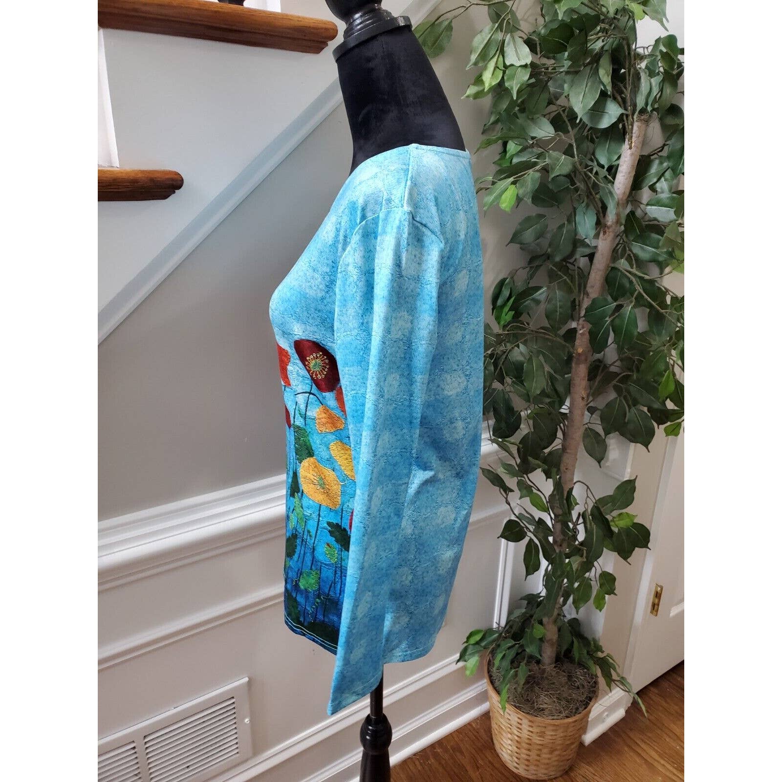 SHEIN Women's Blue Polyester Crew Neck Long Sleeve Casual Top Shirt Size Small