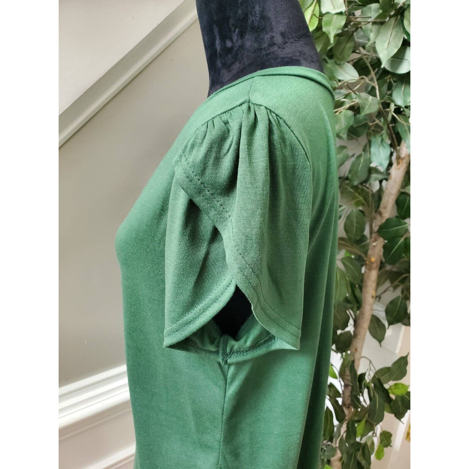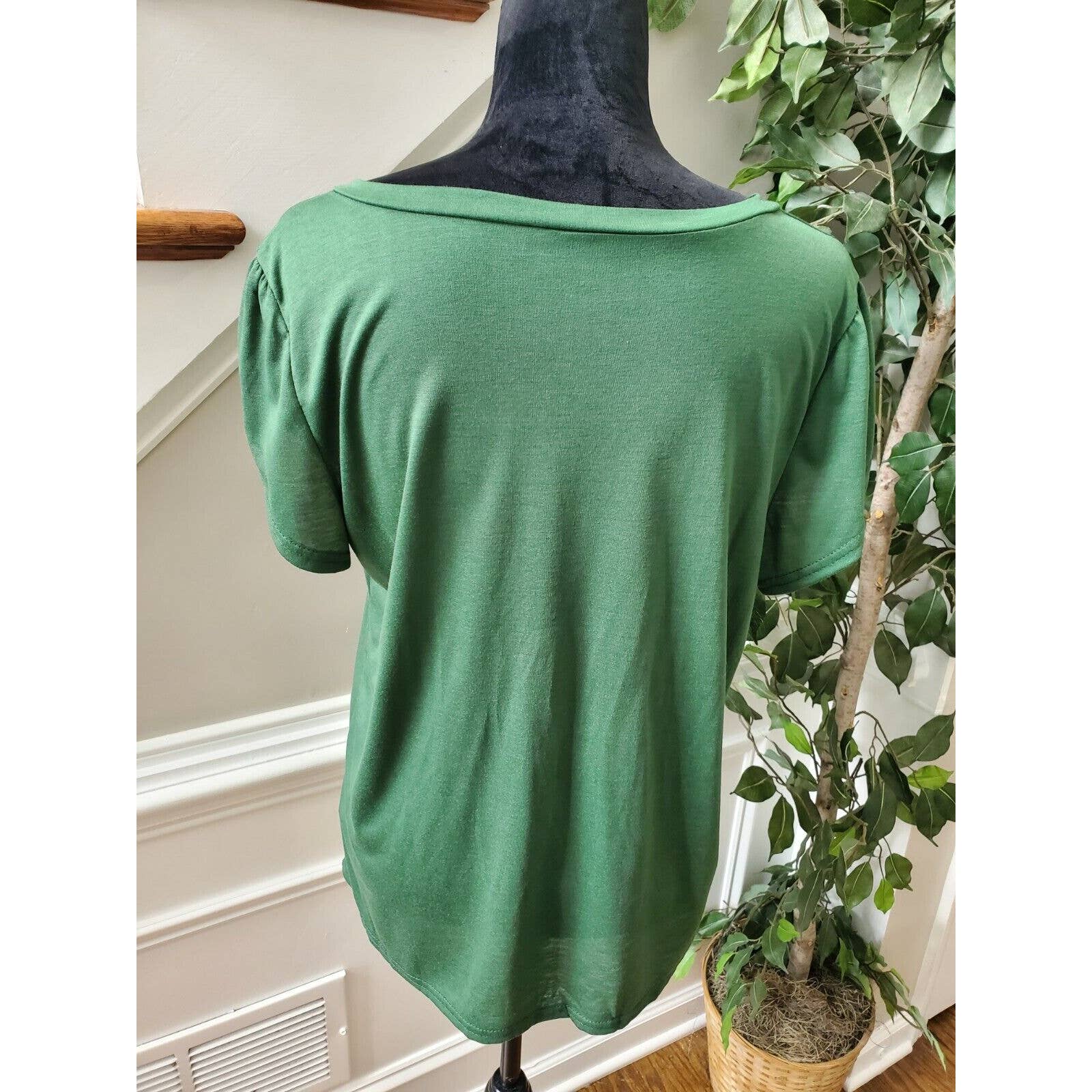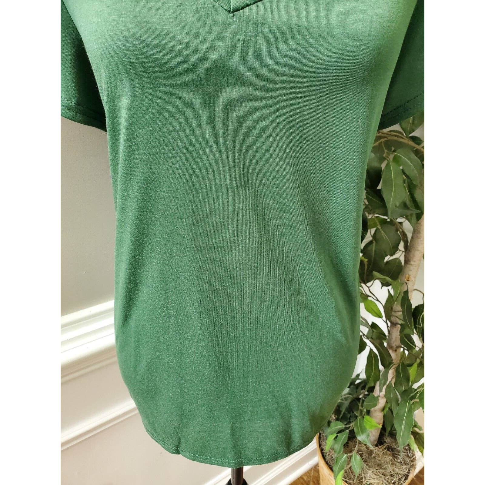 SHEIN Women's Green Polyester V-Neck Short Sleeve Casual Top Shirt Size Large.