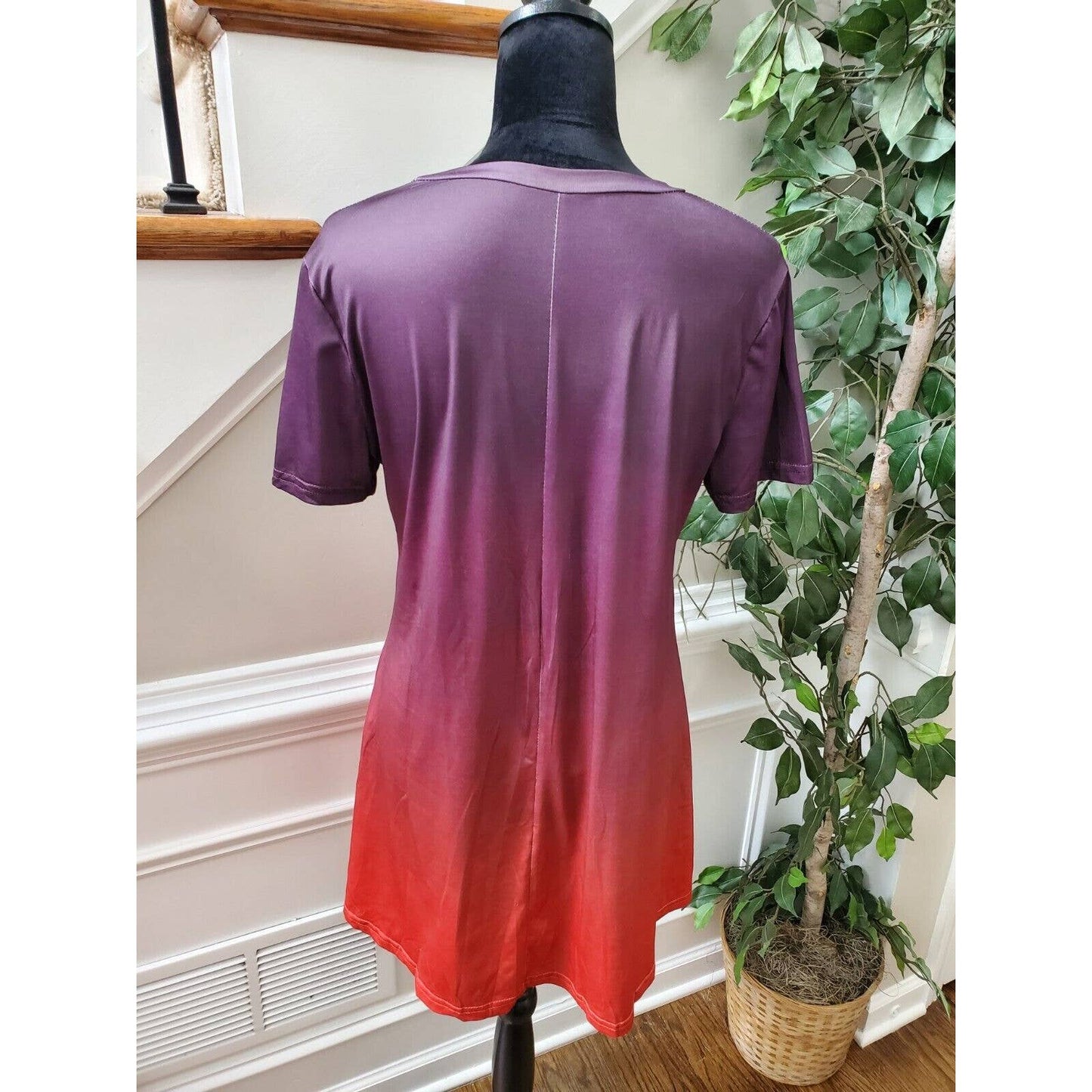 SHEIN Women's Purple Polyester Crew Neck Short Sleeve Tunic Top Shirt M