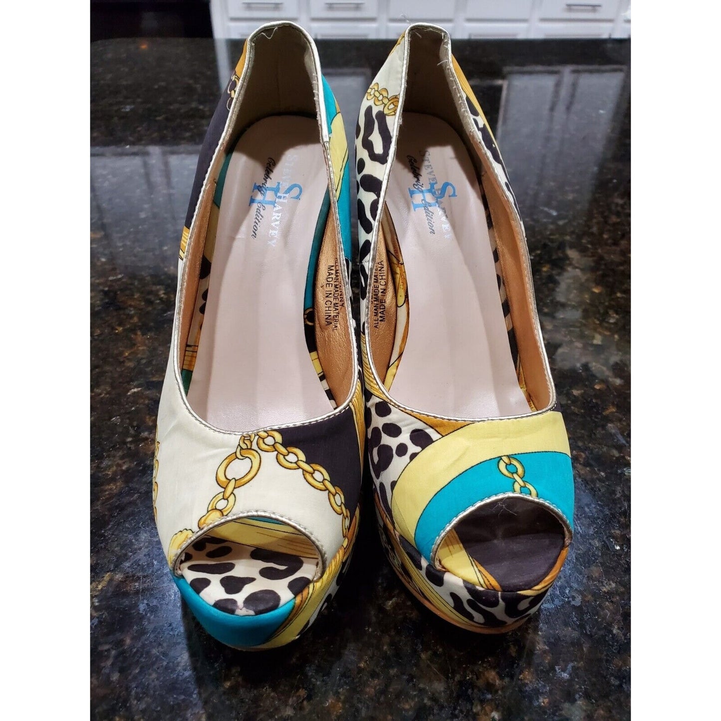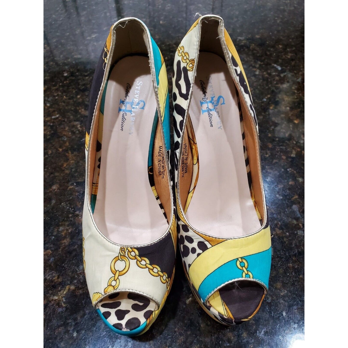 Steven Harvey Women s Multicolor Peep Toe Casual High Heel Sandals. 9