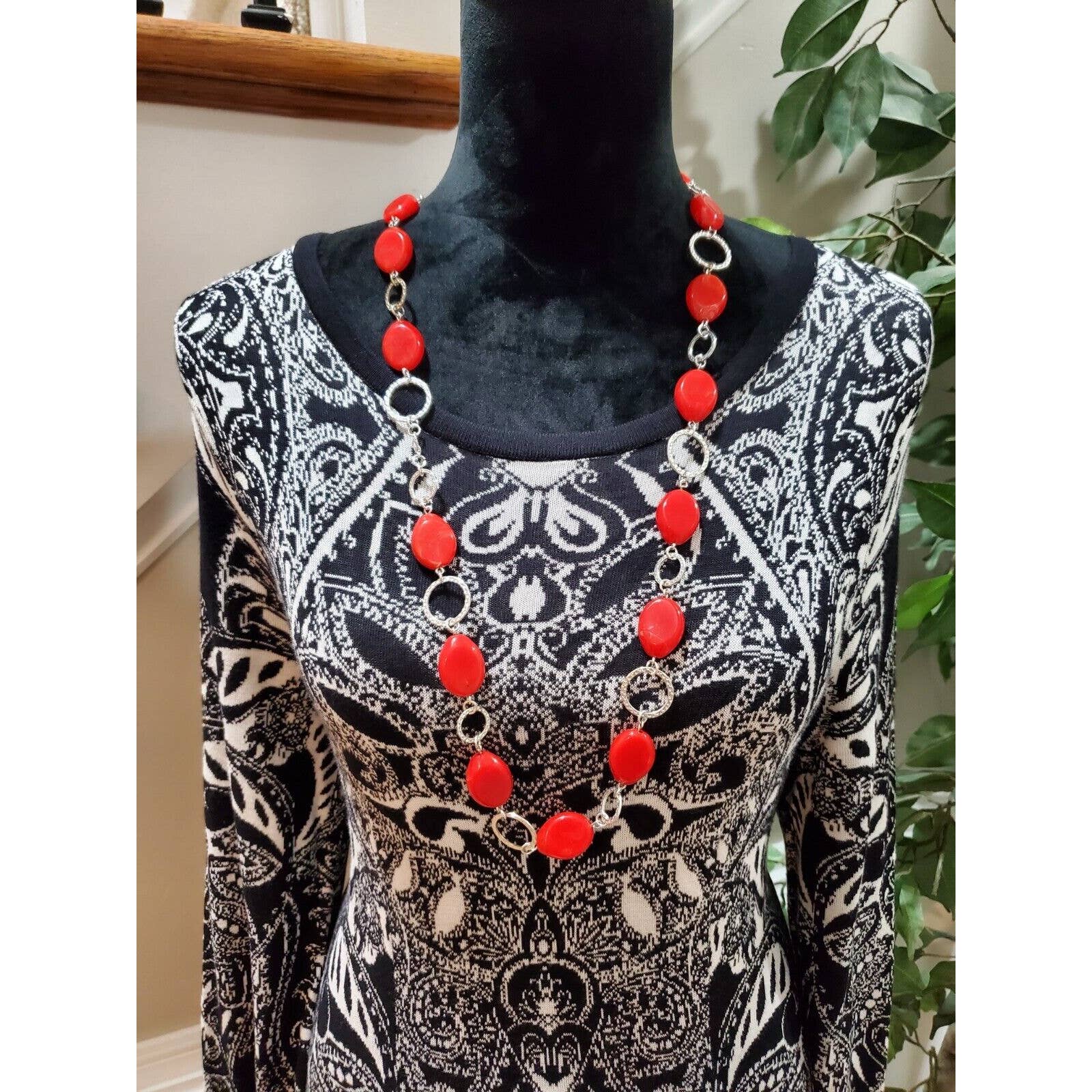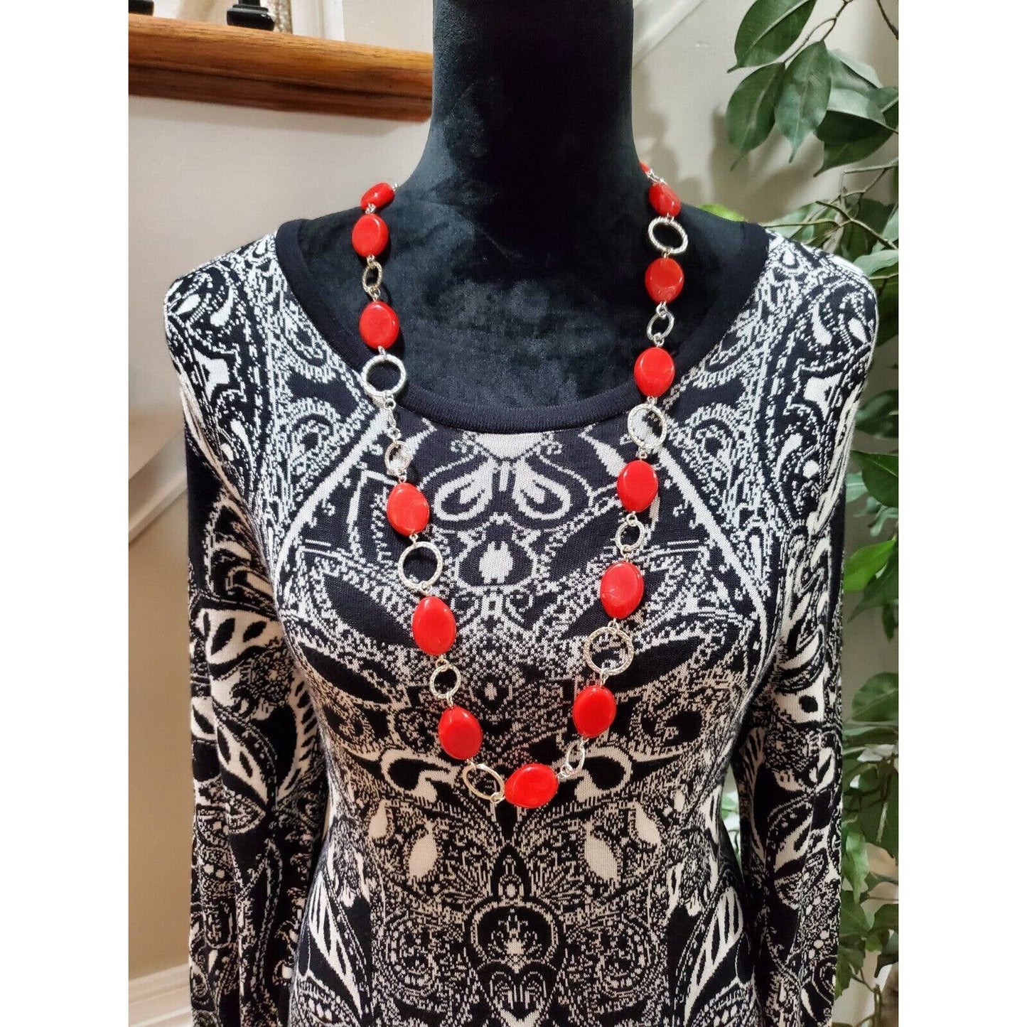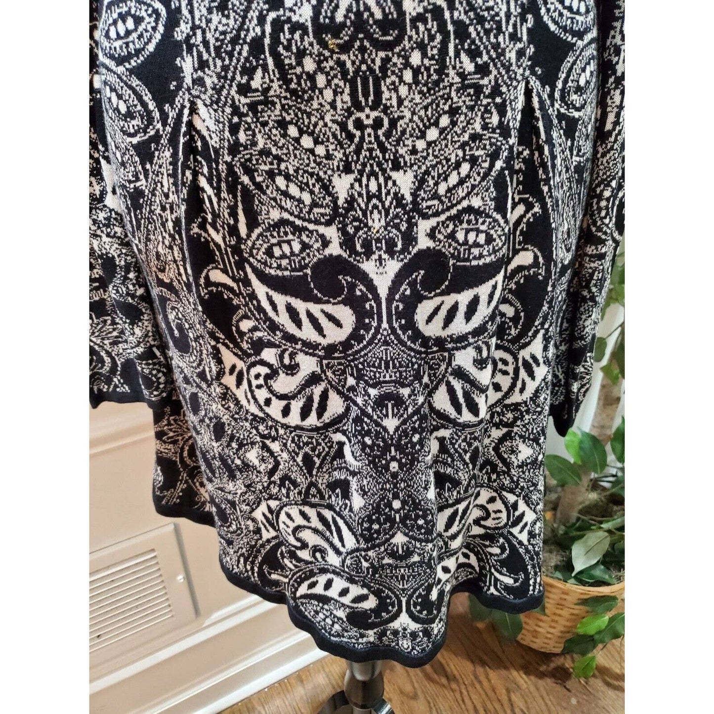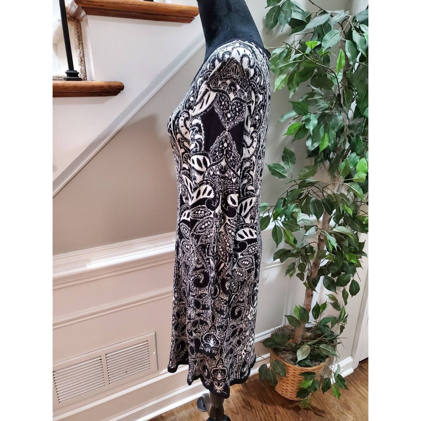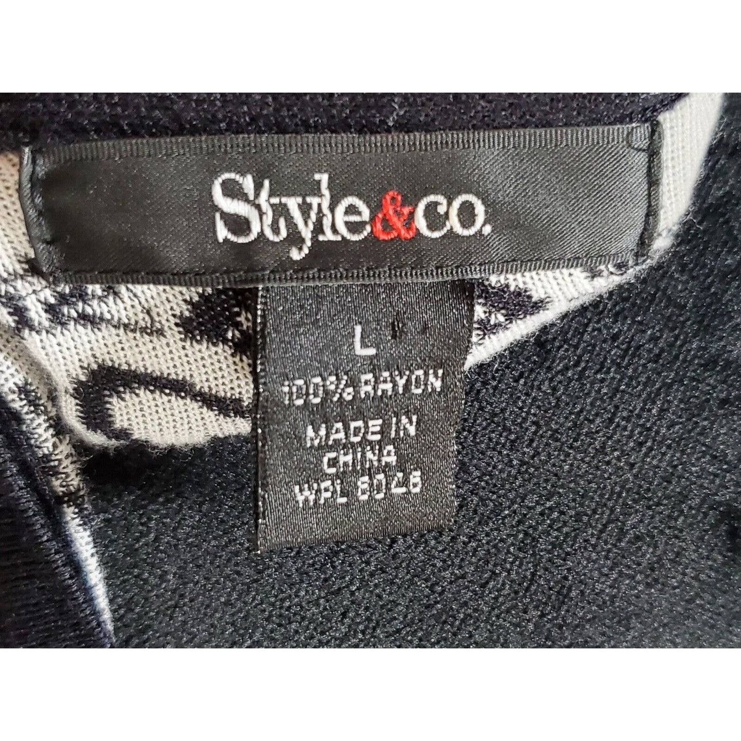 Style&Co. Black & White Rayon Round Neck Long Sleeve Knee Length Sweater Dress L