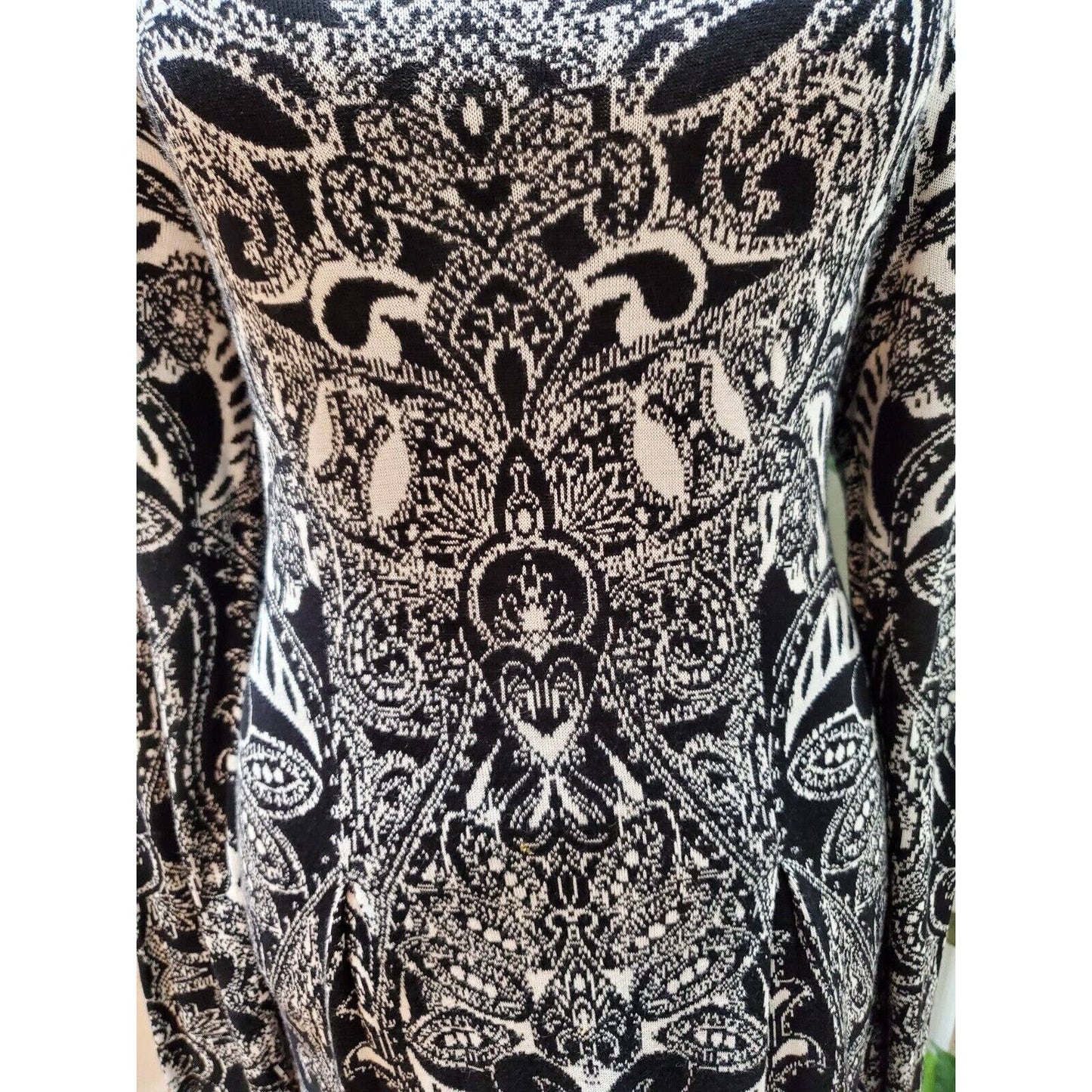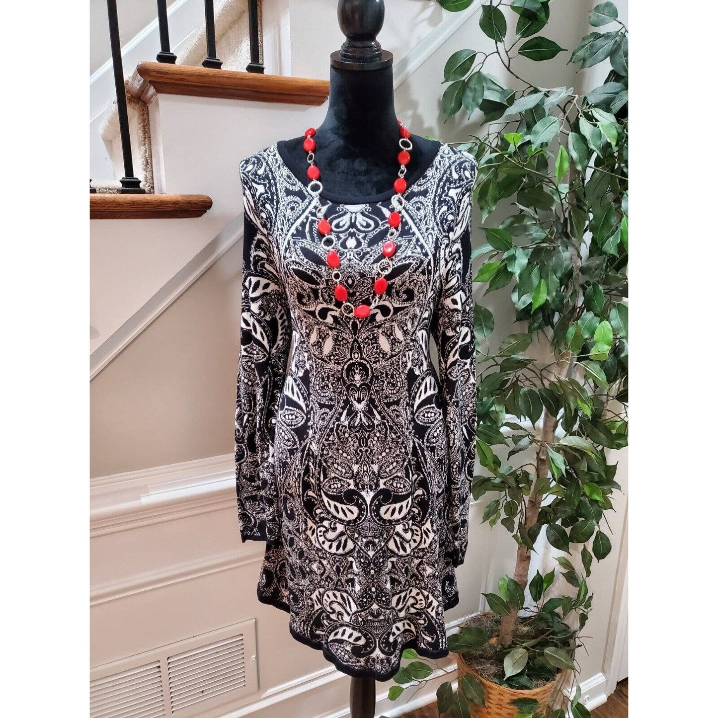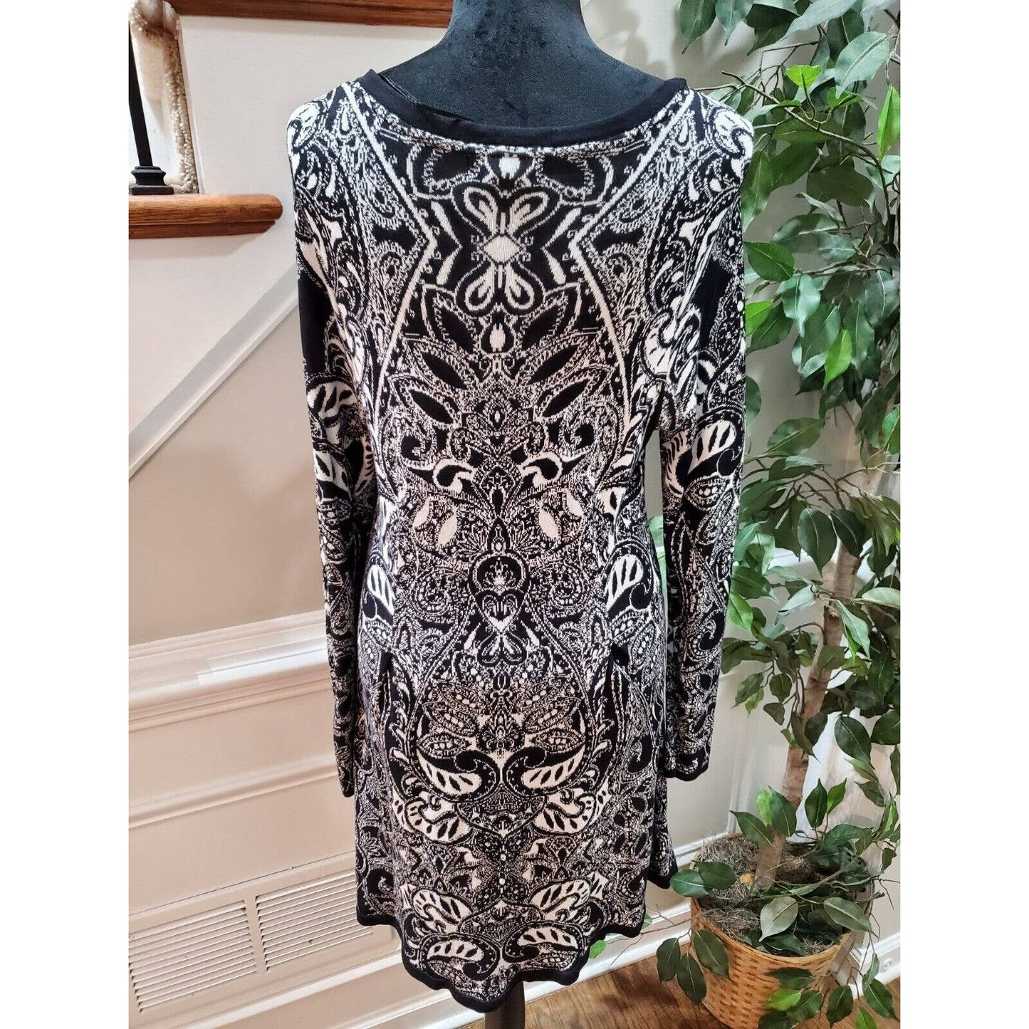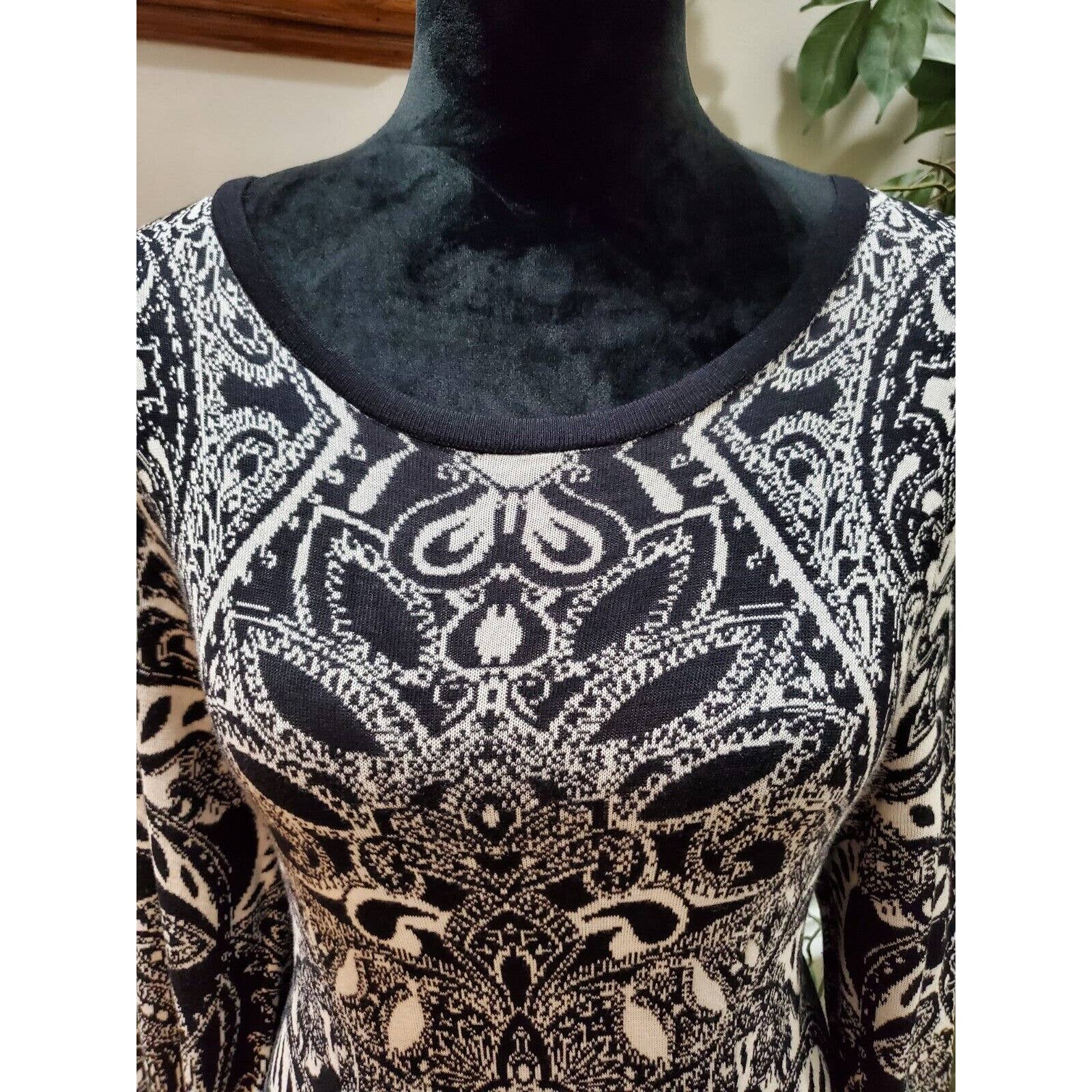 Style&Co. Women's Black & White Rayon Round Neck Long Sleeve Knee Length Sweater Dress L.