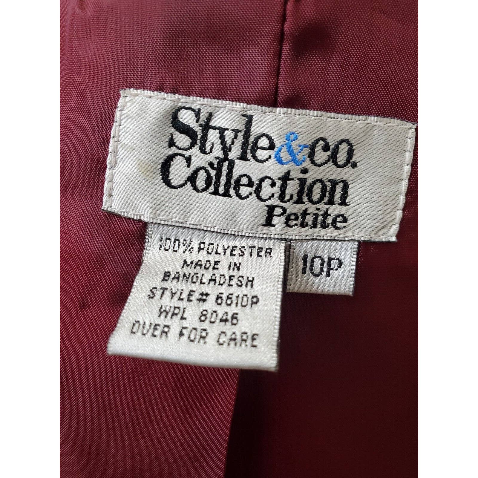 Style& Co. Women's Maroon Polyester Long Sleeve Full Zip Jacket Blazer Size 10P.