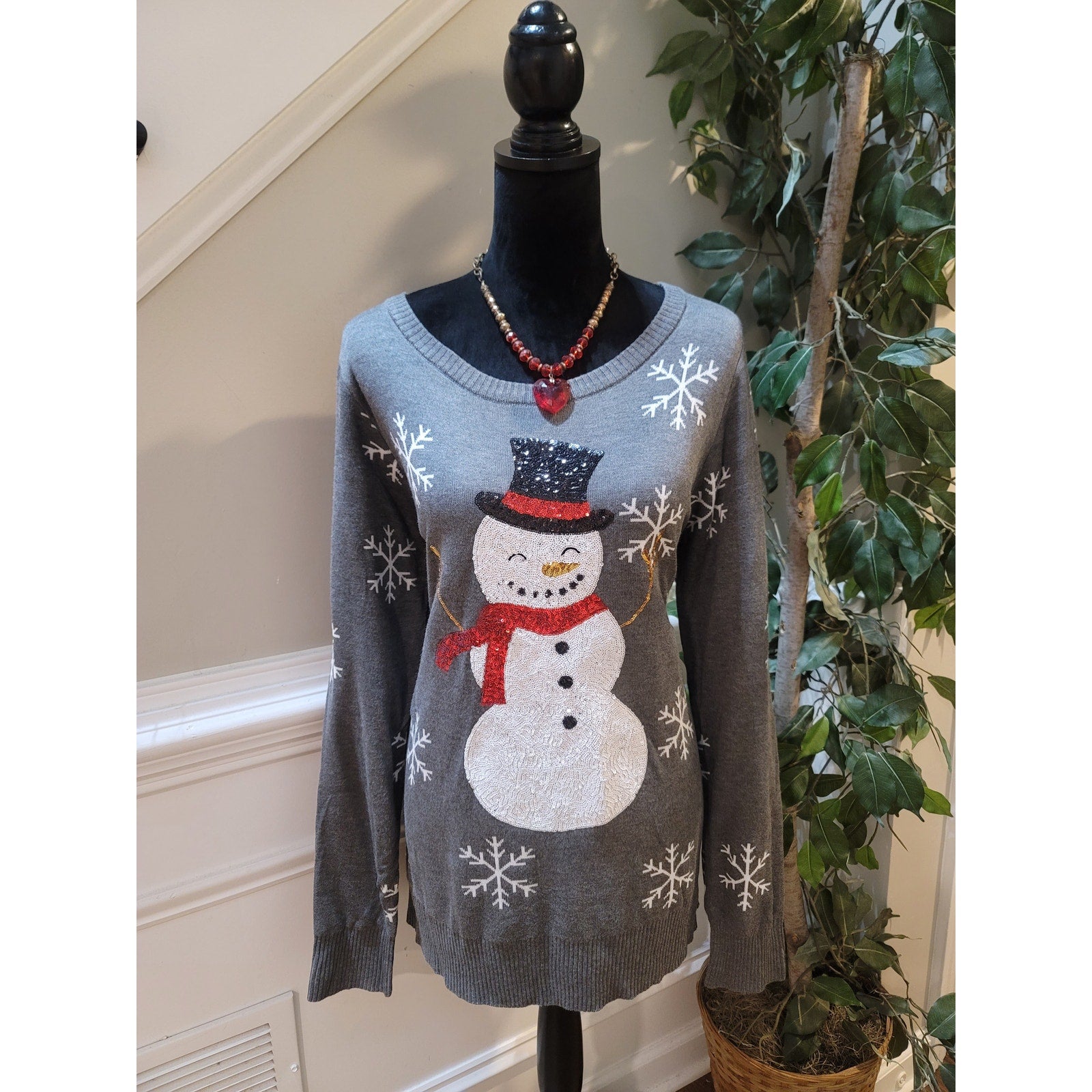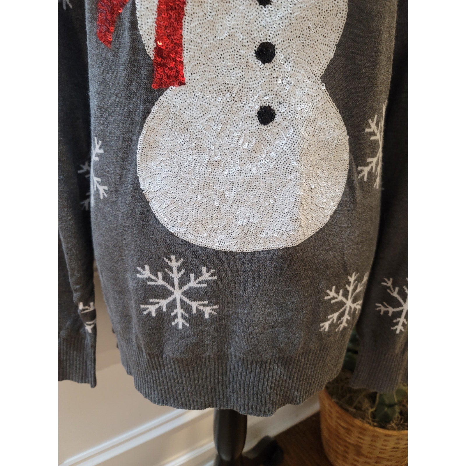 Tipsy Elves Christmas Sweater Women's Large Gray Snowman Long Sleeve Pullover