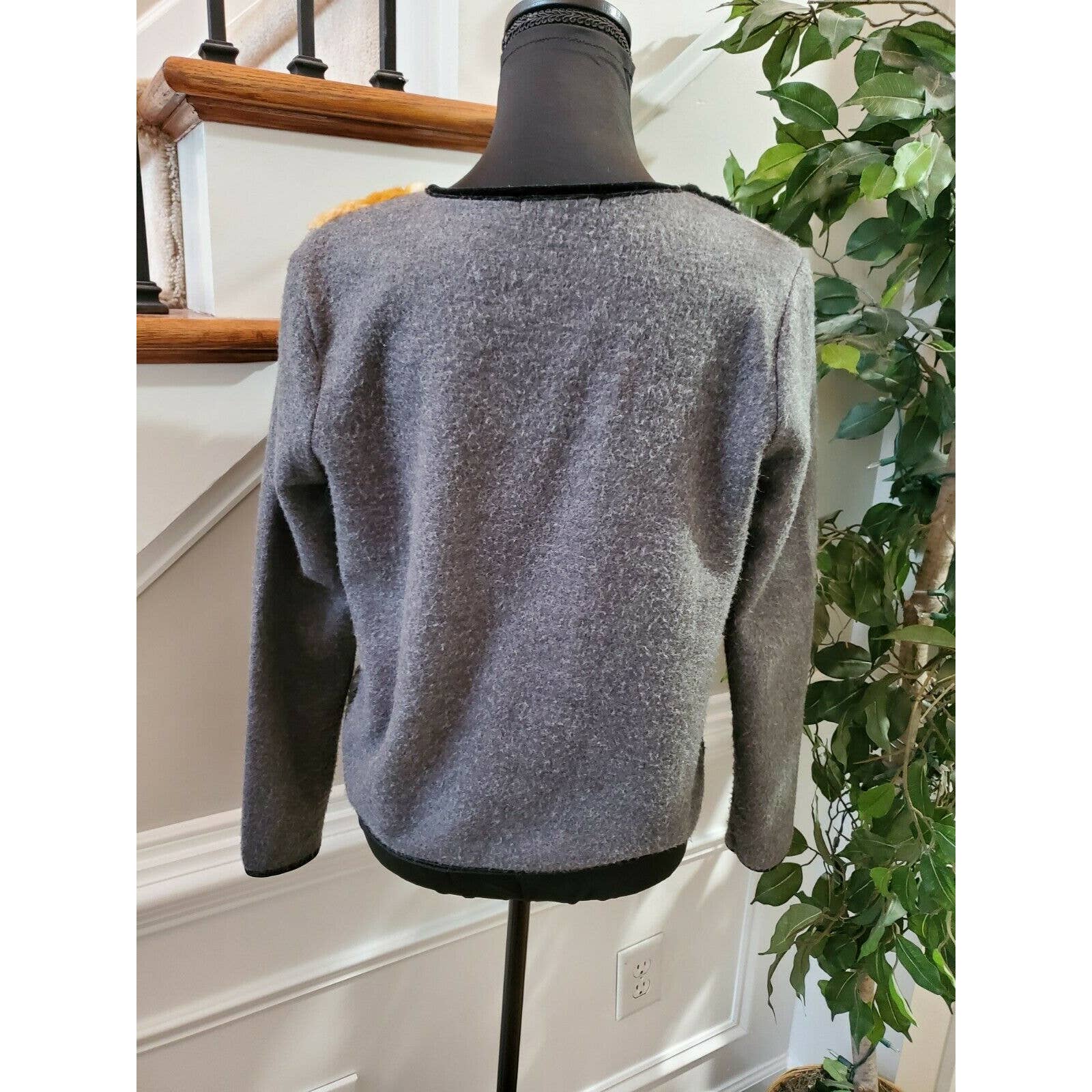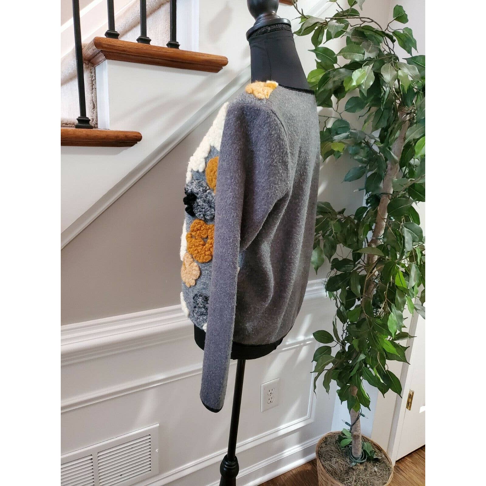 Trisha Tyler Gray Women's Polyester Long Sleeve Crew Neck Cardigans Sweaters PM.