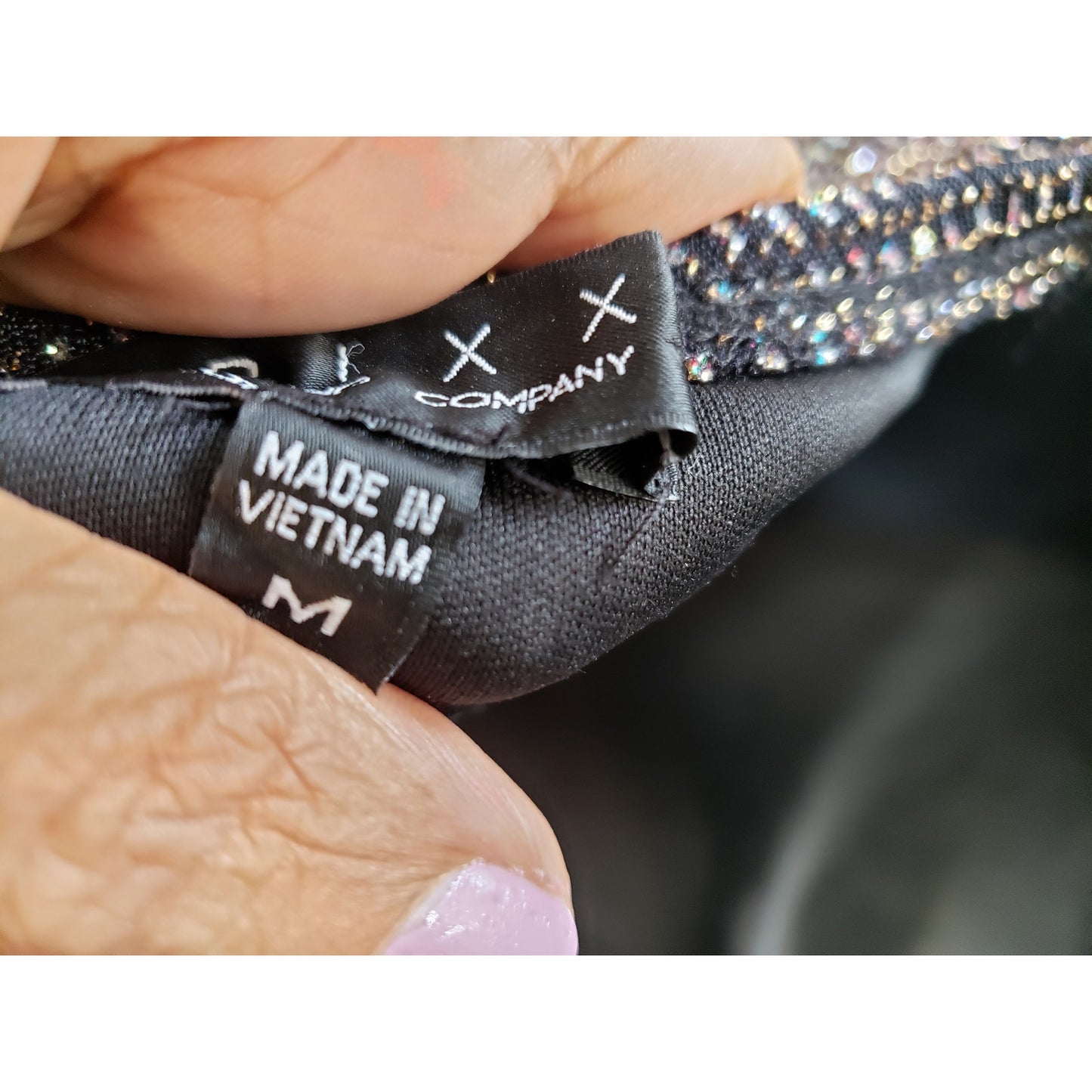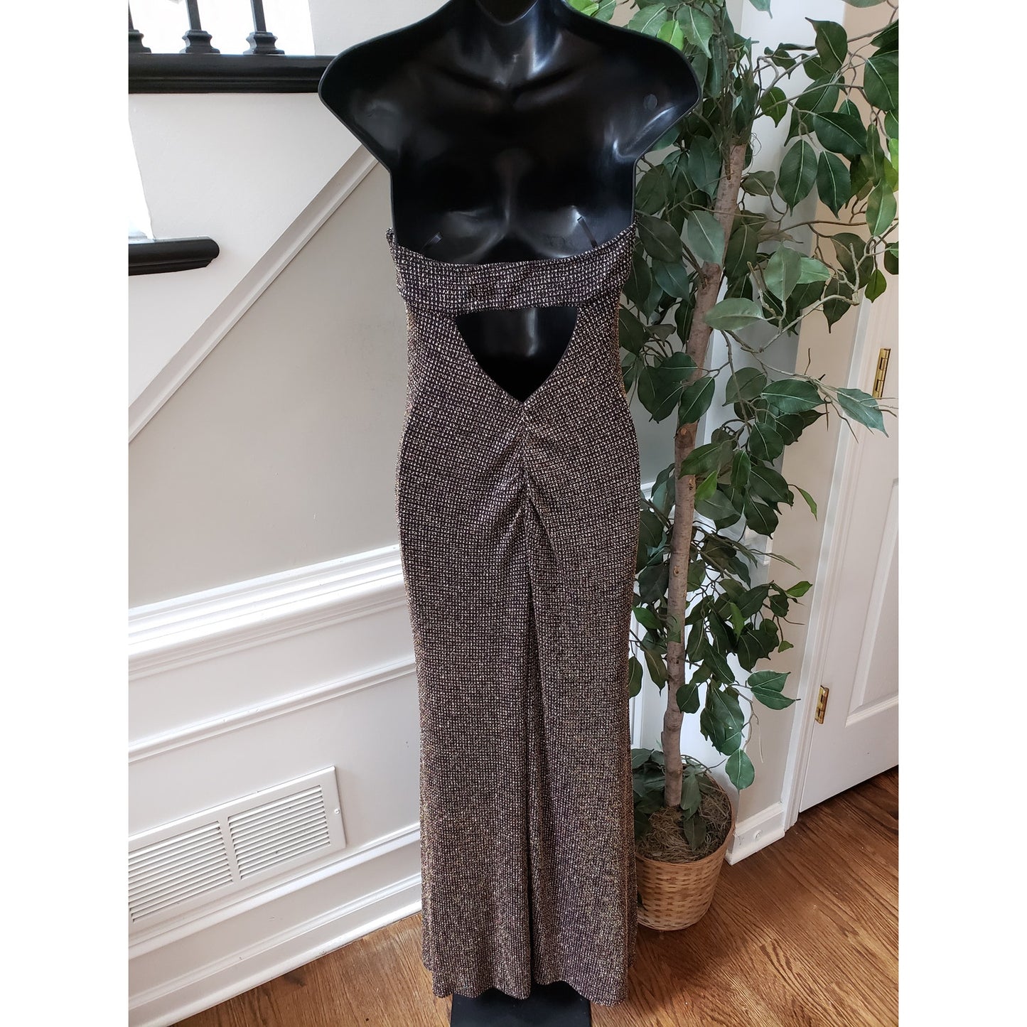 Trixx Long Maxi Dress Womens Size Medium Black Nylon Rhinestone Off The Shoulder