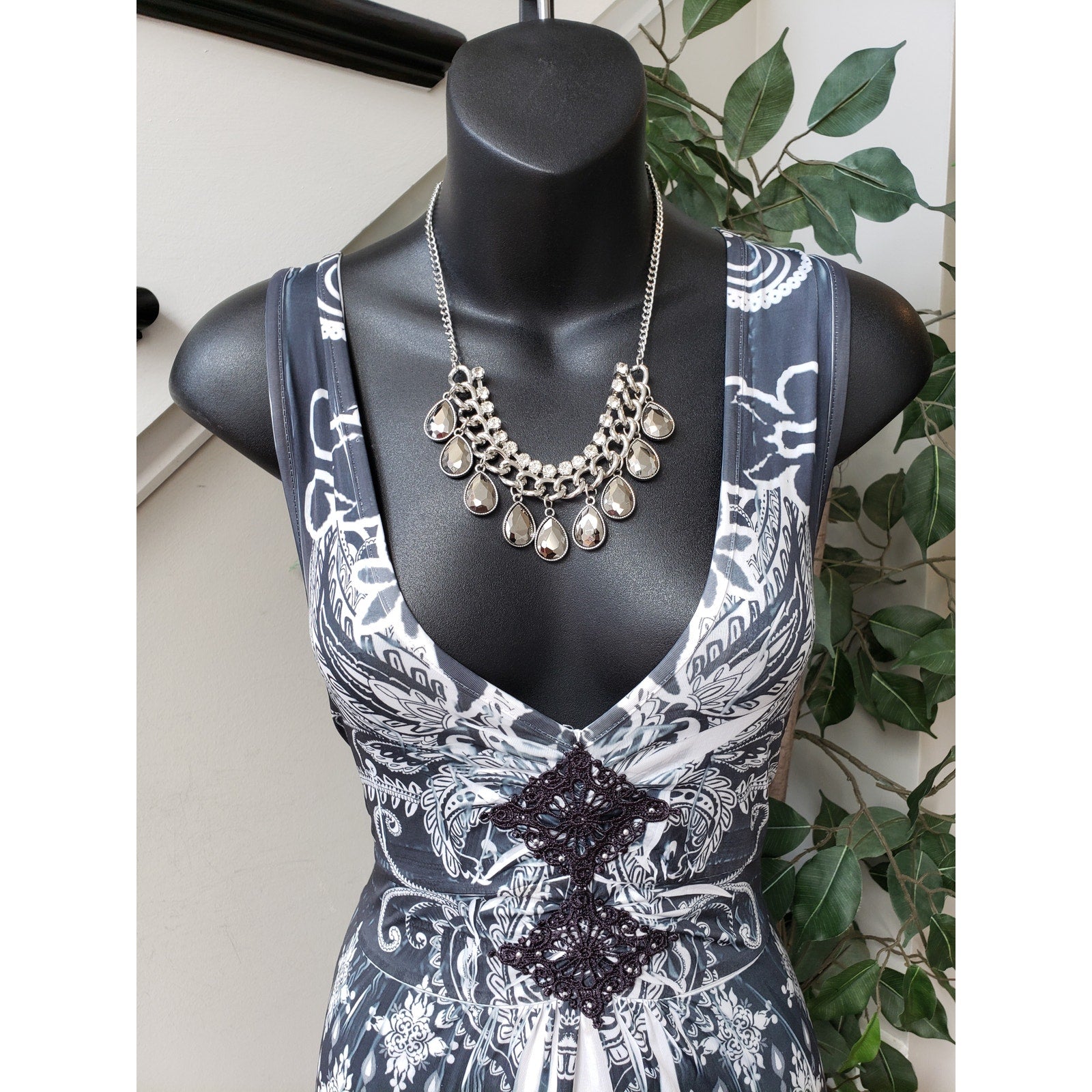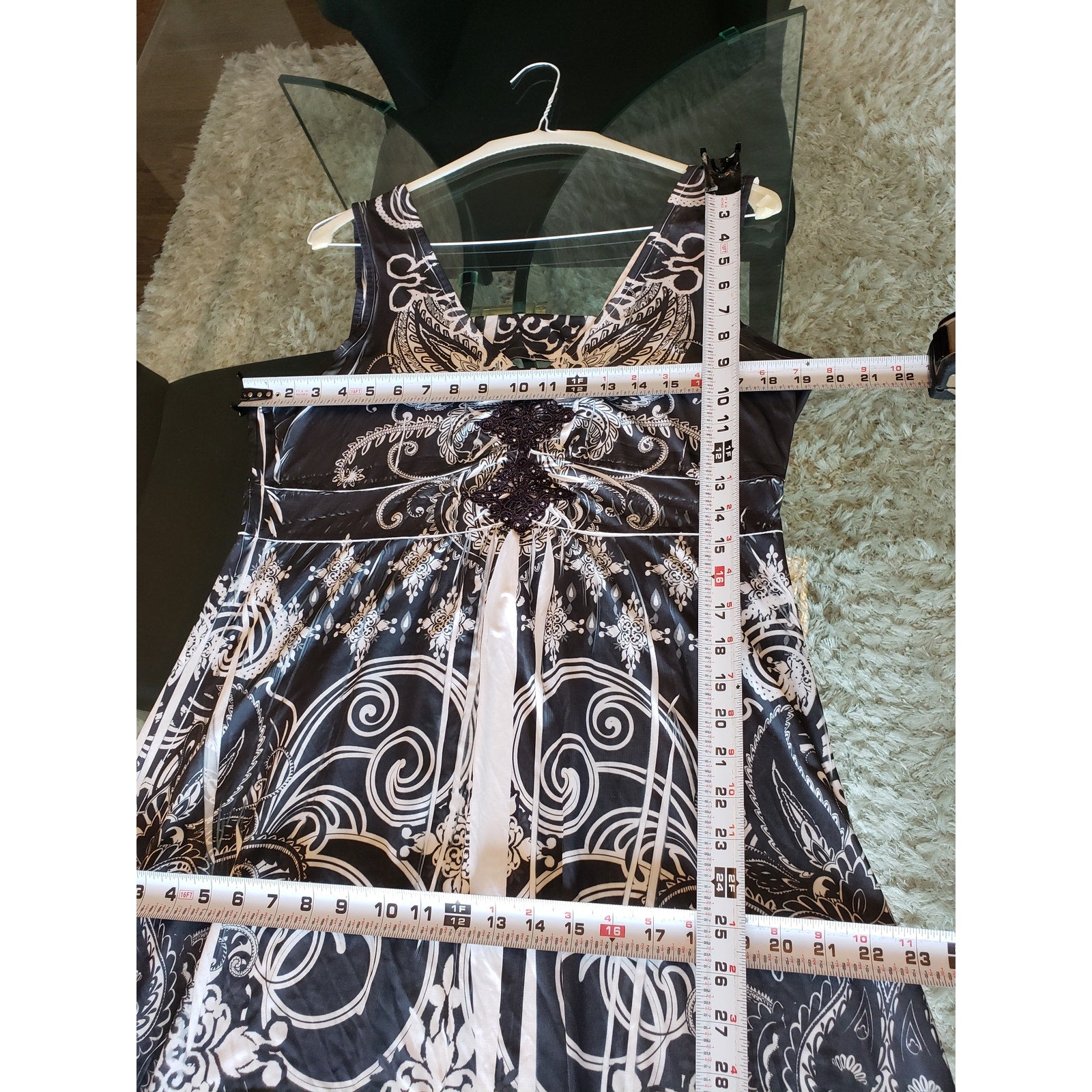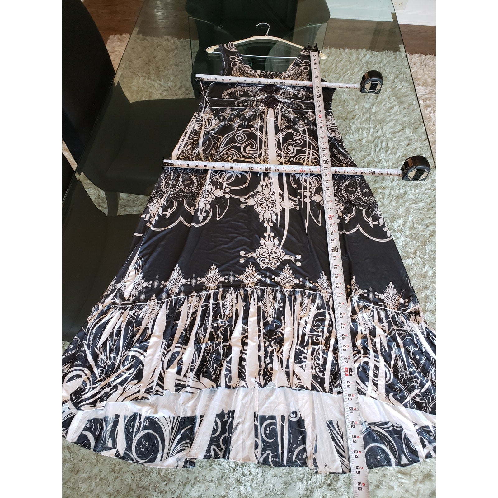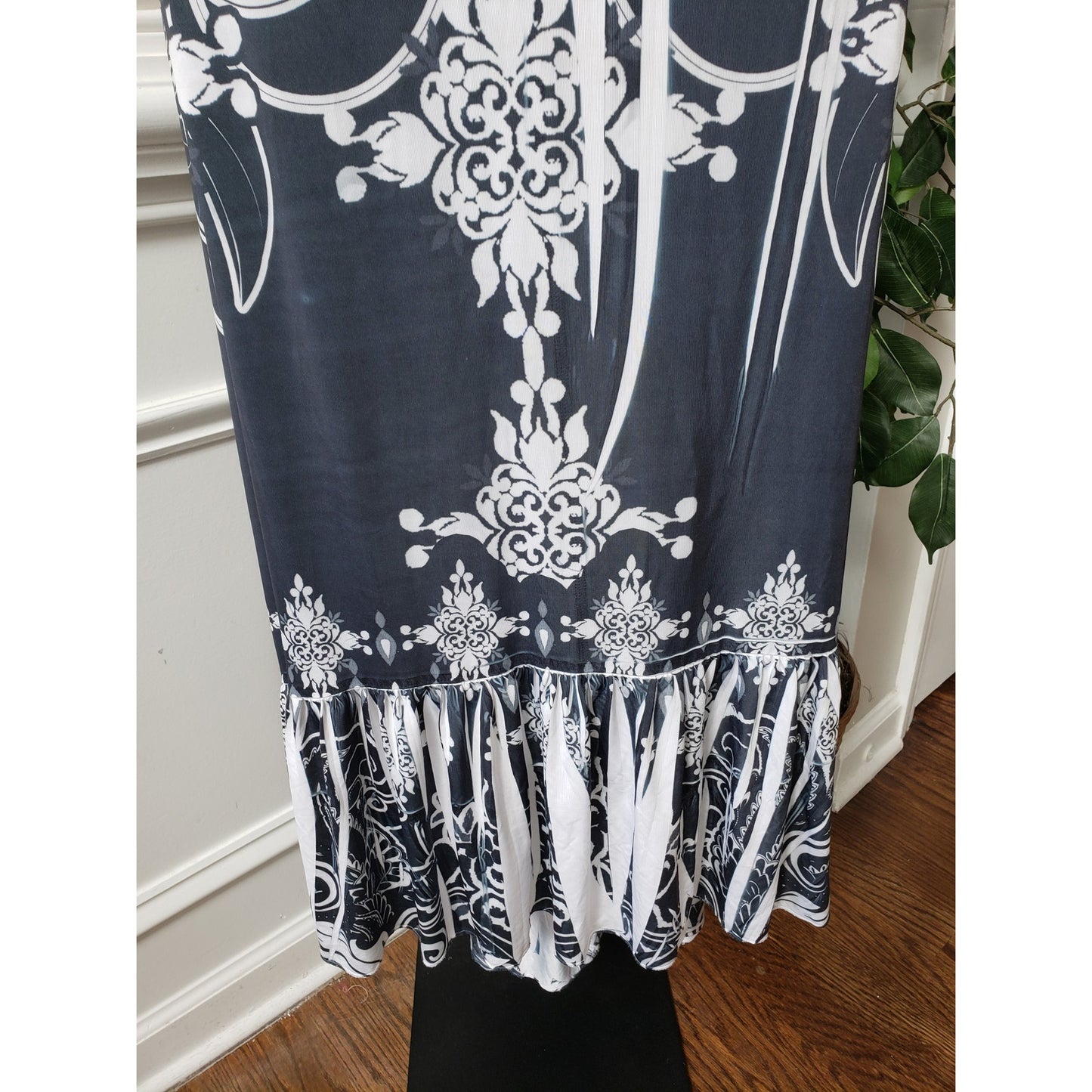 Unity Long Maxi Dress Women's Size XL White & Black Ruffle Scoop Neck Sleeveless