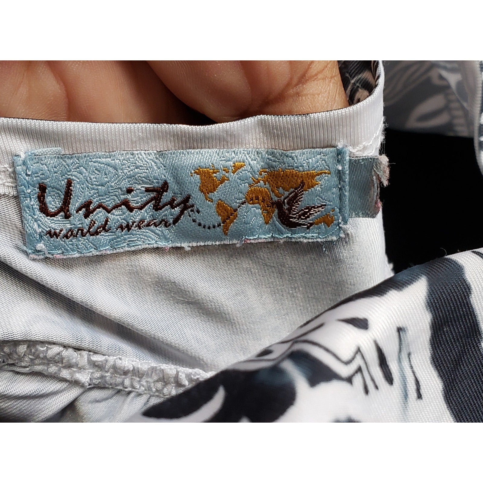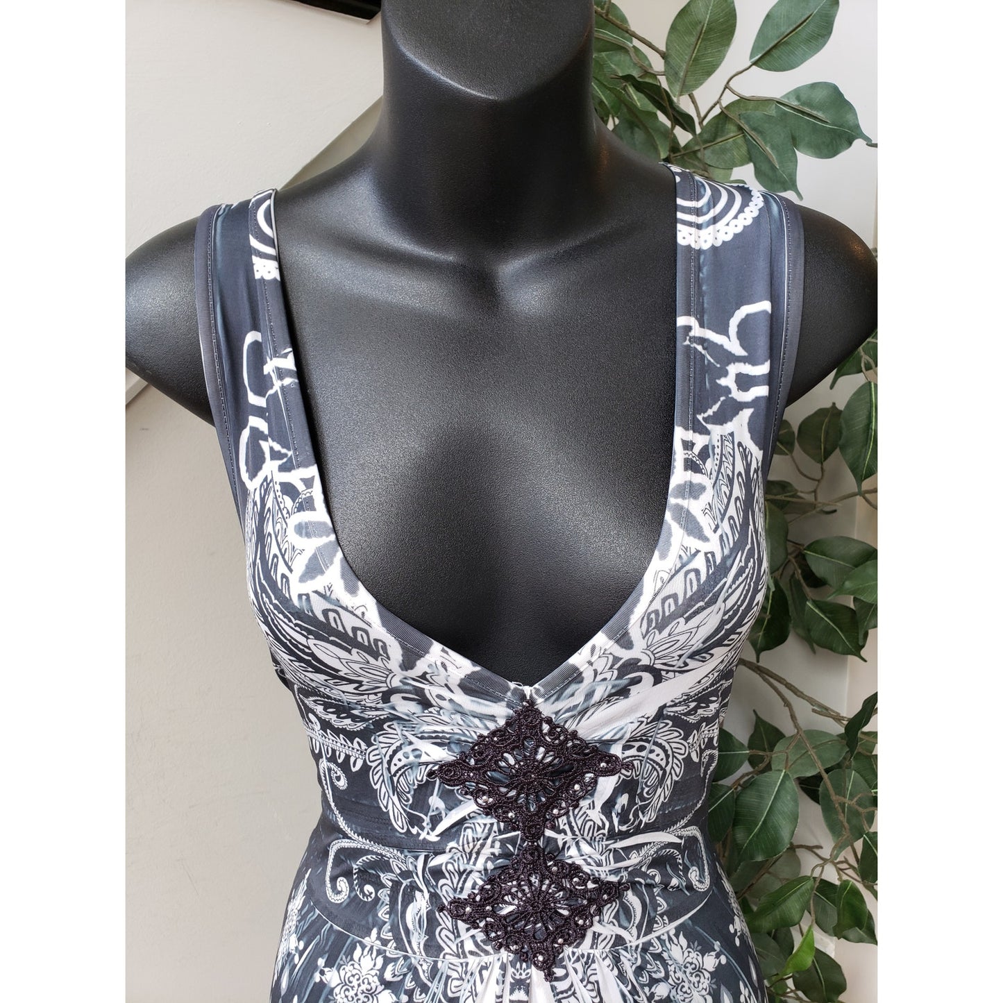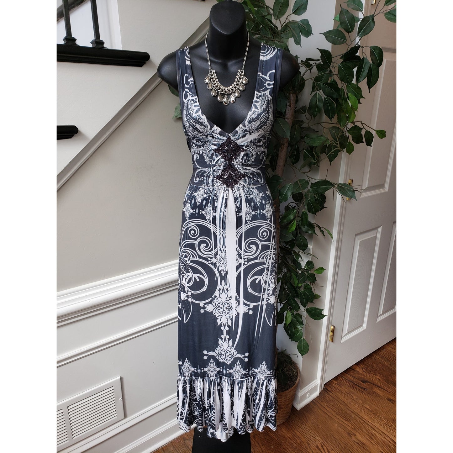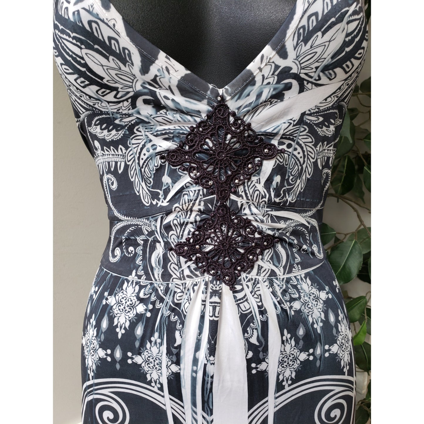 Unity Long Maxi Dress Women's Size XL White & Black Ruffle Scoop Neck Sleeveless