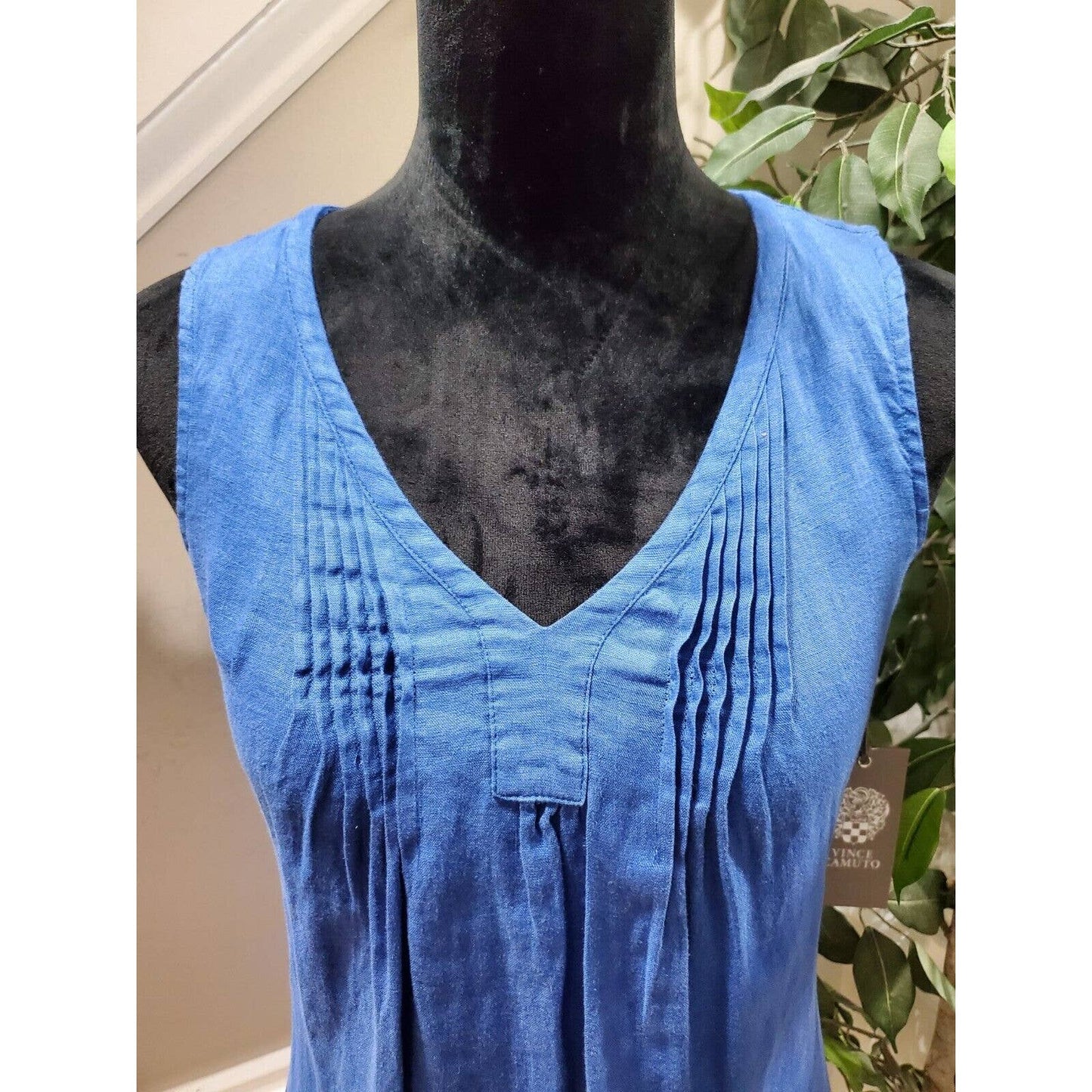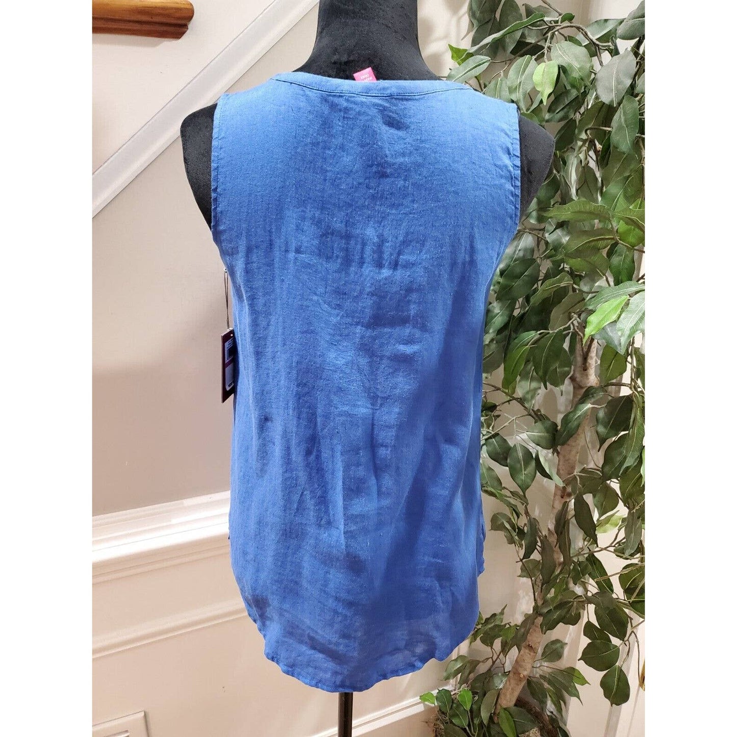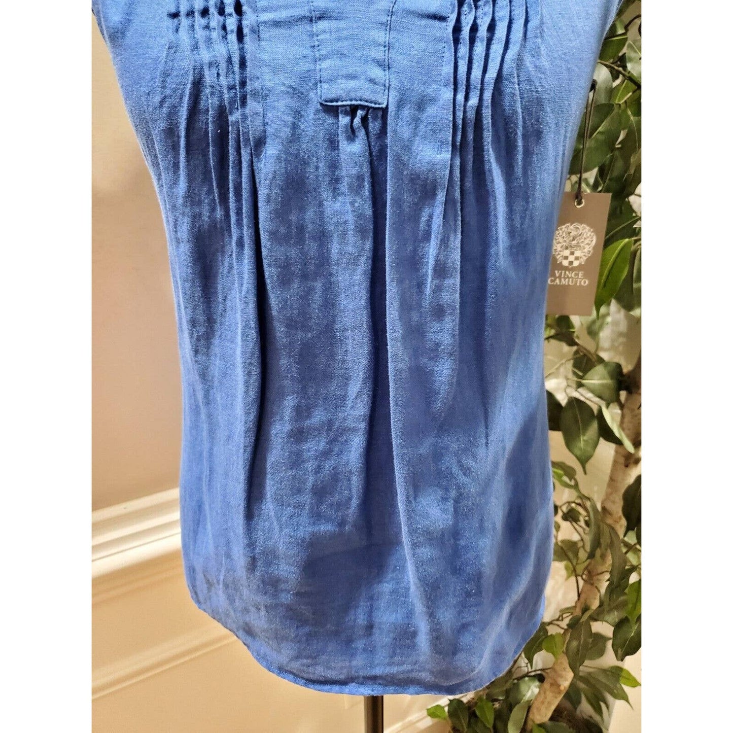 Vince Camuto Women's Blue 100% Linen V-Neck Sleeveless Casual Pullover Shirt 2XS.