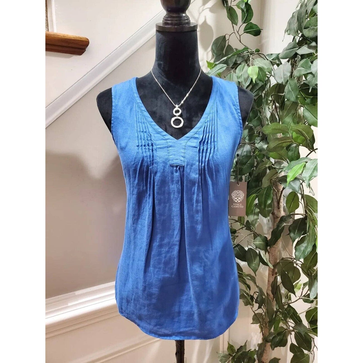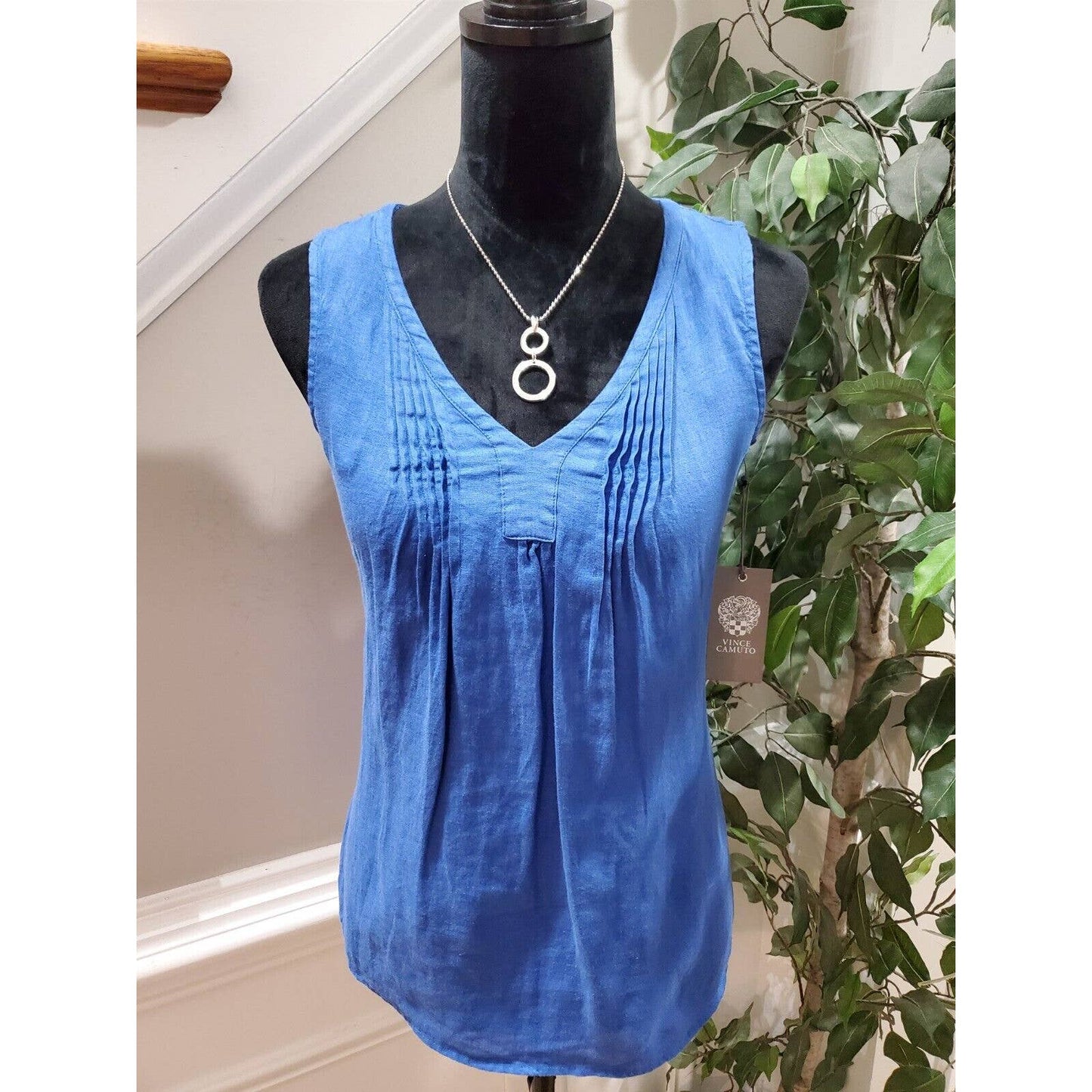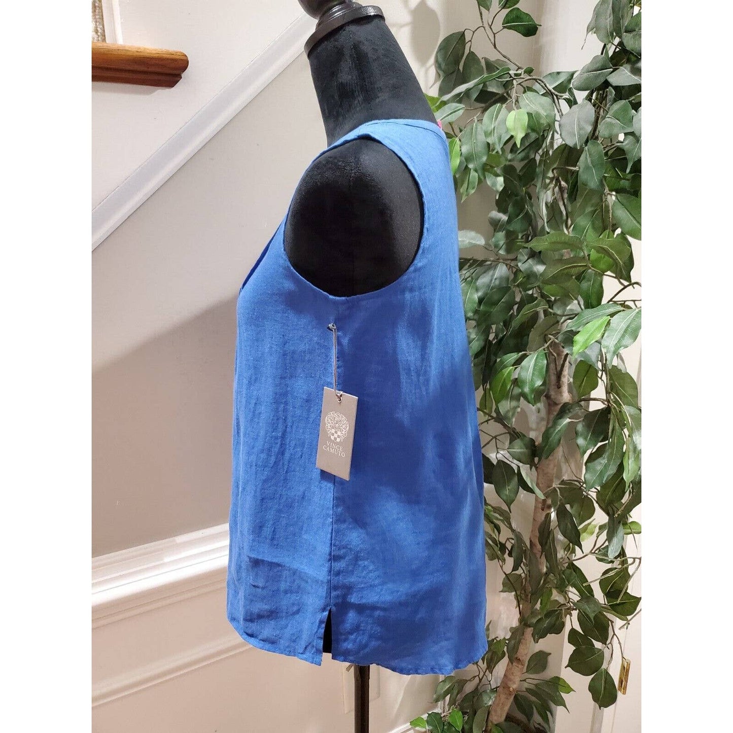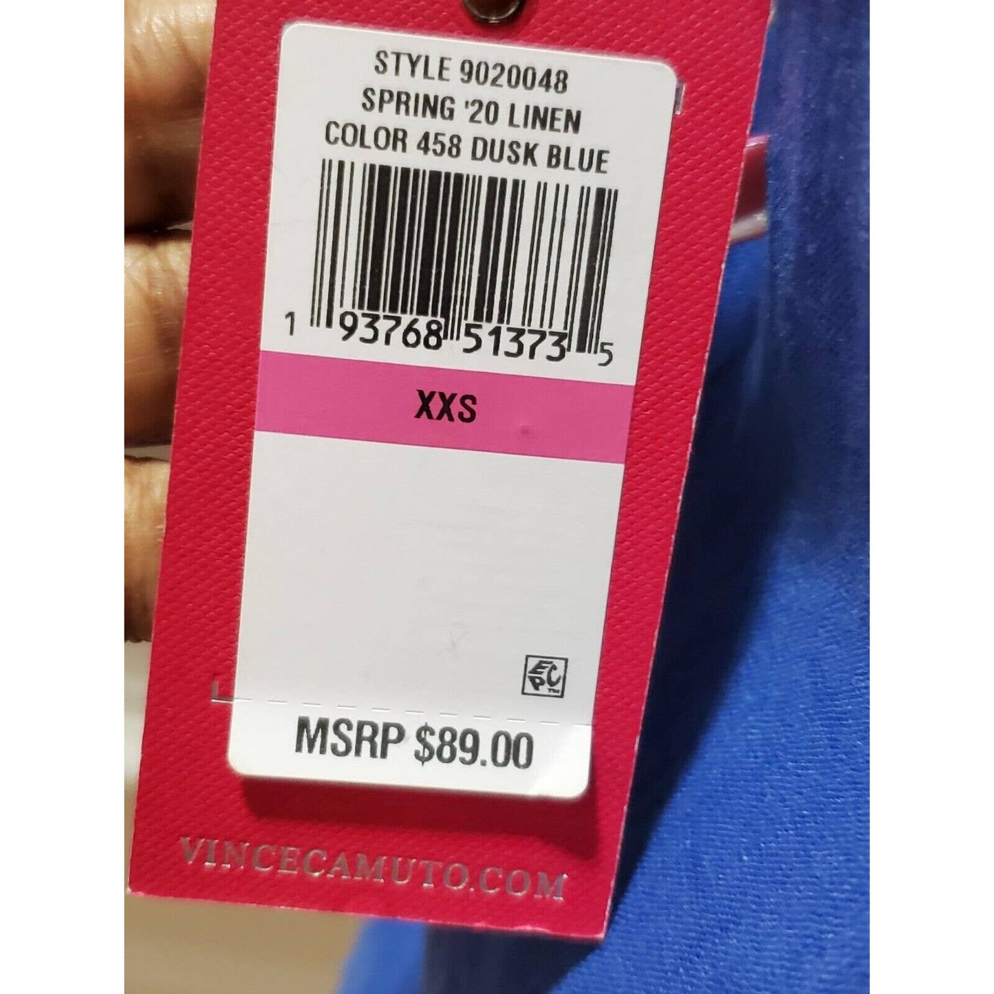 Vince Camuto Women's Blue 100% Linen V-Neck Sleeveless Casual Pullover Shirt 2XS.