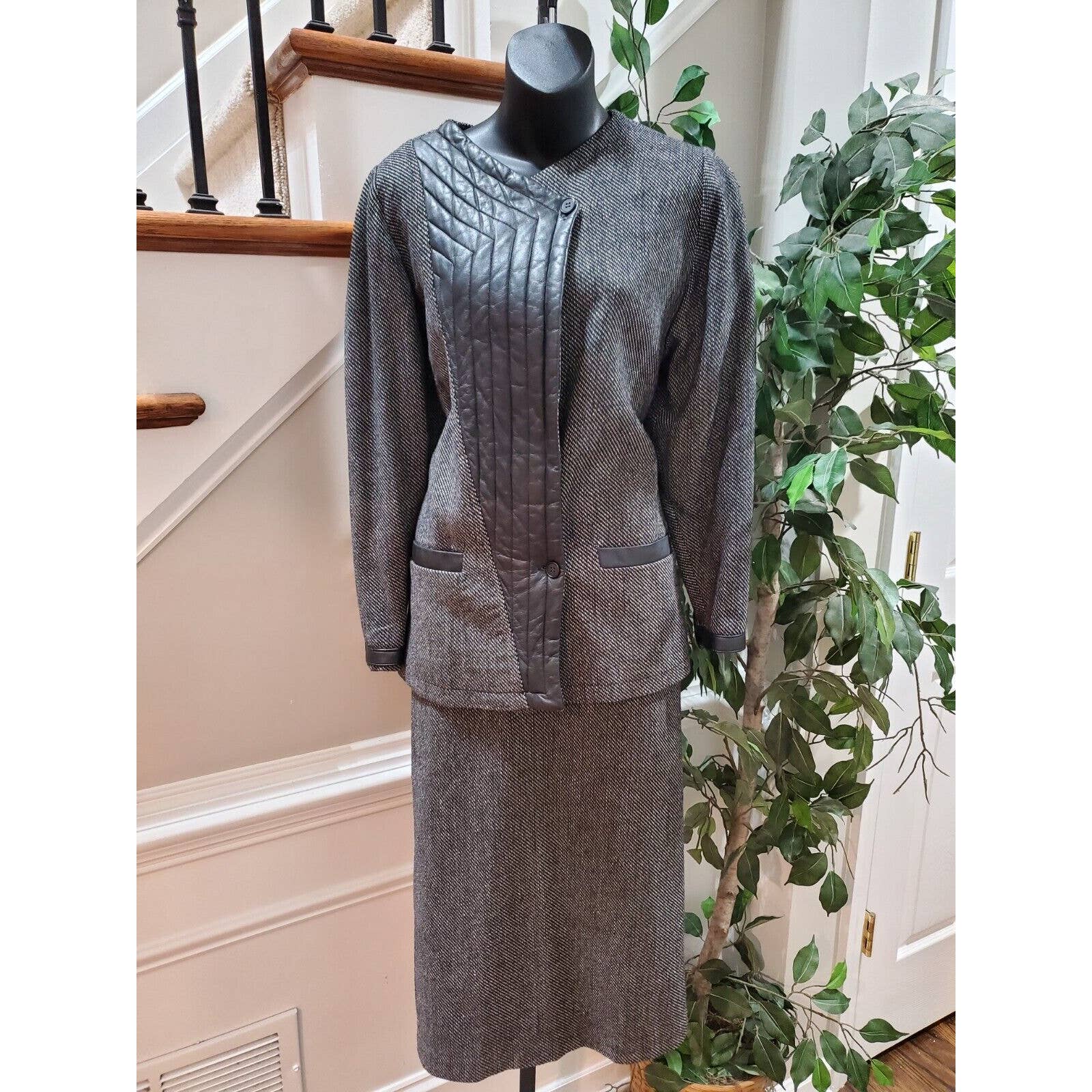 Vintage N N A Collection Women's Gray Wool Single Breasted Blazer & Skirt 2 Pc's Suit.