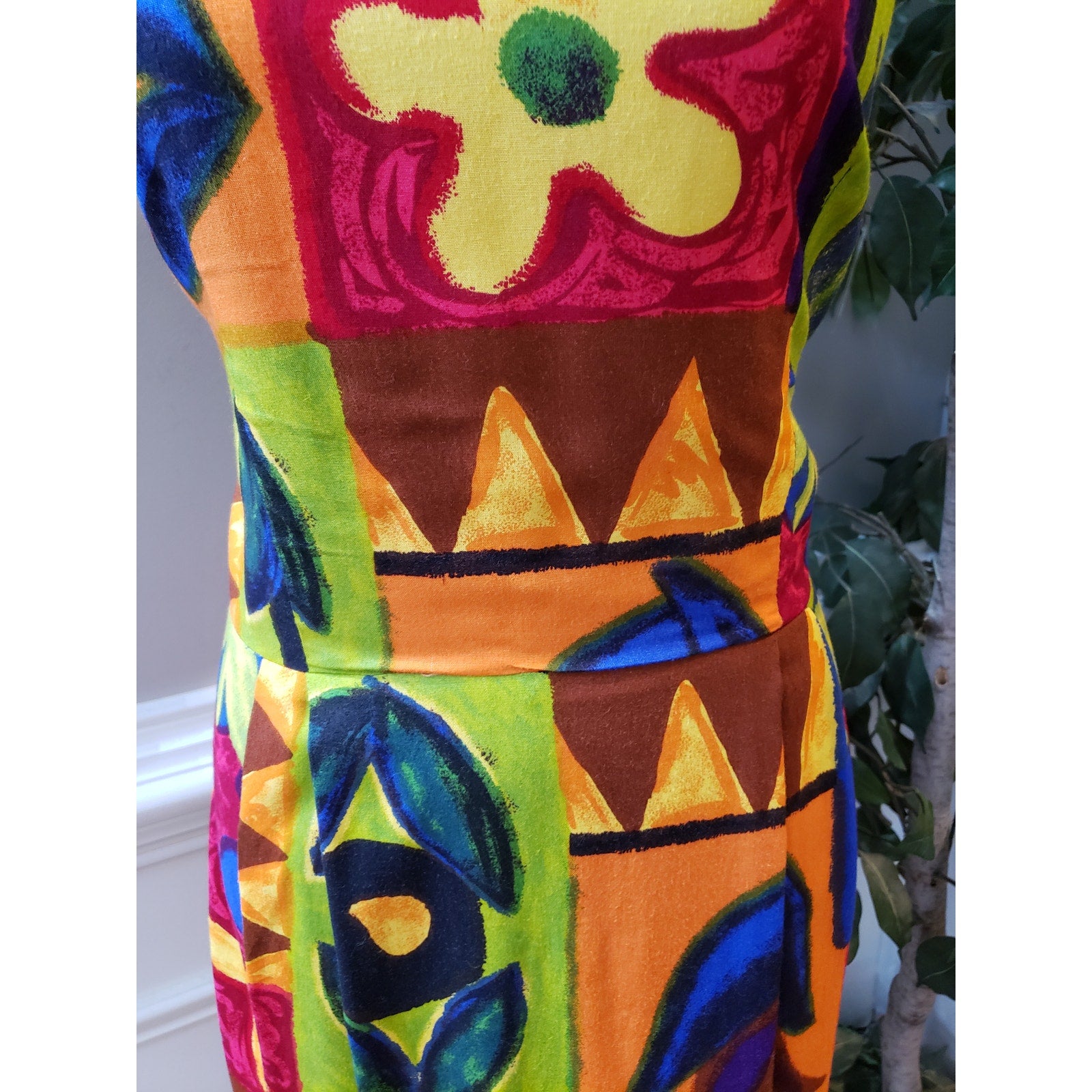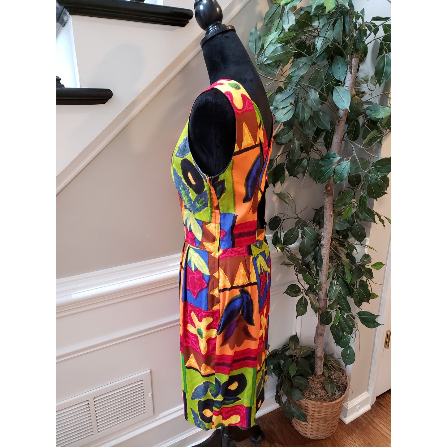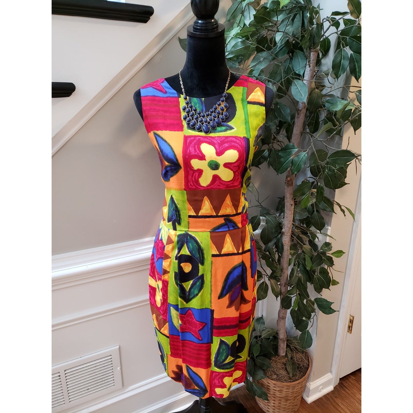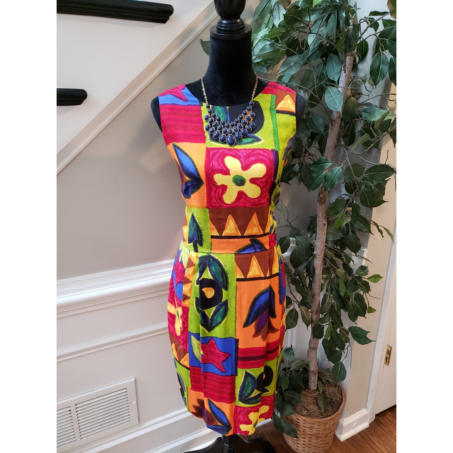 Vintage Positive Attitude Sheath Dress 11/12 Multi Patchwork Print Round Neck