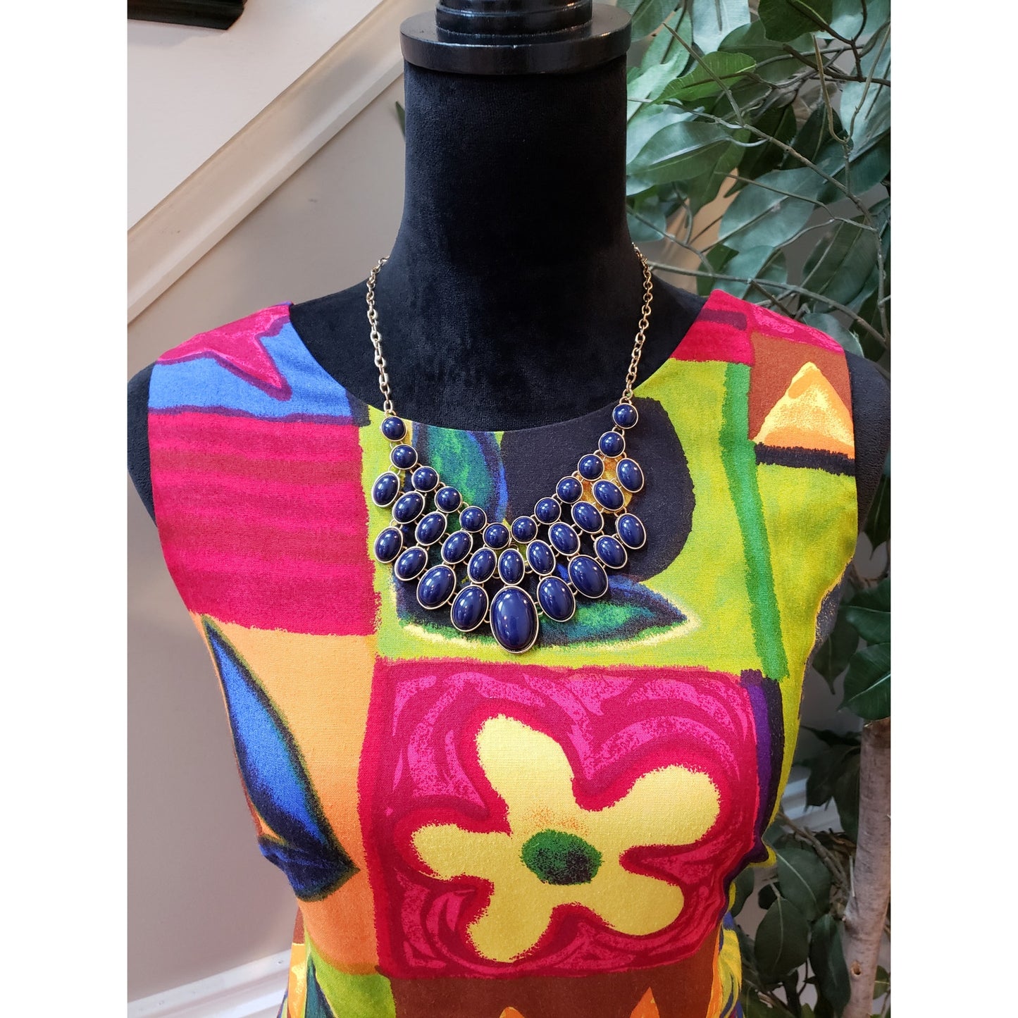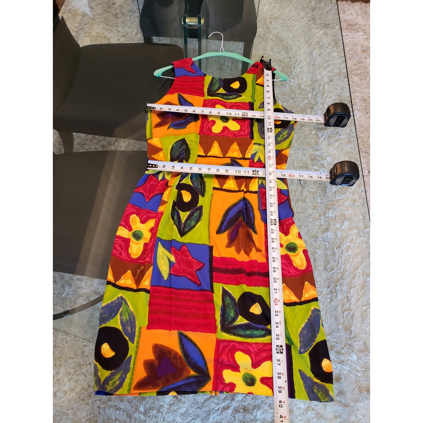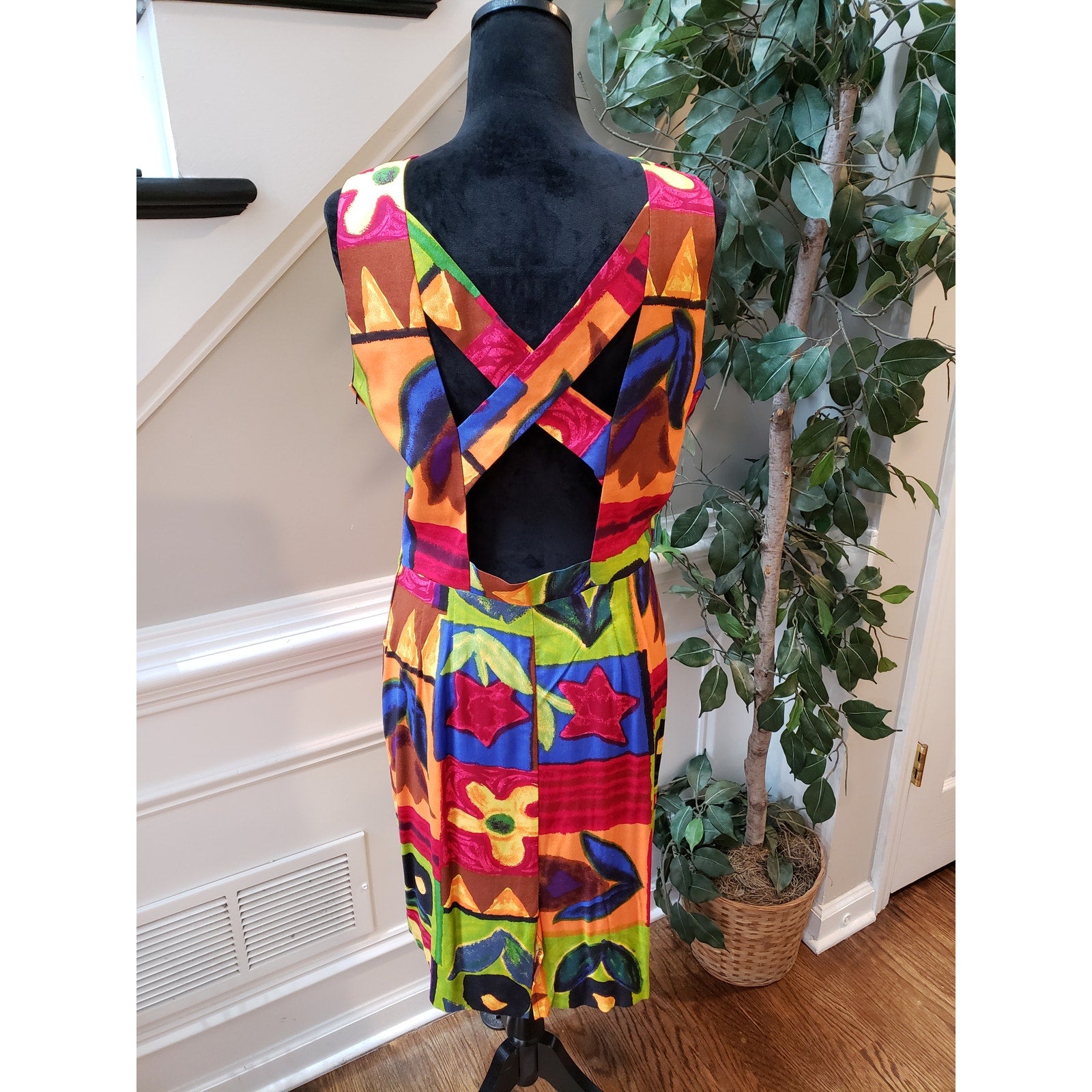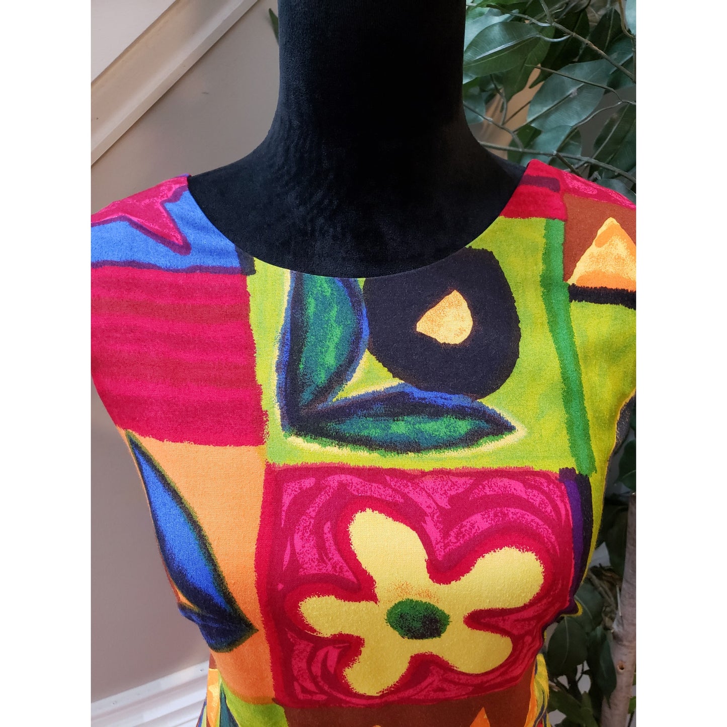 Vintage Positive Attitude Sheath Dress 11/12 Multi Patchwork Print Round Neck