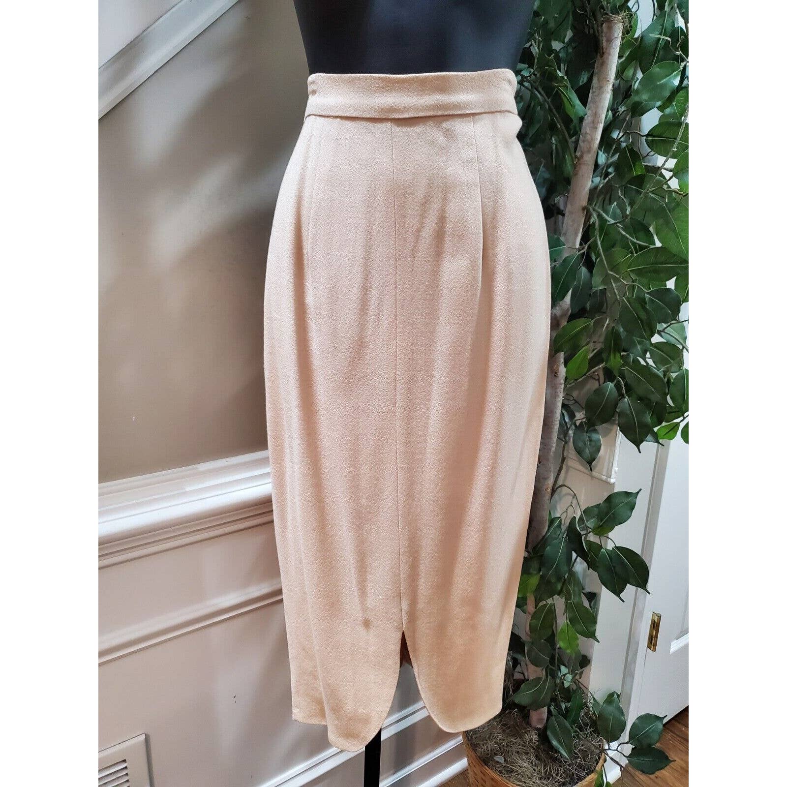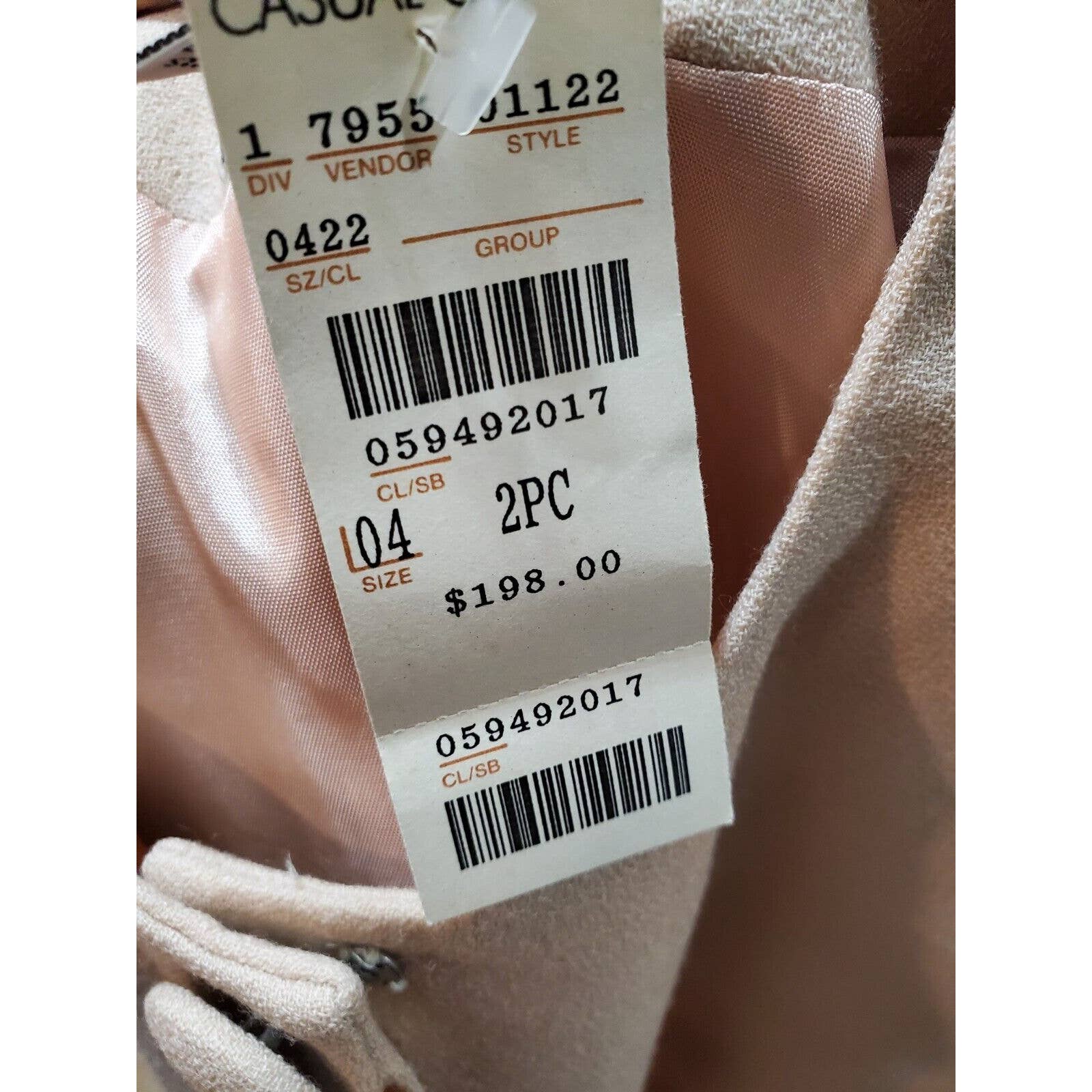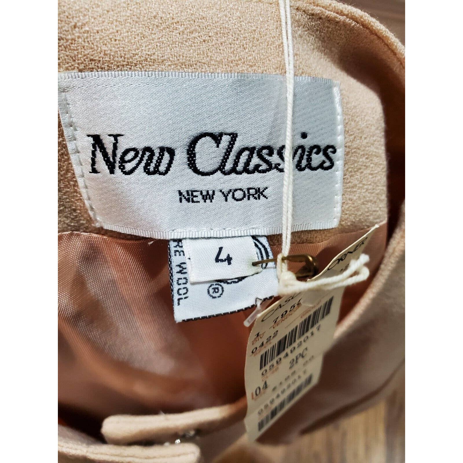 Vintage New Classics Women Beige Wool Single Breasted Blazer & Skirt 2 Pc's Suit Size 4.