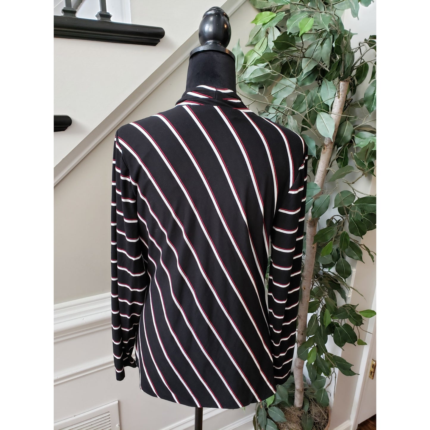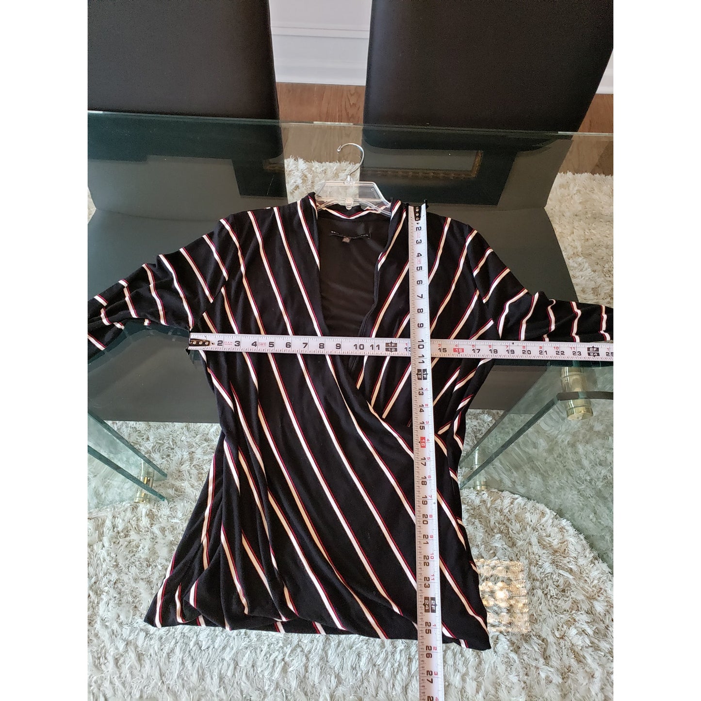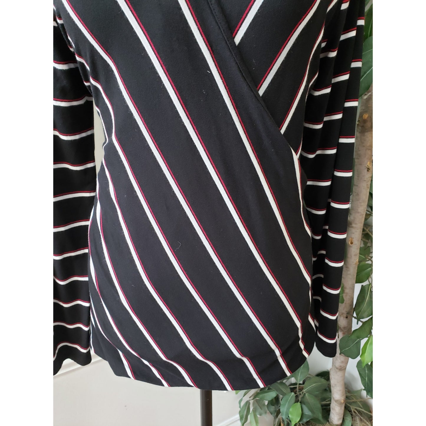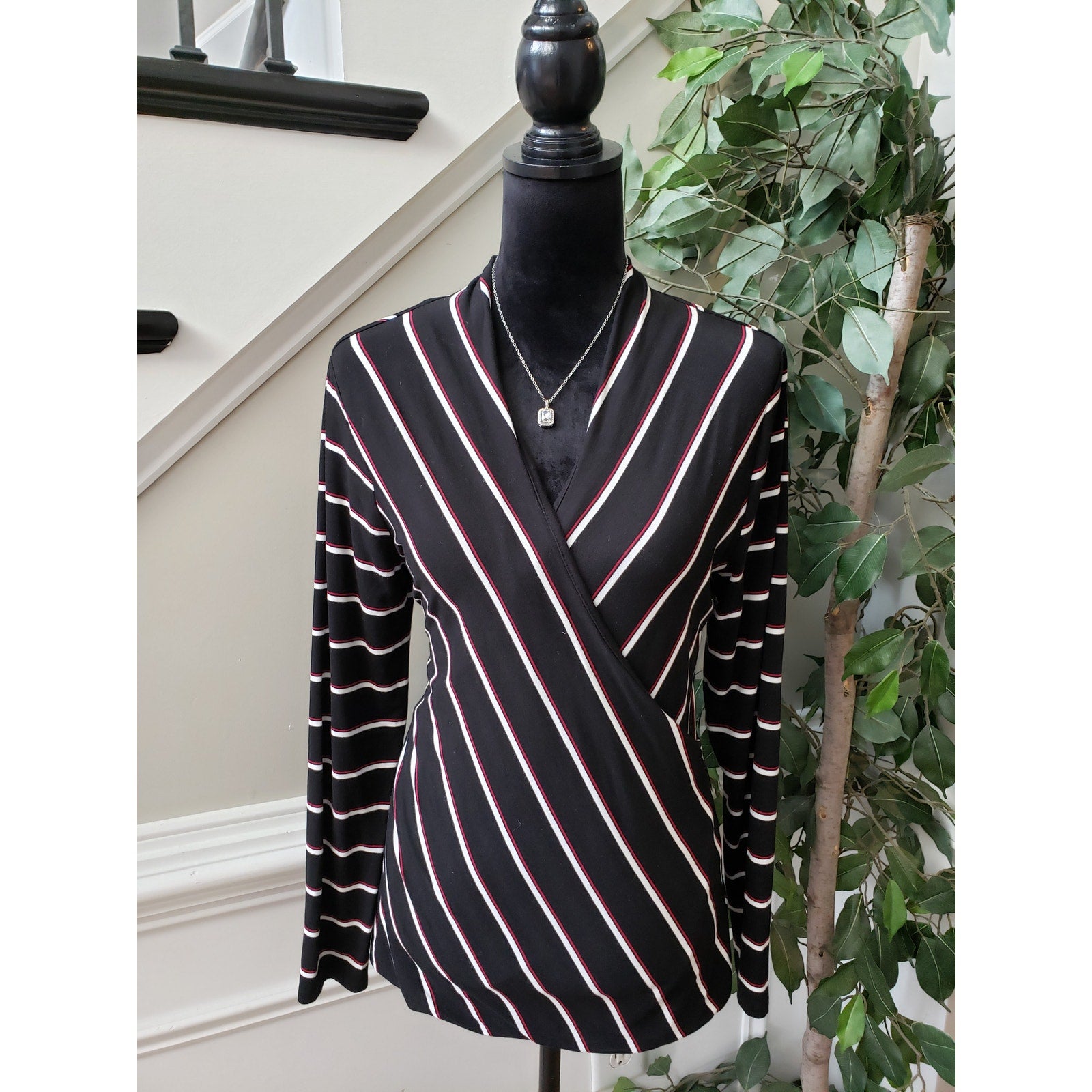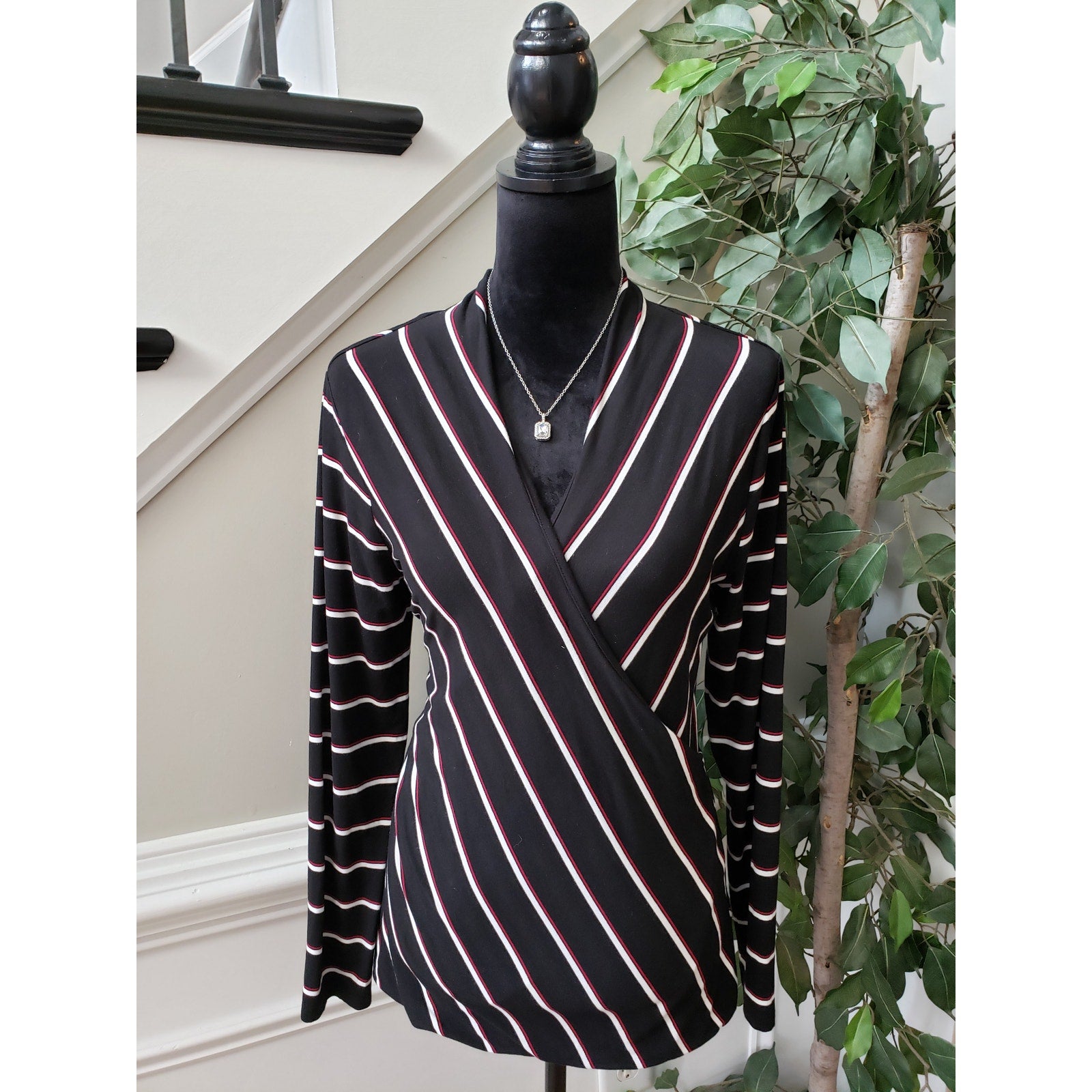 White House Black Market Blouse Top Womens Medium Black Striped Surplice Neck