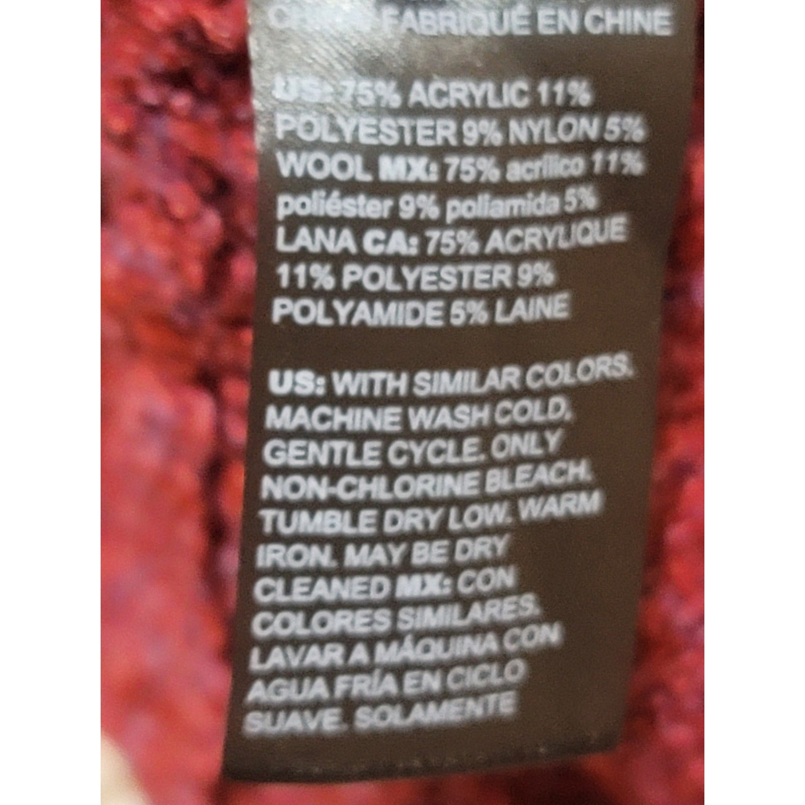 Material: 75% Acrylic, 11% Polyester, 9% Nylon, 5% Wool