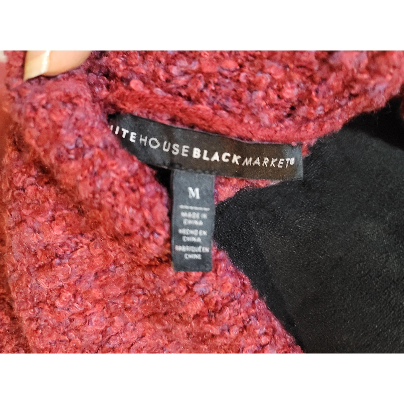 White House Black Market women’s cowl neck sweater in size Medium. Featuring a rich red textured knit, this pullover offers warmth and comfort with its soft acrylic, polyester, nylon, and wool blend. Designed with long sleeves and a relaxed fit, it’s perfect for casual wear, layering, or a chic winter outfit.