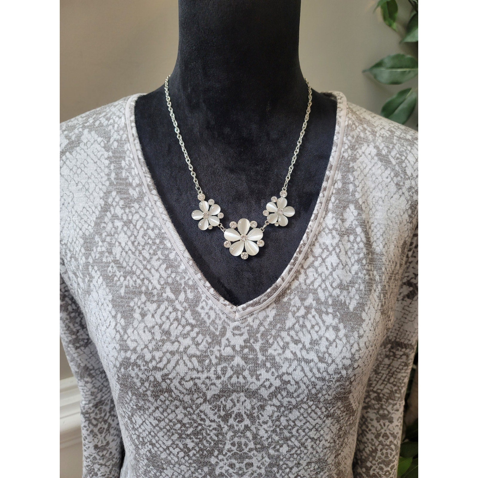 White House Black Market women’s top in size XS. Designed with a striking gray snake print, this stylish long sleeve top offers a flattering V-neckline and a lightweight stretch fabric for comfort and elegance. Perfect for pairing with jeans, skirts, or slacks, it transitions effortlessly from casual wear to evening outings.