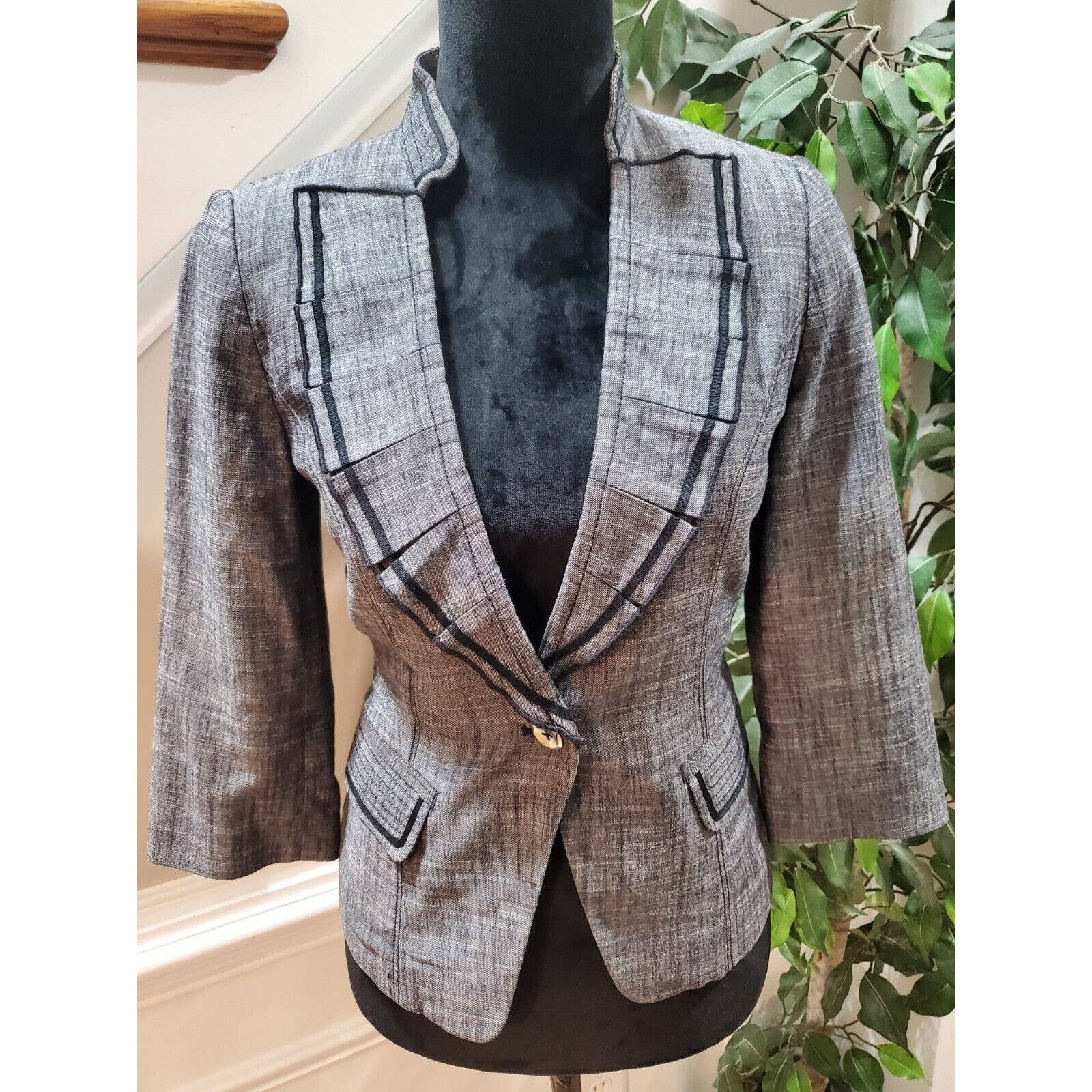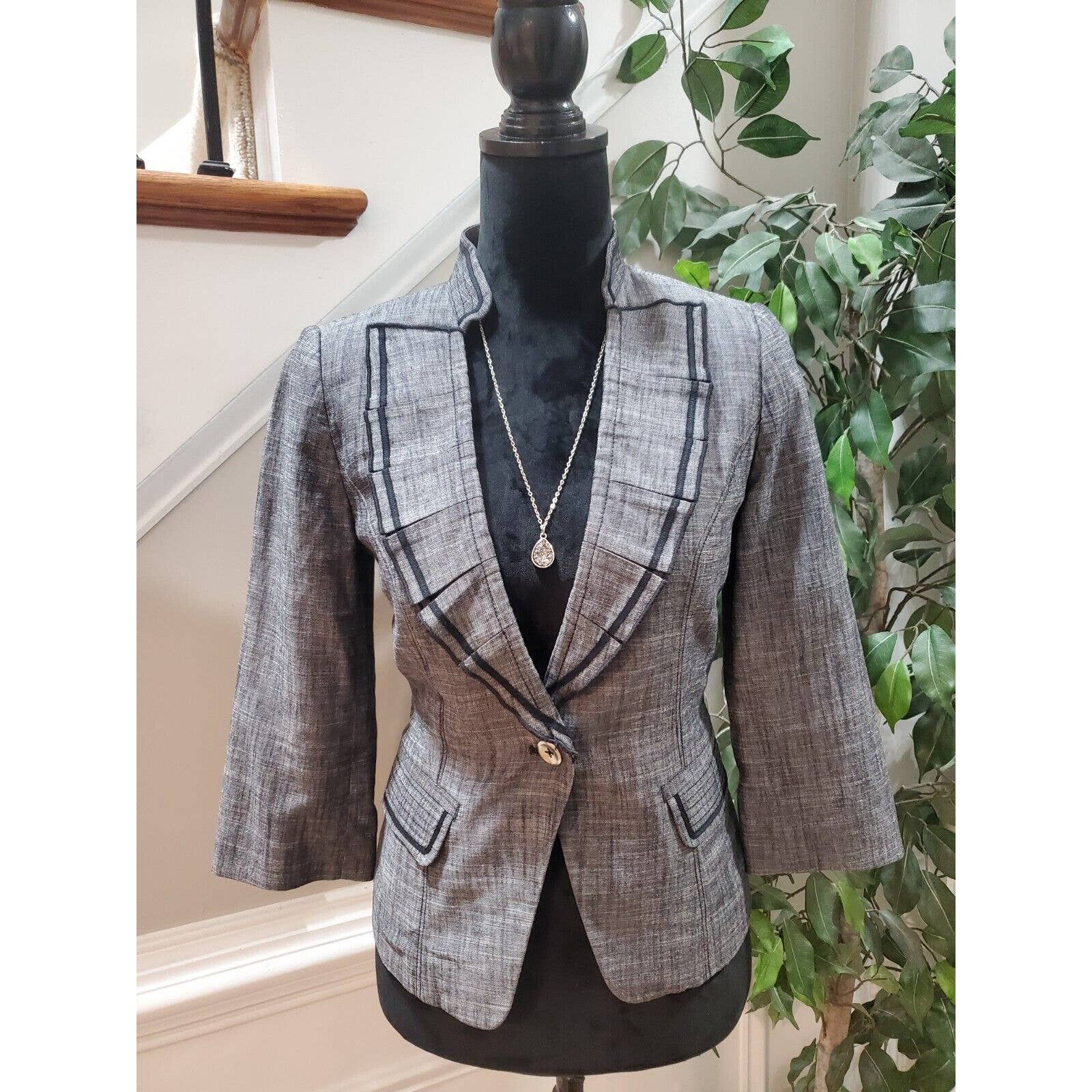 White House Black Market Women Gray Lyocell Long Sleeve Single Front Blazer 2