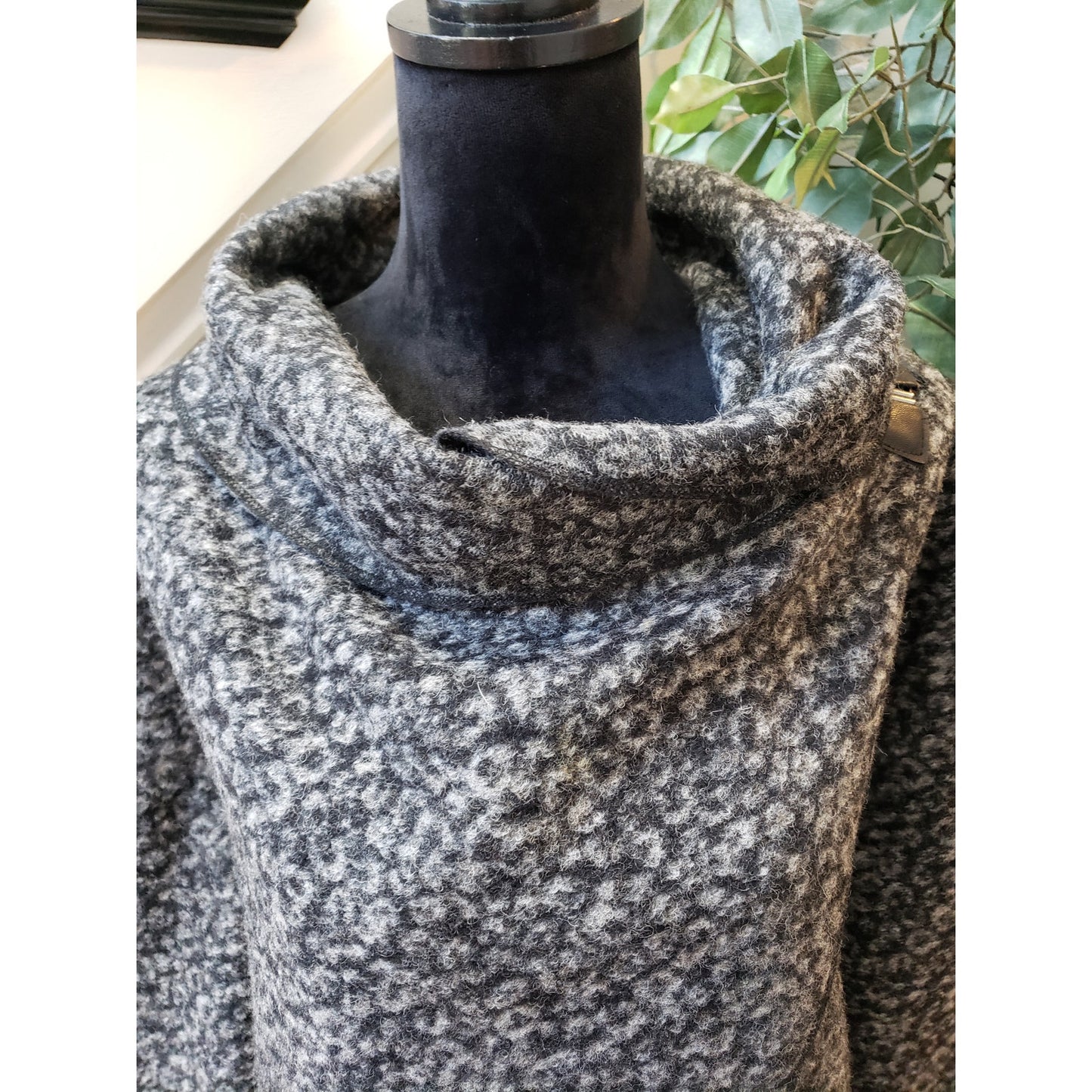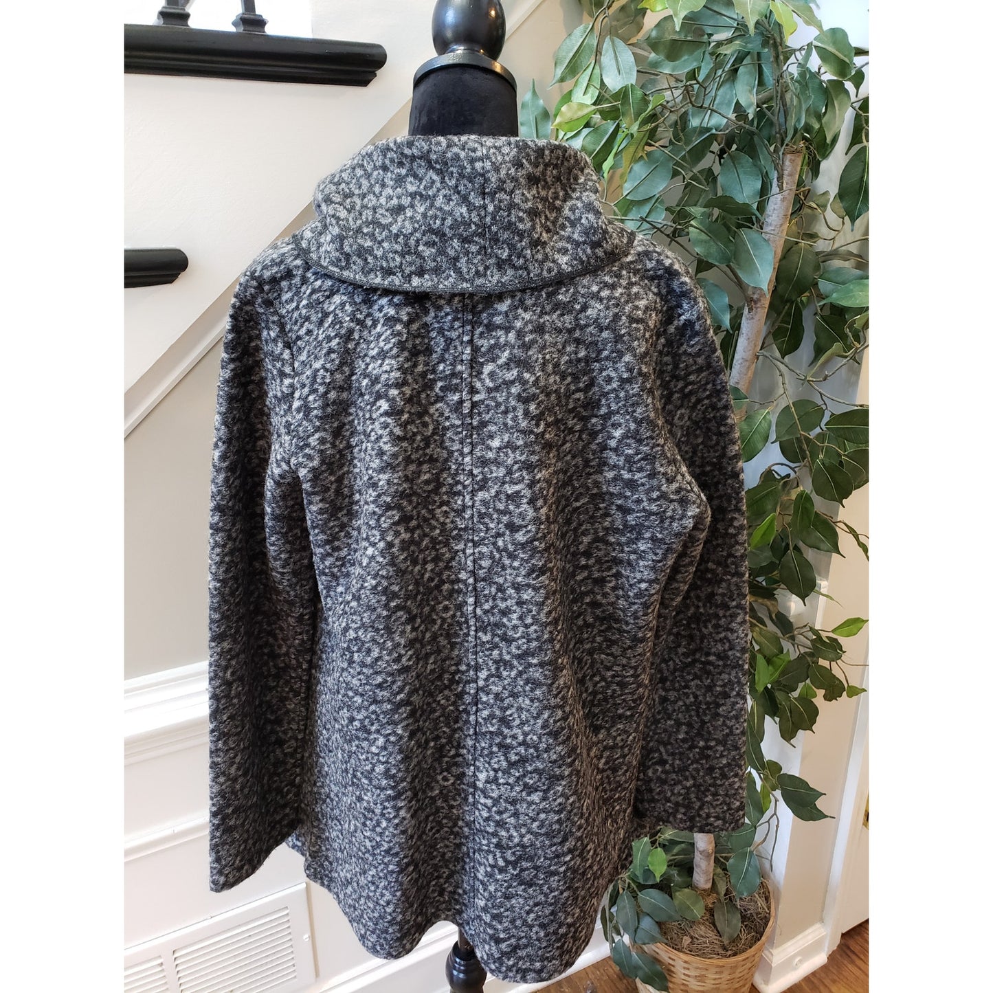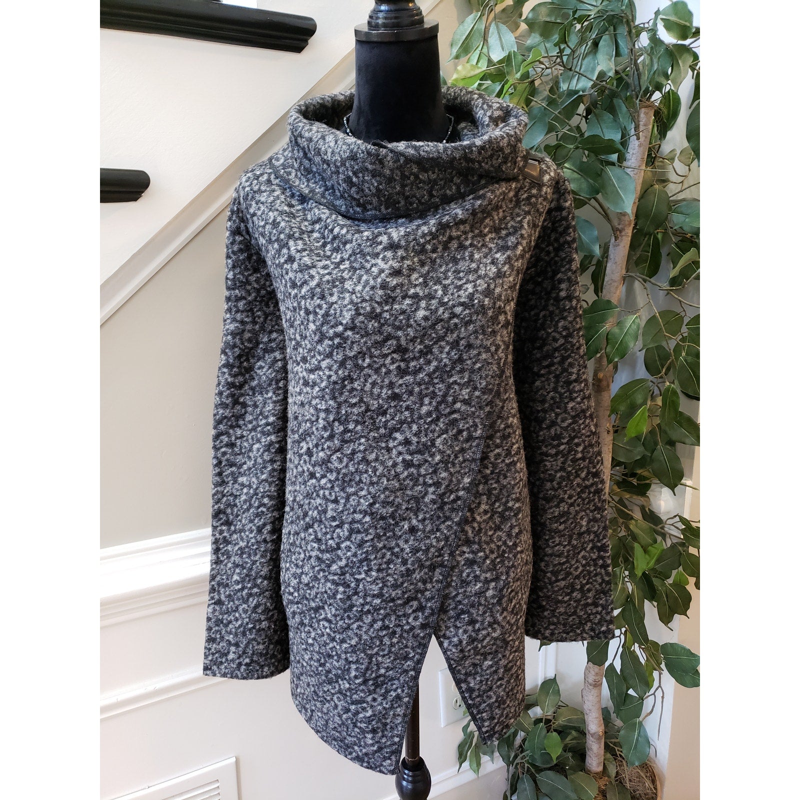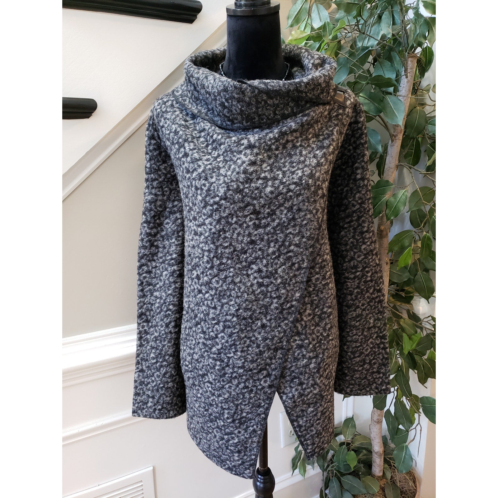 Willi Smith Blazer Jacket Women's Size Large Black Wool Blend Cowl Neck Strap