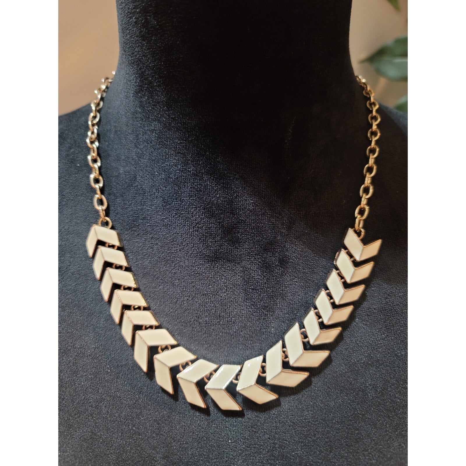 Women Gold Tone Chevron Statement Necklace With Adjustable Chain Elegant Jewelry
