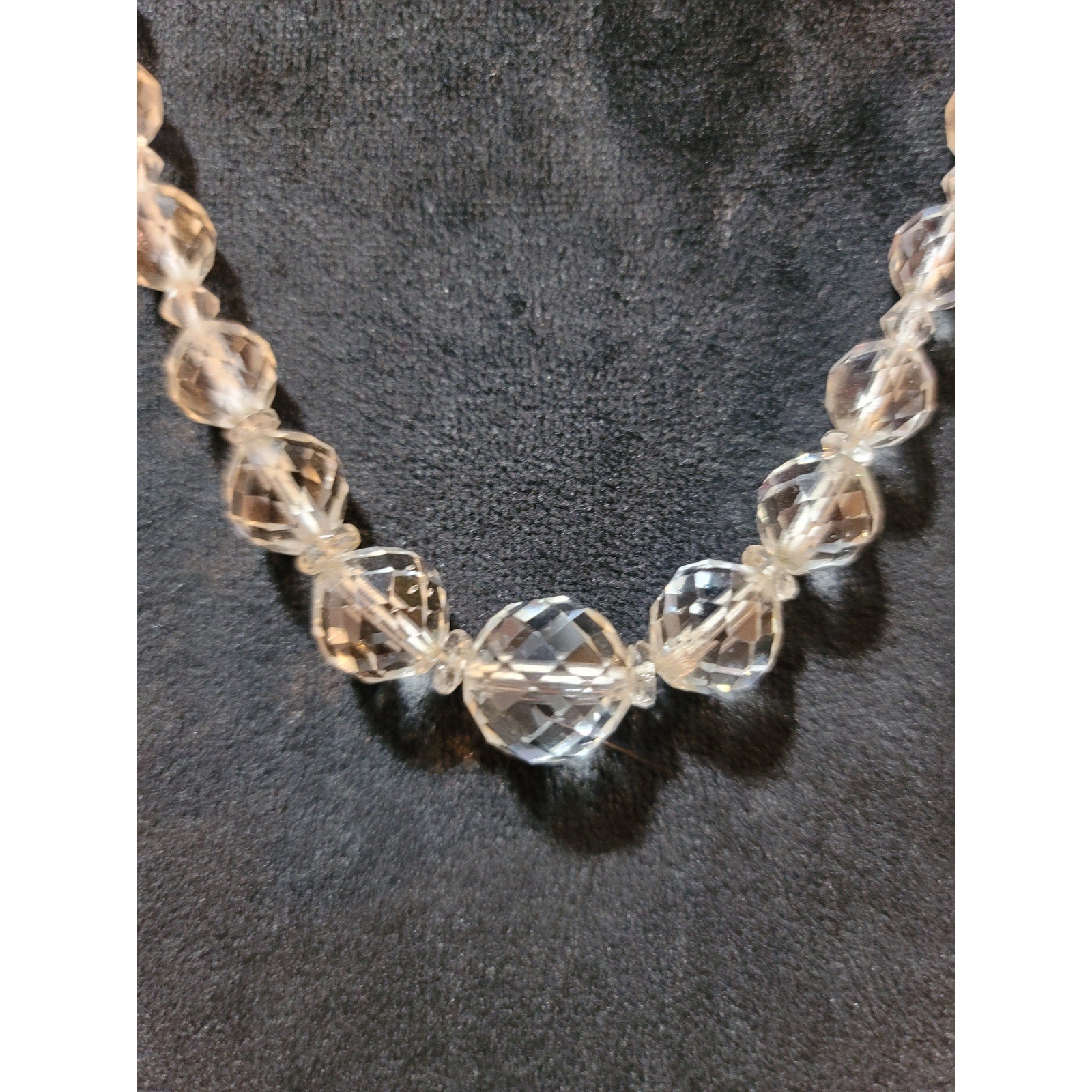 Women's Clear Faceted Bead Necklace With Box Clasp Lock Elegant Vintage Jewelry