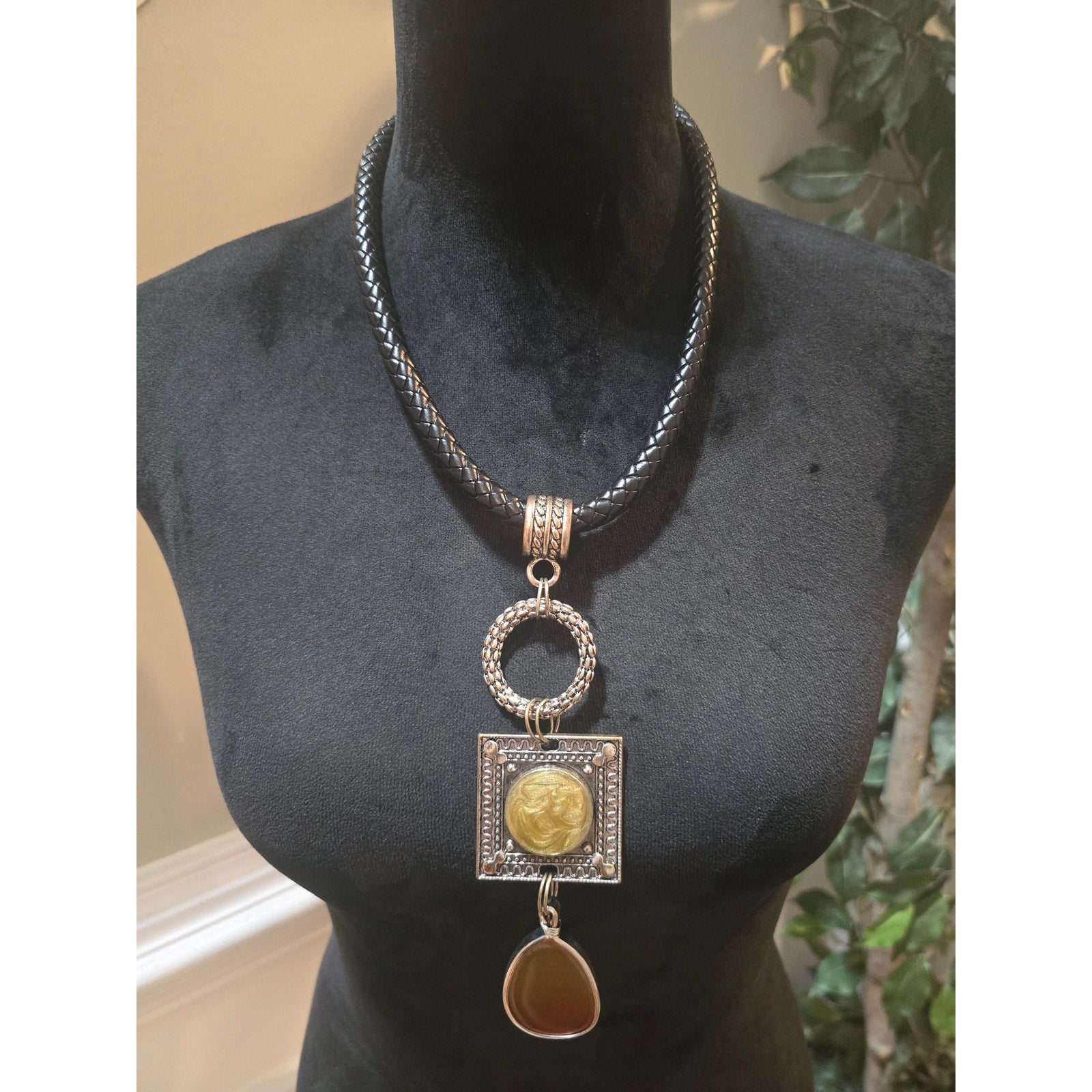 Women's Gold Tone Choker Necklace With Round Pendant Lobster Claw Clasp