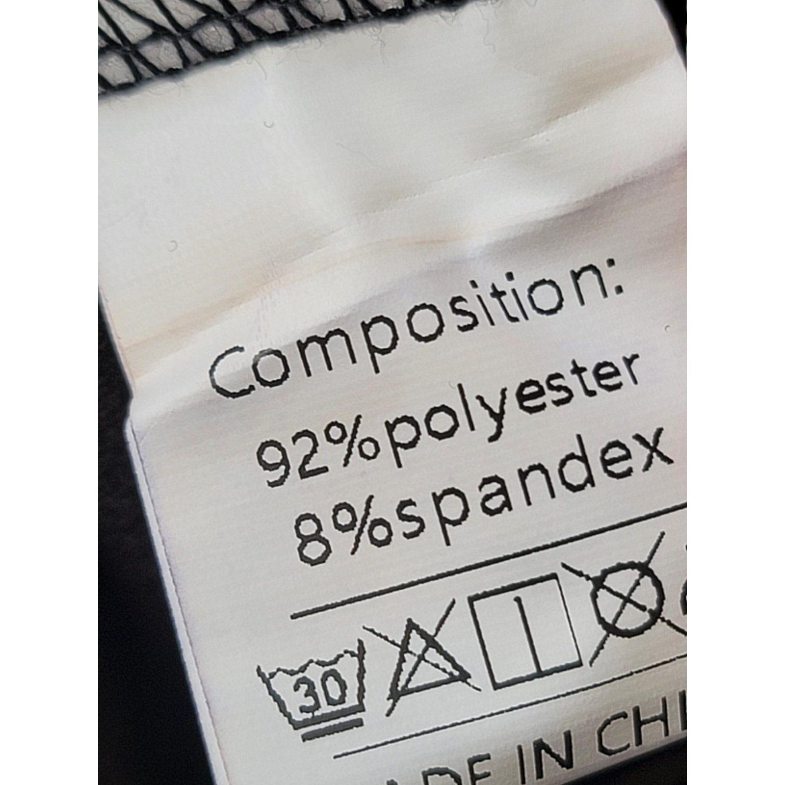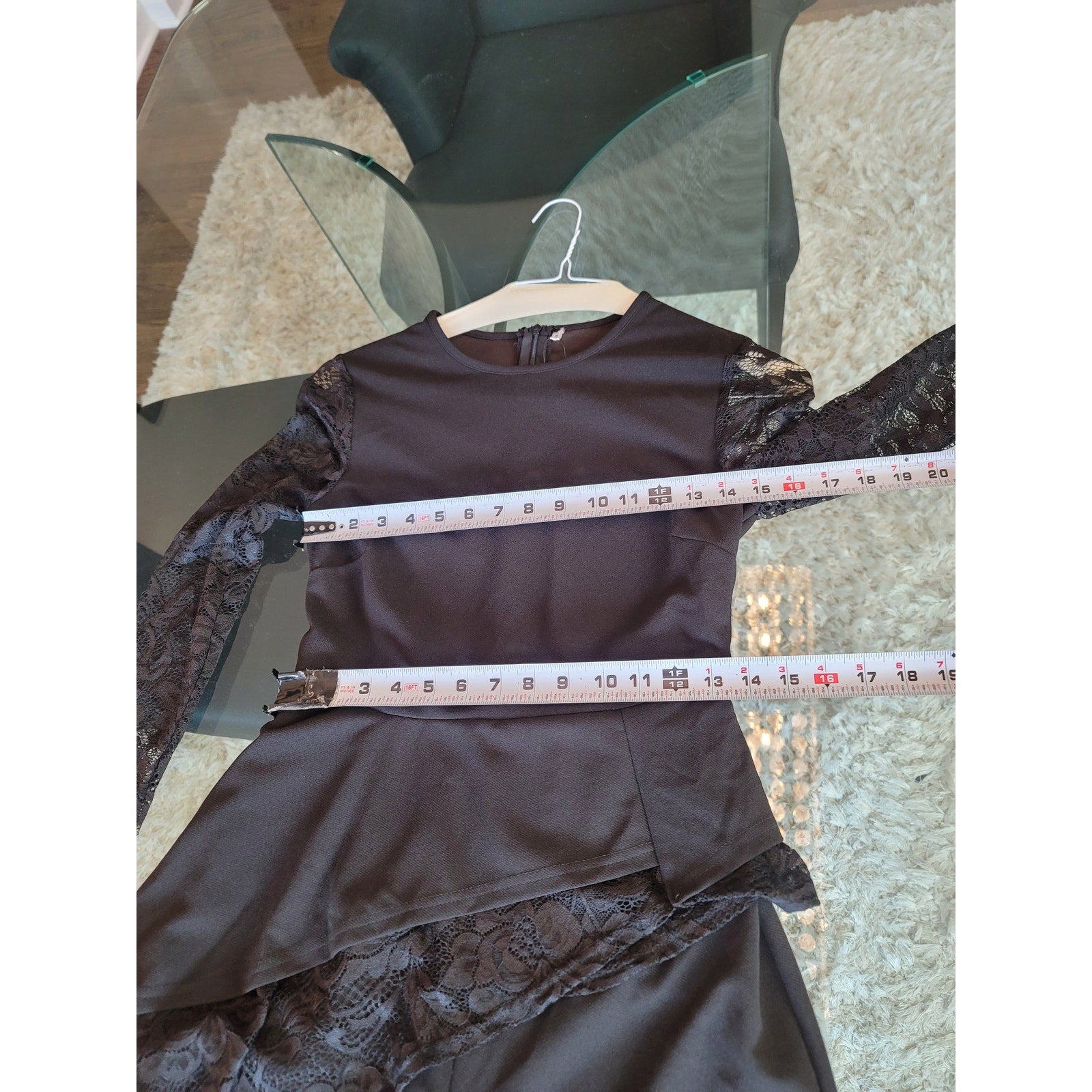 Women black jumpsuit, size Small. Designed with sheer lace long sleeves, an elegant round neckline, and an asymmetrical lace overlay at the waist, it combines modern sophistication with comfort. Made from a stretchy polyester spandex blend, the wide-leg silhouette offers both style and ease, making it perfect for evening events, parties, or special occasions.
