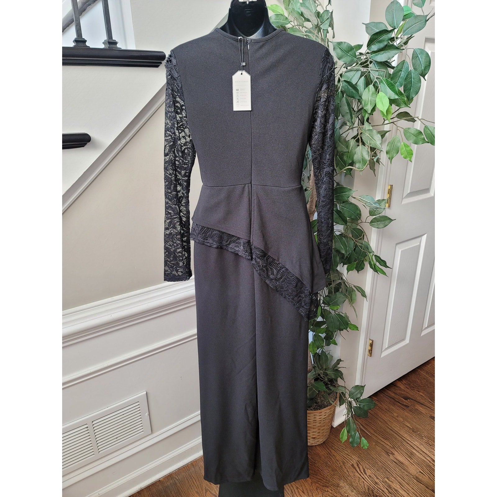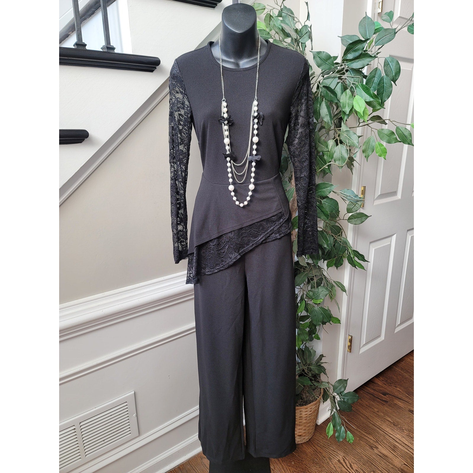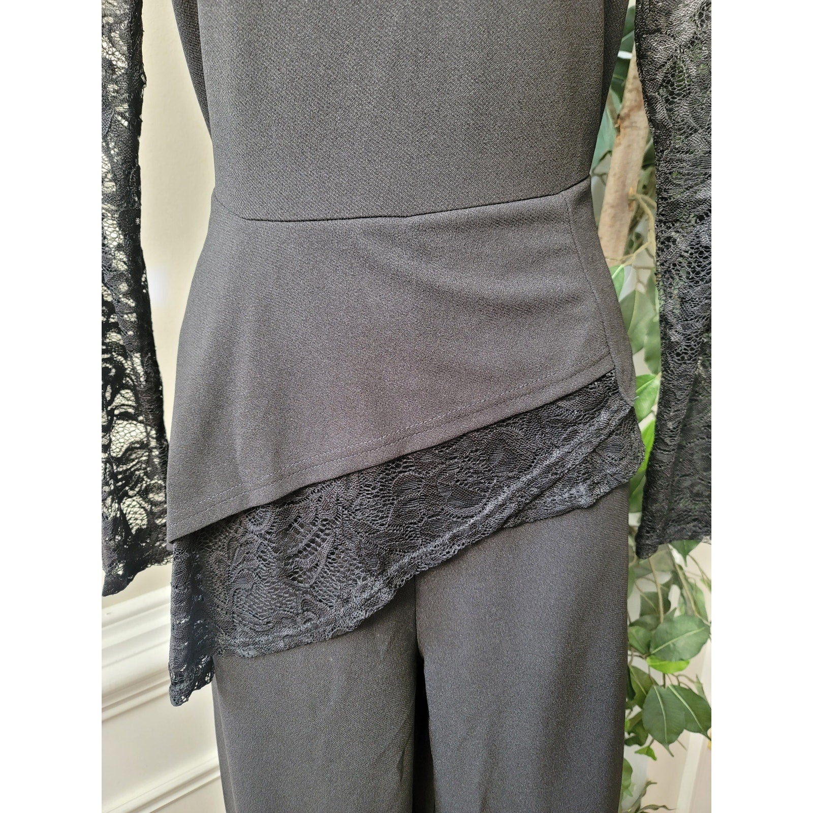 Women's Jumpsuit Small Black Lace Long Sleeve Asymmetrical Hem Wide Leg Evening