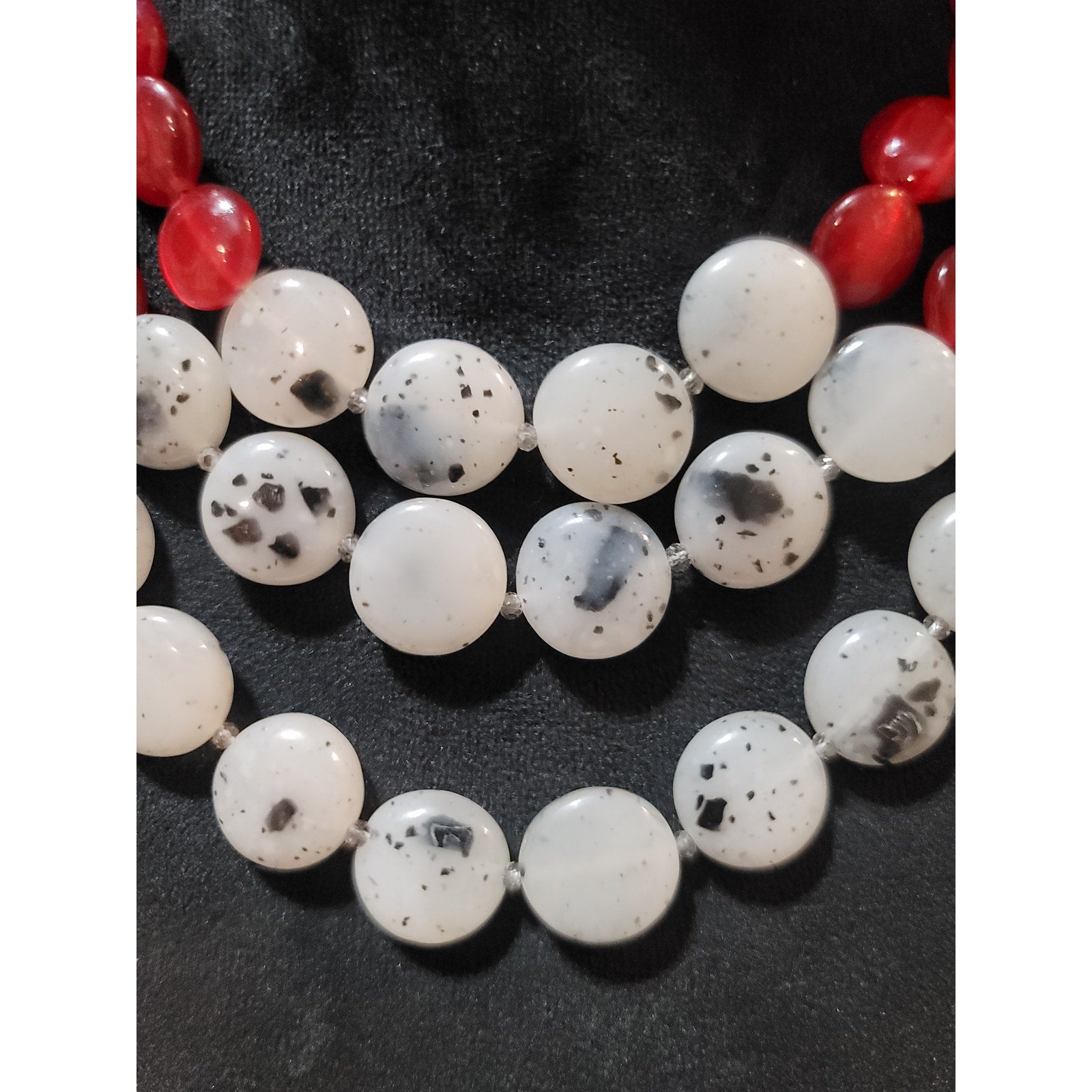 Women's Multi Strand Beaded Necklace With Red White Black Stones Spring Ring Lock