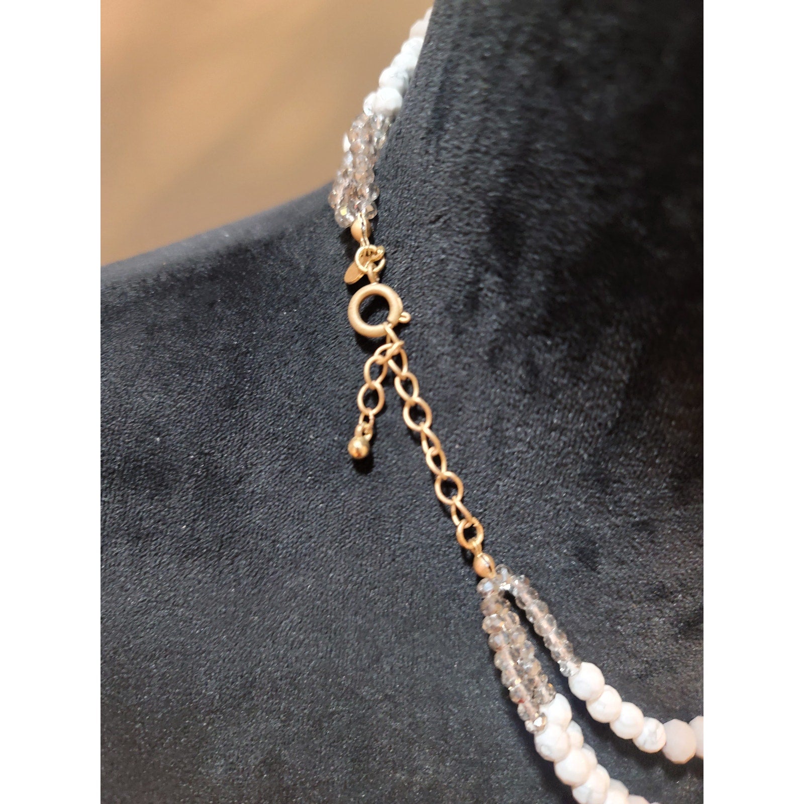 Womens Multi Strand Beaded Necklace With Red White Black Stones Spring Ring Lock