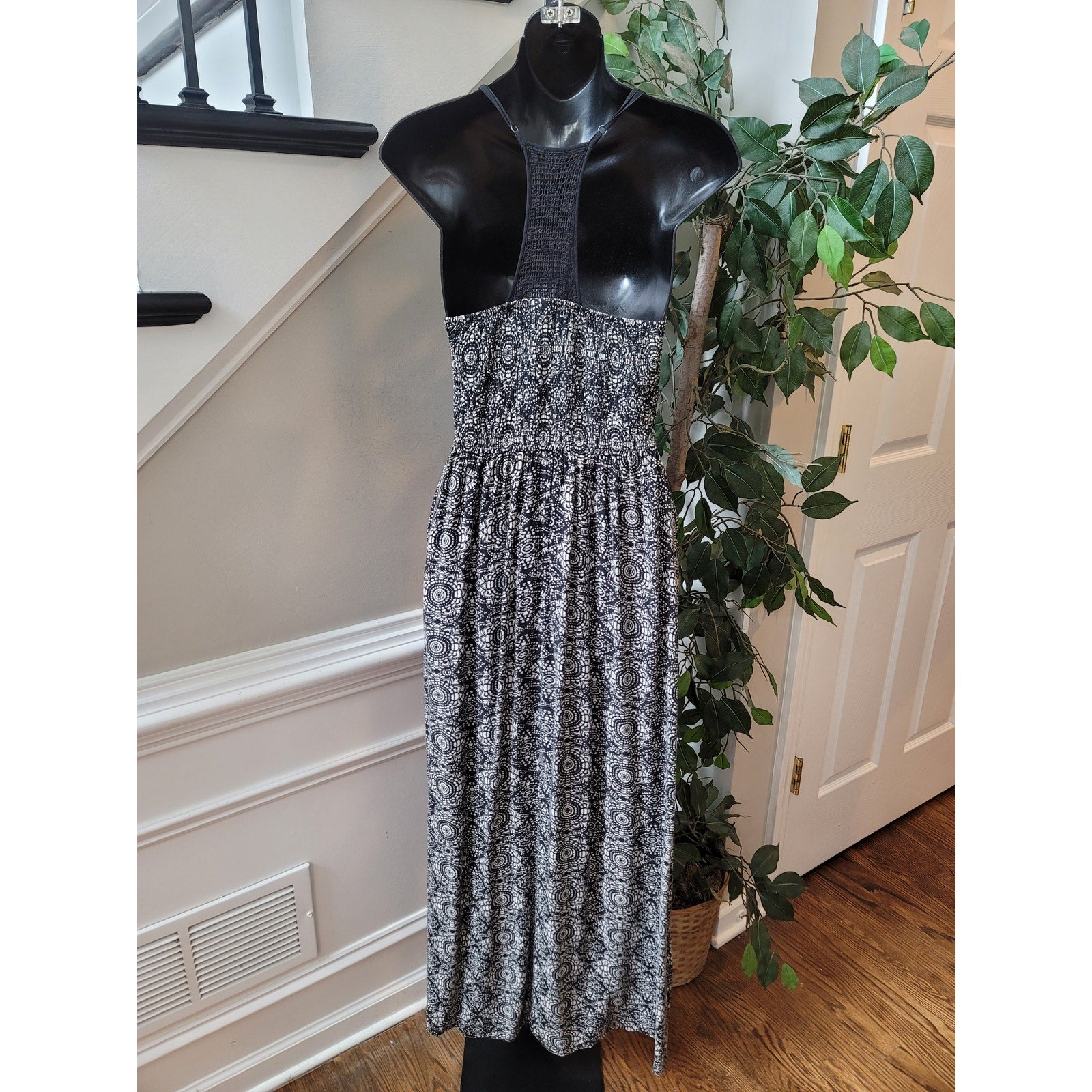 Xhilaration Maxi Dress Women S Black White Boho Sleeveless Smocked Rayon